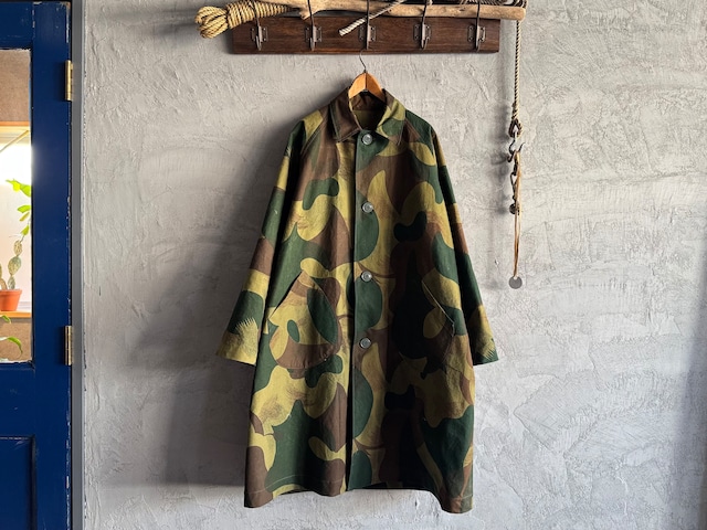 商品説明 ▼ 1956年製ベルギー軍・ブラッシュストロークカモのテント生地を贅沢に使用し、バルマカーンコートへと再構築しました。 使い込まれたテント生地の表情に、ミリタリーならではの存在感が宿ります。 内側には当時の年代が残るステンシルを切り出して配置。小さな一箇所からでも、当時の空気をしっかり感じられるディテールです。 ボタンは1970年代アメリカ軍のトレンチコートから。国の異なる軍物が一着の中で織り合う、リメイクならではの奥深いストーリーも魅力です。 パターンはラグランスリーブの一枚袖。ゆったりと広がるAラインシルエットが、力強い生地感を品よくまとめています。 ヴィンテージ素材の持つ迫力と、ohalらしい落ち着いた佇まいが共存した、唯一無二のバルマカーンコートです。 表記サイズ FREE 実寸サイズ 着丈 108.5cm 裄丈 85cm 身幅 70cm 着用者 180cm 70kg 注意事項 ▼ しっかりと検品はしておりますが、他にも見落としてしまってるシミ、汚れなどもあるかもしれませんので、ヴィンテージにご理解のある方のみのご購入でお願いします。 また全てヴィンテージ生地を使用しますので、シミや汚れ、傷や擦れなどによるダメージ、色褪せ、補修跡、縫い跡などがございます。画像でご確認ください。 そういった不完全な有様も、ヴィンテージリメイクの醍醐味としてご了承いただける方のみご購入くださいませ。 返品・返金について ▼ *ご購入後、商品が届き、上記の商品説明を理解した上でも、どうしても納得がいかないような状態の物に限り、商品到着予定日から48時間以内に [email protected] までご連絡くださいませ。 商品のご返送後、当店で商品を確認でき次第、商品代金を銀行振り込みにて返金をさせていただきます。 なお、商品代金のみの返金となりますので、往復の送料、銀行の振込手数料などは、全てお客様負担となりますので、ご了承ください。 1年間保証について ▼ *当店ではオリジナル商品(当店の『ohal』タグがつく商品)に関しまして、少しでも安心してご購入いただけるように、1年間お直し無料の保証期間を設けております。(送料はお客様負担となります。) 穴があいた、破れた、糸がほつれた、などのトラブルは、ヴィンテージ生地でのパッチワークや、ミシンでたたいて補修をします。ボタンやスナップボタンなどの付属品が取れてしまった、カバンのストラップがちぎれたなどの場合は、似寄りの物で対応させていただきます。 ご購入後についてしまった汚れなどを取ってほしい、などの一部対応できないこともございますので発送される前に、必ず当店までご連絡ください。 また、ご購入後のサイズ変更などは保証対象外となり、有料でのご対応となりますのでご了承くださいませ。 お直しのご依頼がございましたら、サイト内のメッセージ、もしくは [email protected] まで直接ご依頼の方よろしくお願いします。 保証期間以降のお直しに関しましては、別途料金をいただくことになります。 少しでも長く使っていただけたり、少しでも愛着を持って使っていただければ、とても光栄です。