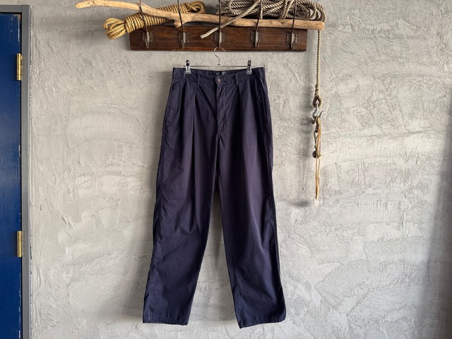 ブランド / ラルフローレン 年代 / 80年代 生産国 / アメリカ 素材 / コットン100% カラー / ネイビー 状態 / 目立ったダメージはありません。 ポイント/ 少し薄手のコットン。春夏にちょうど良い素材感です。 表記サイズ 32/32 実寸サイズ 総丈 107cm(アウトシームに沿って計測) ウエスト 80cm 股上 30cm 股下 78cm(インシームに沿って計測) わたり 34cm (股下約5cm位置) 裾幅 22.5cm しっかりと検品はしておりますが、他にも見落としてしまってるシミ、汚れなどもあるかもしれませんので、ヴィンテージにご理解のある方のみのご購入でお願いします。