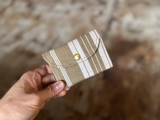 商品説明 ▼ ヴィンテージのファブリックを再構築し、キーケースを製作しました。 表地は1920〜1930年代頃と思われる、ティッキングファブリック(寝具用生地)。裏地には1950年代にフランス軍で使用されていたリネンのダッフルバッグの生地をパッチワークした物を使用。 内側中央のキャンバステープは、アメリカ軍のダッフルバッグから。 金具は50年代、フランス軍で採用されていた黒いDカンを使用し、細部までヴィンテージの素材にこだわりました。 スナップボタンは、ドイツの老舗メーカー「PRYM(プリム)」の真鍮ボタンを使用。 ヨーロッパの高級メゾンでも採用されている信頼あるパーツです。 カードポケットは2室あり、ICカードや免許証などの収納に便利。 また、画像のようなサイズであれば、車のスマートキーなども収まります。 ヴィンテージの魅力を詰め込んだ、実用性とデザイン性を兼ね備えた一点。 贈り物としてもきっと喜ばれるアイテムです。 *8枚目画像の二重リングはヴィンテージではございません。 サイズについて ▼ 実寸サイズ 折り畳み時 W×H 11.5cm×8cm 展開時 W×H 11.5cm×20.5cm 注意事項 ▼ *こちらはヴィンテージの素材を使用してますので、傷やダメージ、色褪せ、シミ、補修跡、縫い跡などございます。詳細は画像でご確認ください。 1年間保証について ▼ *当店ではオリジナル商品(当店の『ohal』『MADE BY ohal vintage&remake』タグがつく商品)に関しまして、少しでも安心してご購入いただけるように、1年間お直し無料の保証期間を設けております。(送料はお客様負担となります。) 穴があいた、破れた、糸がほつれた、などのトラブルは、ヴィンテージ生地でのパッチワークや、ミシンでたたいて補修をします。ボタンやスナップボタンなどの付属品が取れてしまった、カバンのストラップがちぎれたなどの場合は、似寄りの物で対応させていただきます。 ご購入後についてしまった汚れなどを取ってほしい、などの一部対応できないこともございますので発送される前に、必ず当店までご連絡ください。 また、ご購入後のサイズ変更などは保証対象外となり、有料でのご対応となりますのでご了承くださいませ。 お直しのご依頼がございましたら、サイト内のメッセージ、もしくは [email protected] まで直接ご依頼の方よろしくお願いします。 保証期間以降のお直しに関しましては、別途料金をいただくことになります。 少しでも長く使っていただけたり、少しでも愛着を持って使っていただければ、とても光栄です。