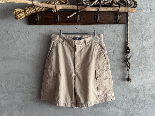 ブランド / ラルフローレン 年代 / 90s〜 生産国 / スリランカ 素材 / コットン100% カラー / ベージュ 状態 / 左裾にペンキ跡がございます。 表記サイズ 32 実寸サイズ 総丈 51cm(アウトシームに沿って計測) ウエスト 82cm 股上 32cm 股下 21cm(インシームに沿って計測) 裾幅 34.5cm しっかりと検品はしておりますが、他にも見落としてしまってるシミ、汚れなどもあるかもしれませんので、ヴィンテージにご理解のある方のみのご購入でお願いします。
