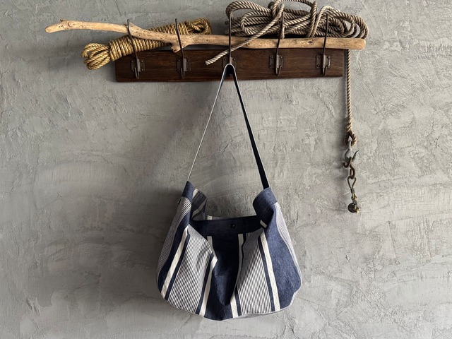 *高円寺POP UP 先行販売商品です。 商品説明 ▼ 約100年前のフランスで、マットレスカバーとして実際に使用されていたティッキングファブリックを使用。 目がしっかり詰まった細かなヘリンボーン織りで、当時は藁や馬毛を直接詰め込む敷寝具用として作られた、とても丈夫な生地です。 このタフなファブリックを再構築し、ニュースペーパーバッグを製作しました。 古布ならではの存在感と、現代的に使いやすいバッグの形をぜひお楽しみください。 斜めがけ・肩がけどちらにも対応する使いやすい設計です。 縫製跡などもデザインの一部として取り入れ、気負わず使える実用性とヴィンテージの味わいを両立。汚れさえもエイジングとして楽しめます。 ショルダーベルトも本体と同じ生地で製作し、太めのストラップが重さを分散。接合部はアメリカ製コッパーリベットでしっかり補強しています。 スナップボタンには、1970年代製スコービル社の“DOT”刻印入りパーツを使用。内ポケットも1室あり、新聞配達バッグを彷彿とさせる大きめサイズで収納力も十分です。 ヴィンテージファブリックの風合いと機能性を兼ね備えた一点物。このバッグならではの経年変化をぜひお楽しみください。 実寸サイズ W×H×D 44cm×33cm×19.5cm ショルダーベルト(調整不可) 長さ×幅 80cm×6cm 注意事項 ▼ しっかりと検品はしておりますが、他にも見落としてしまってるシミ、汚れなどもあるかもしれませんので、ヴィンテージにご理解のある方のみのご購入でお願いします。 *こちらはヴィンテージの素材を使用してますので、傷やダメージ、色褪せ、シミ、補修跡、縫い跡などございます。 1年間保証について ▼ *当店ではオリジナル商品(当店の『ohal』タグがつく商品)に関しまして、少しでも安心してご購入いただけるように、1年間お直し無料の保証期間を設けております。(送料はお客様負担となります。) 穴があいた、破れた、糸がほつれた、などのトラブルは、ヴィンテージ生地でのパッチワークや、ミシンでたたいて補修をします。ボタンやスナップボタンなどの付属品が取れてしまった、カバンのストラップがちぎれたなどの場合は、似寄りの物で対応させていただきます。 ご購入後についてしまった汚れなどを取ってほしい、などの一部対応できないこともございますので発送される前に、必ず当店までご連絡ください。 また、ご購入後のサイズ変更などは保証対象外となり、有料でのご対応となりますのでご了承くださいませ。 お直しのご依頼がございましたら、サイト内のメッセージ、もしくは [email protected] まで直接ご依頼の方よろしくお願いします。 保証期間以降のお直しに関しましては、別途料金をいただくことになります。 少しでも長く使っていただけたり、少しでも愛着を持って使っていただければ、とても光栄です。