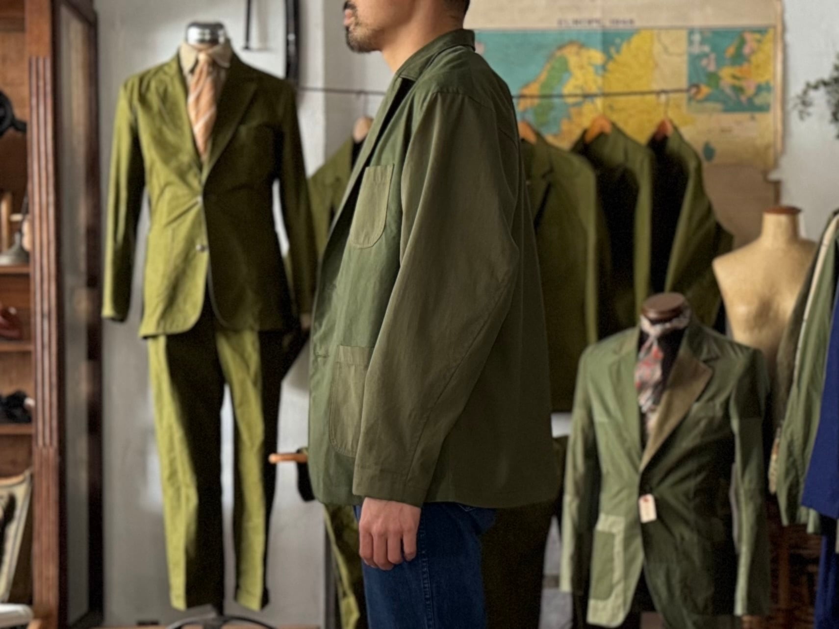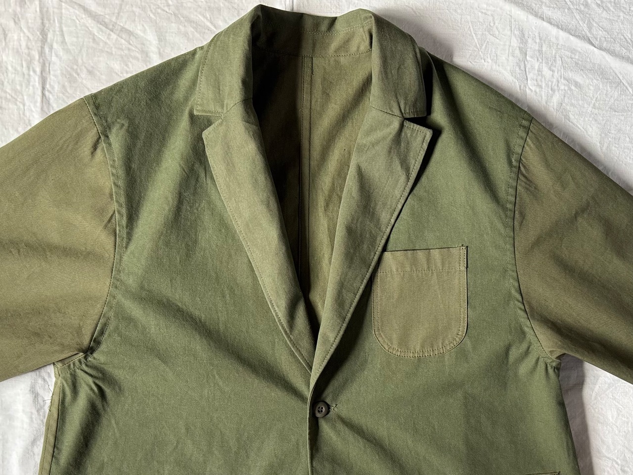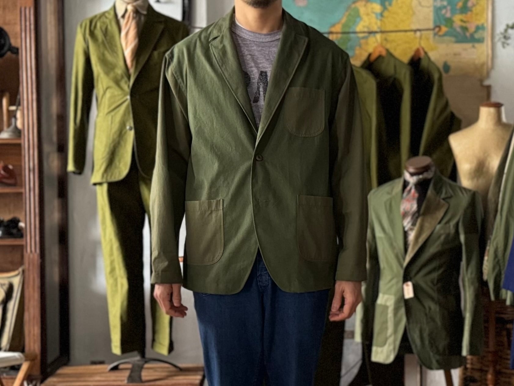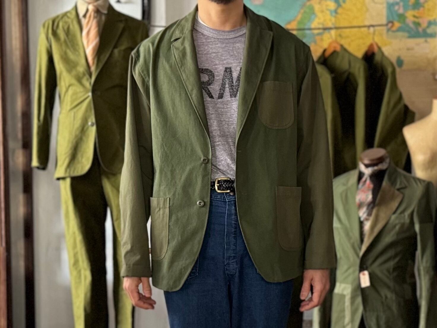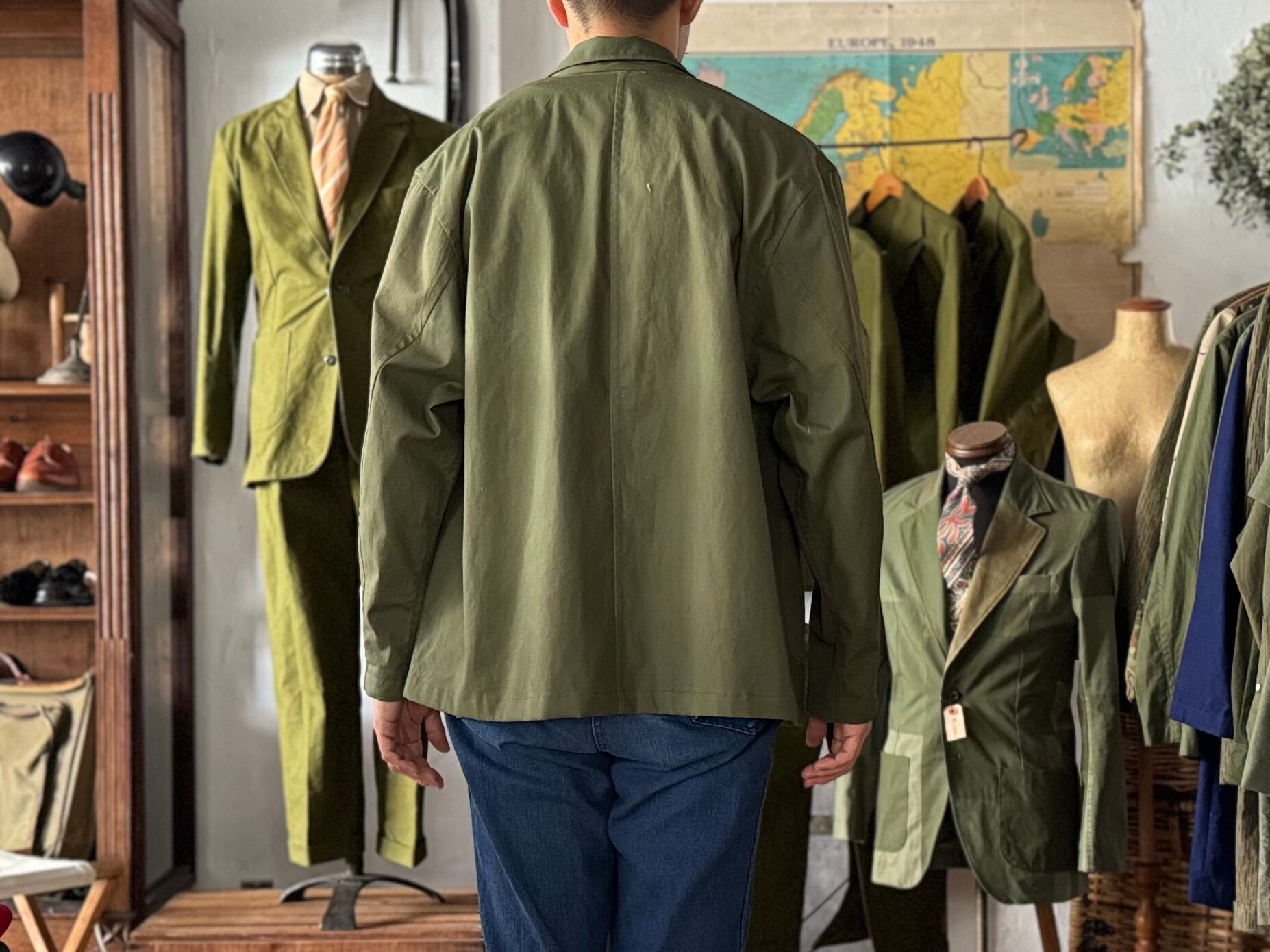 こちらは生地の仕入れから、パターン、縫製、ボタンつけ、仕上げ、販売まで、全てを当店のみで行っている、オリジナルのジャケットです。