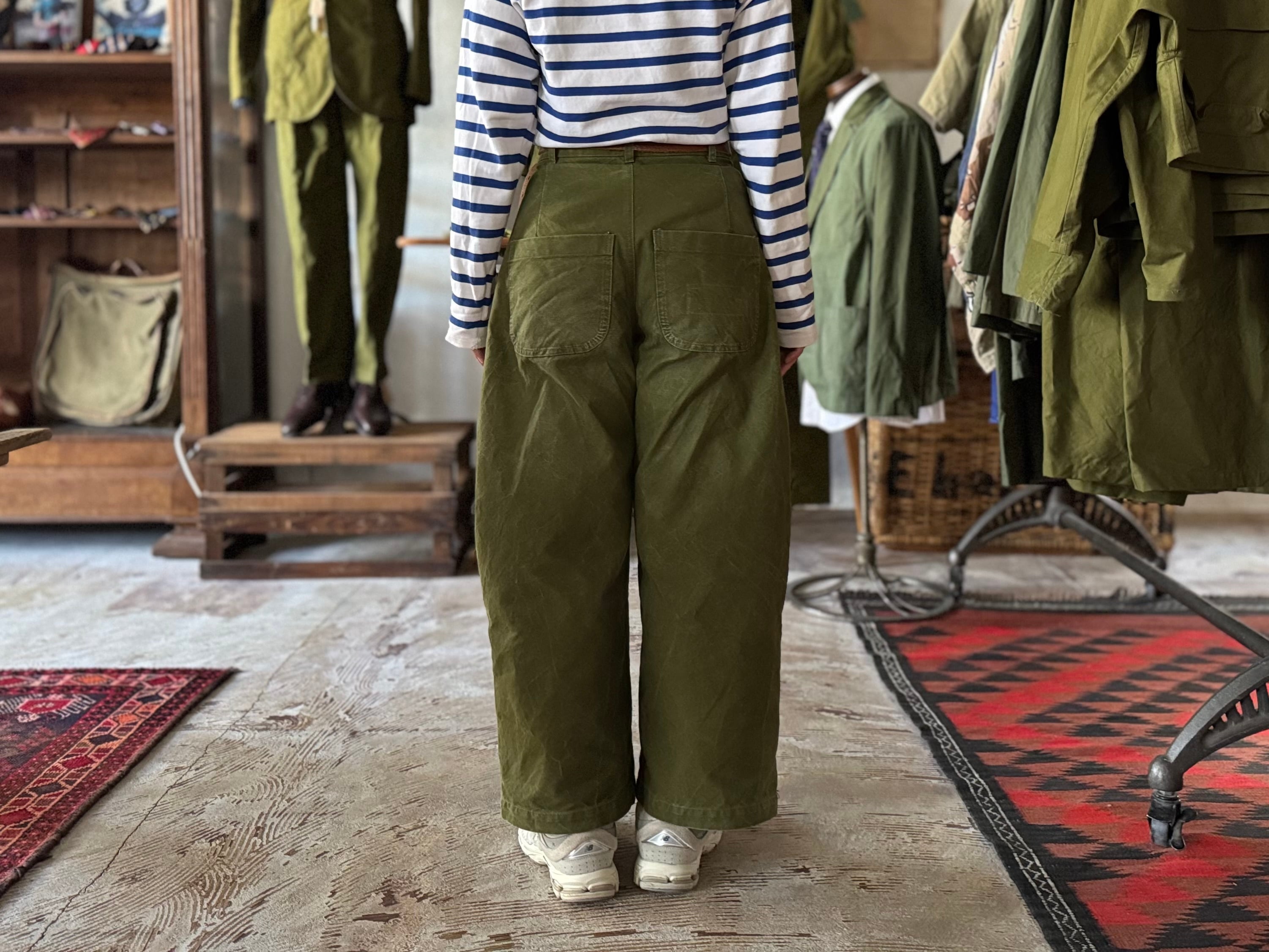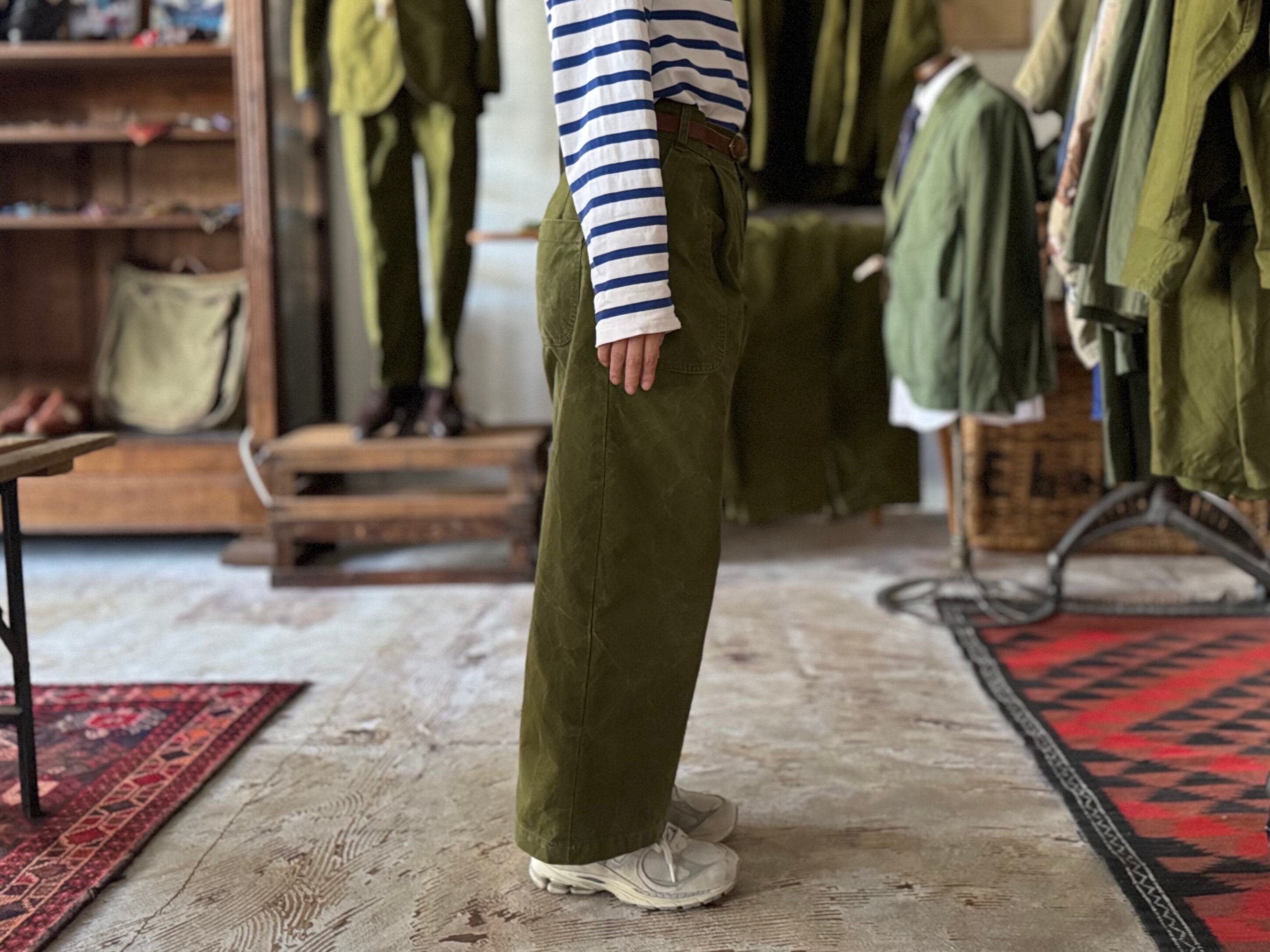 過去のミリタリーアイテムには無いシルエットをヴィンテージのミリタリー生地でつくる、ohalらしさが詰まったパンツです。