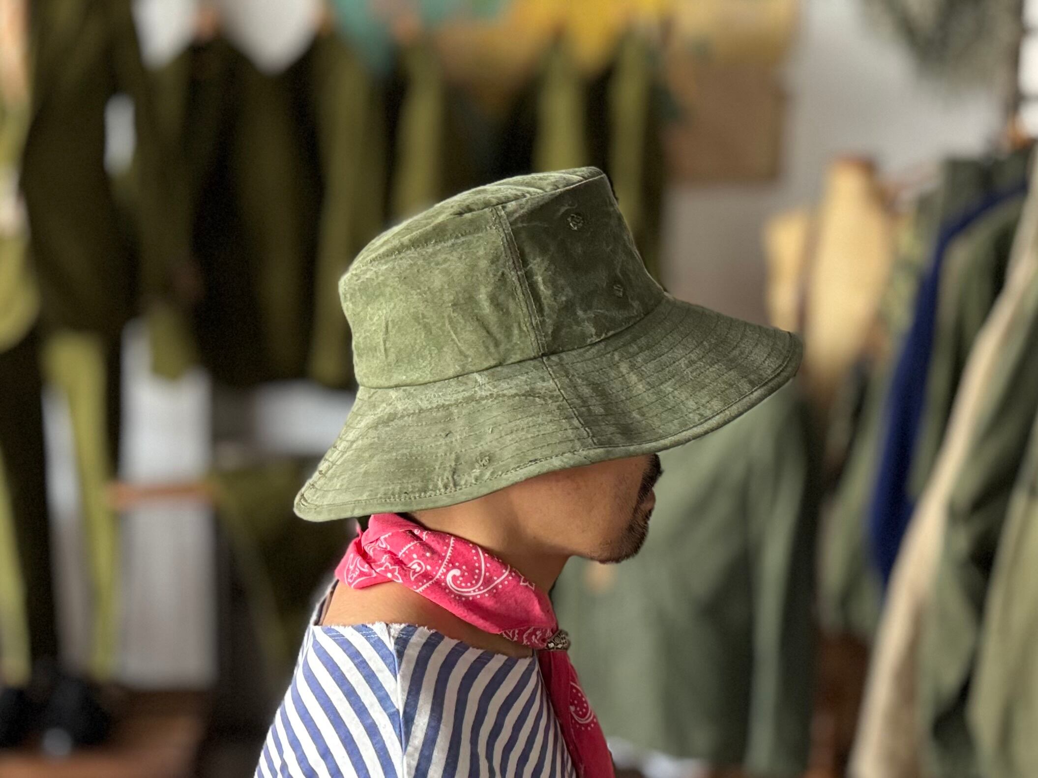 定番のバケットハットやサファリハットとは一線を画す、クラシックで落ち着いた印象のシルエットです。
