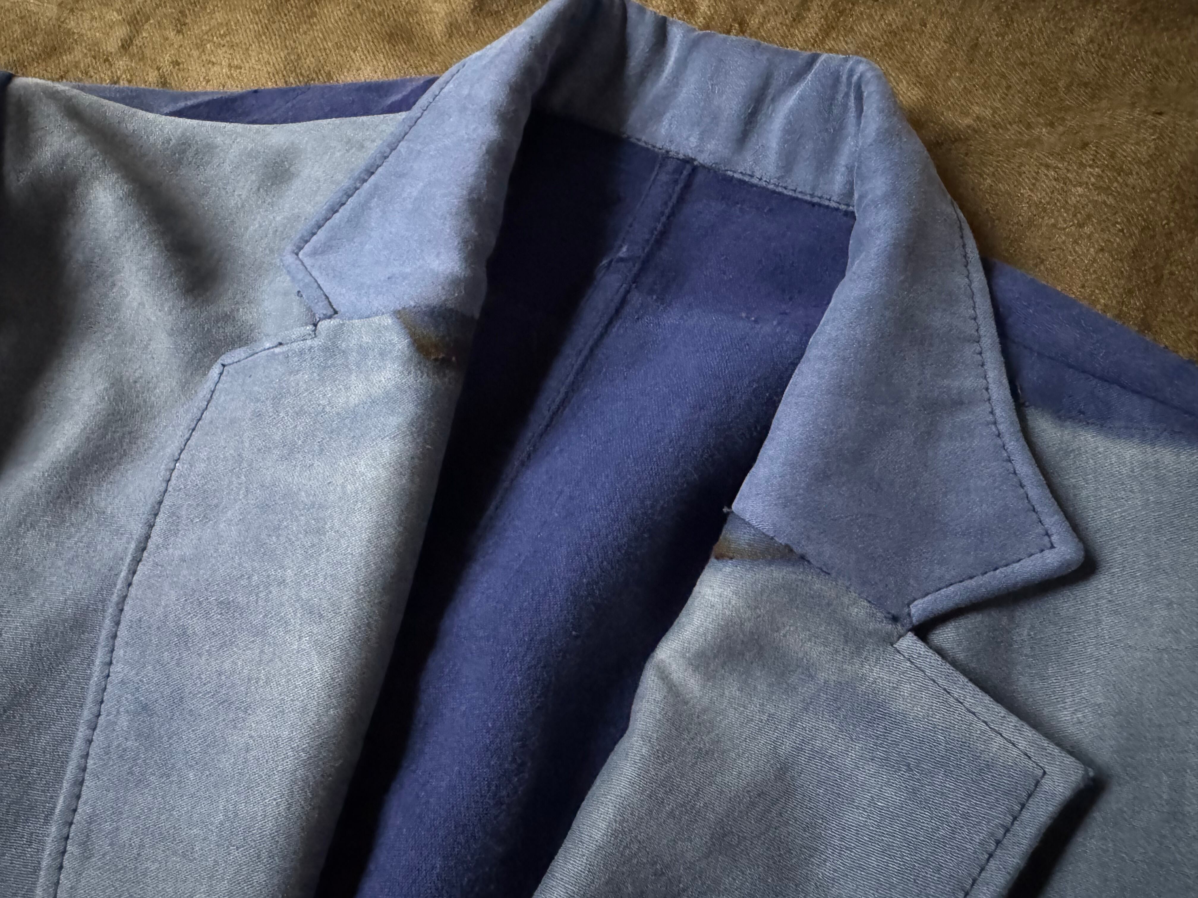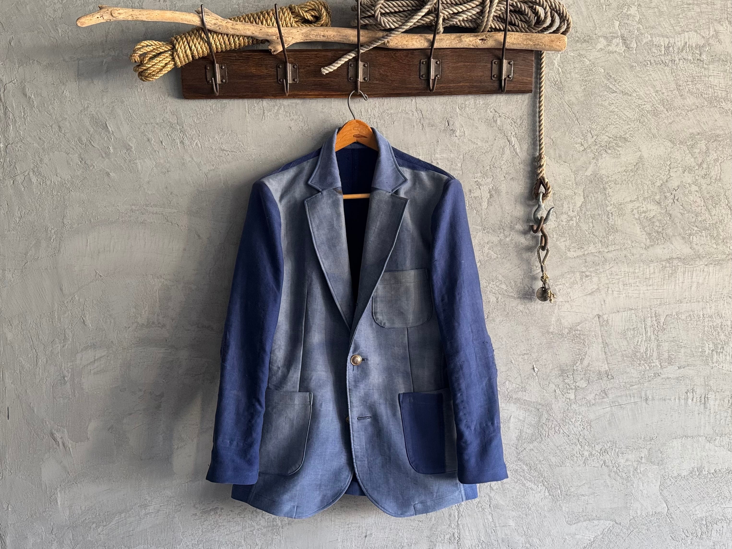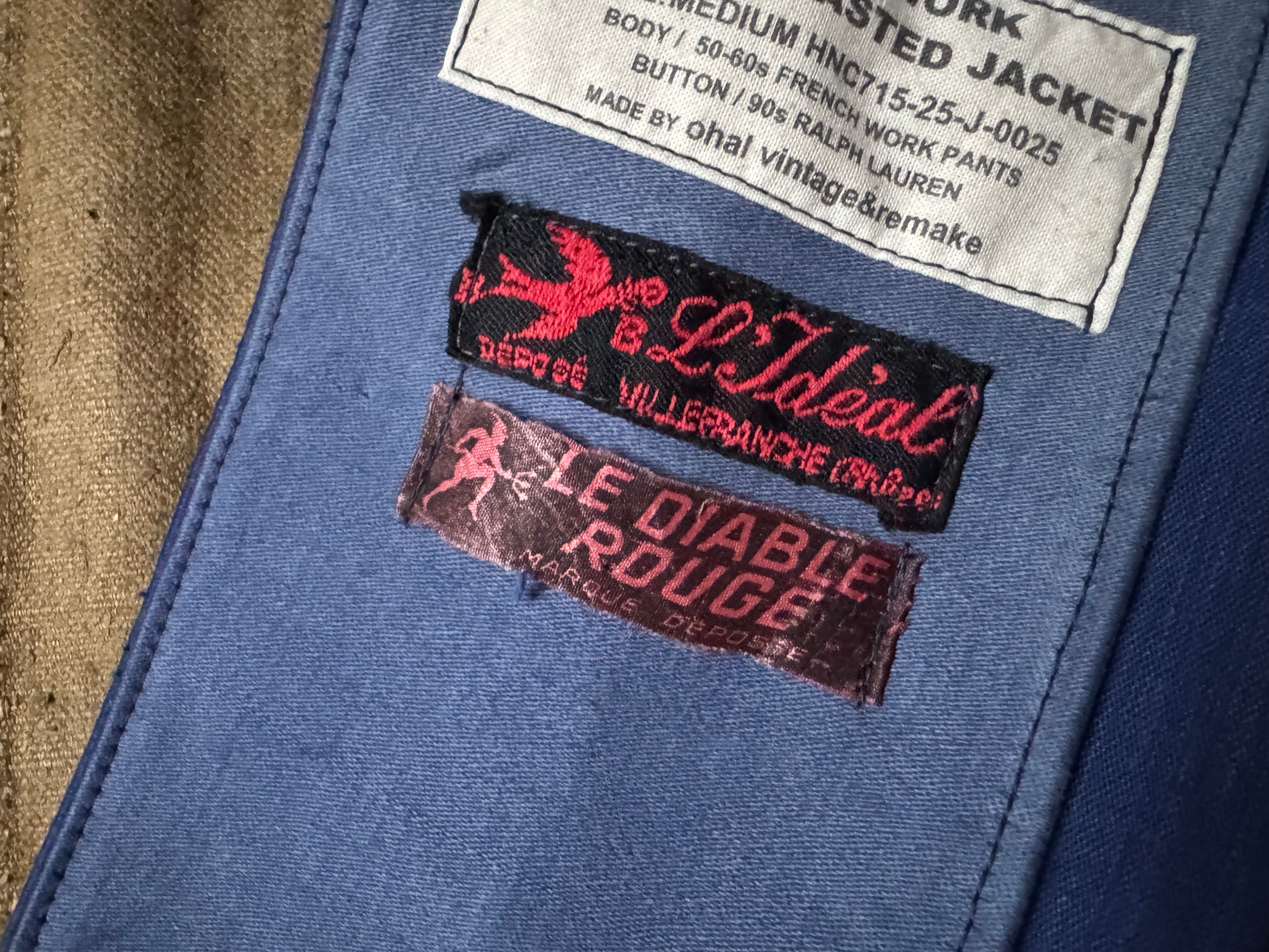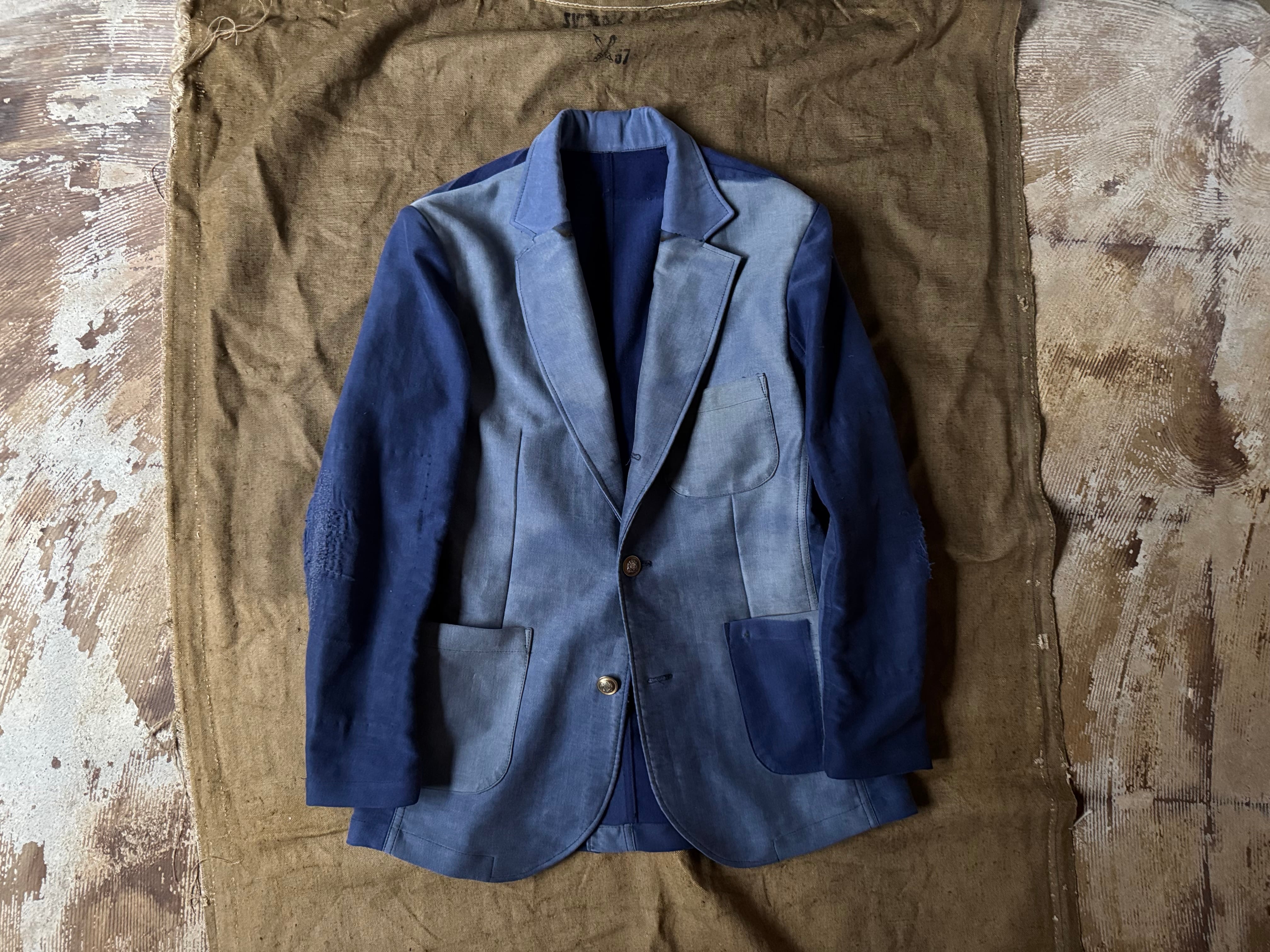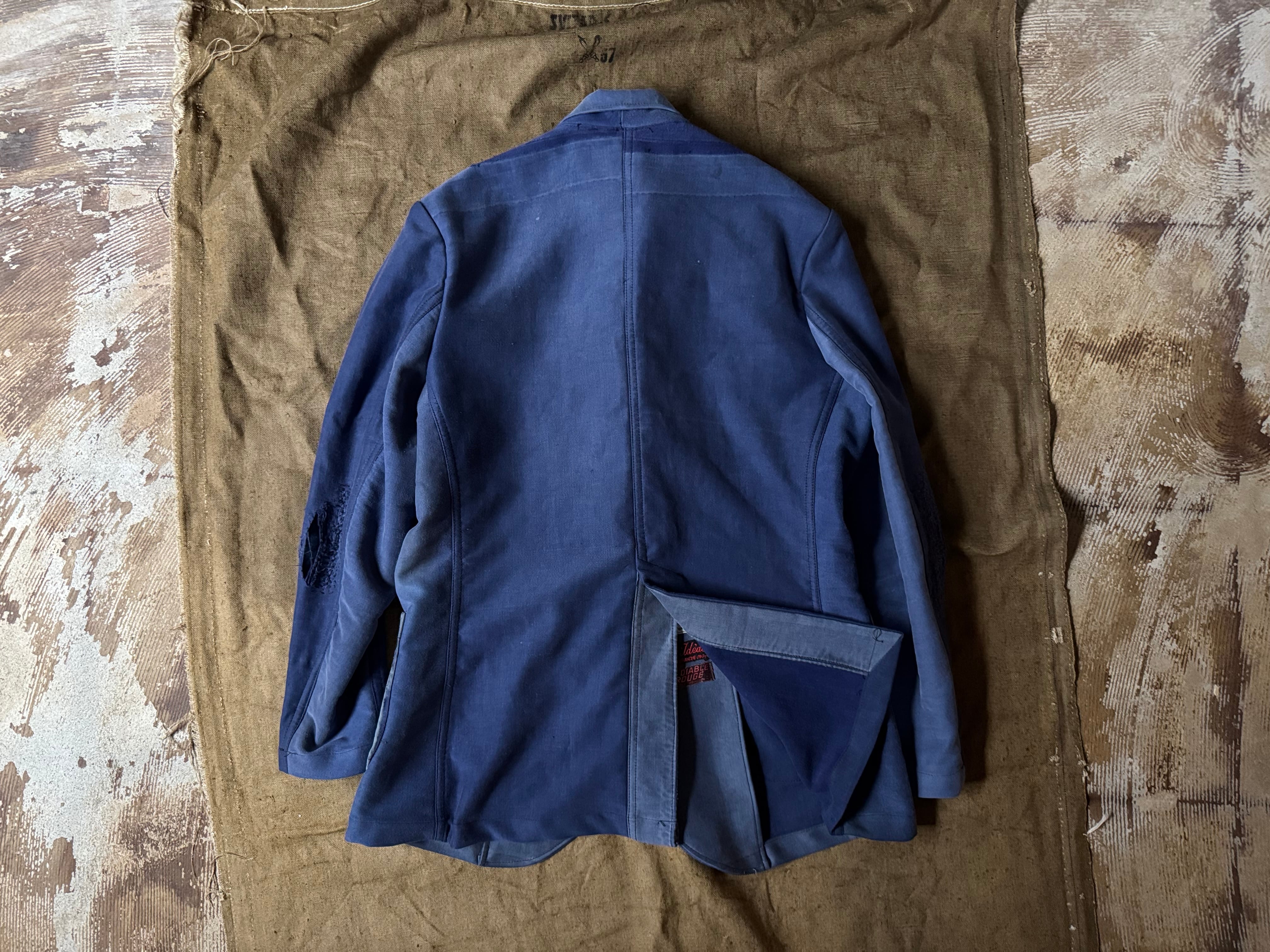 50〜60年代のフレンチワークパンツ(モールスキン)を贅沢に4本分、解体&再構築して、シングルブレステッドのジャケットに仕立てました。