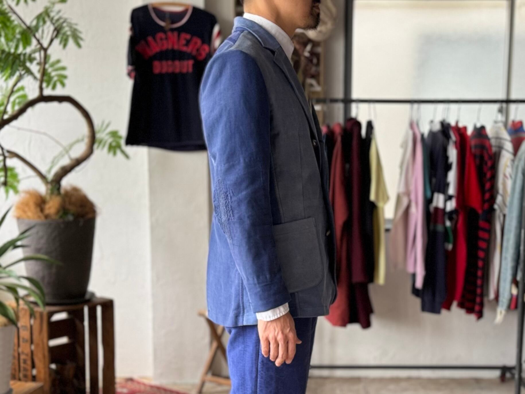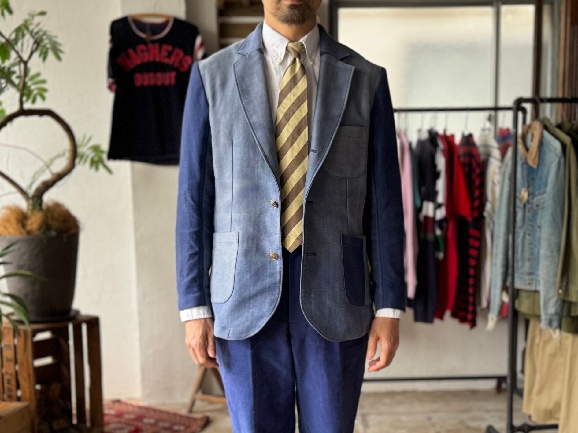 使ってるパンツごとに色味のトーンや表情がちょっとずつ違うのも、この一着の良い味になってます。