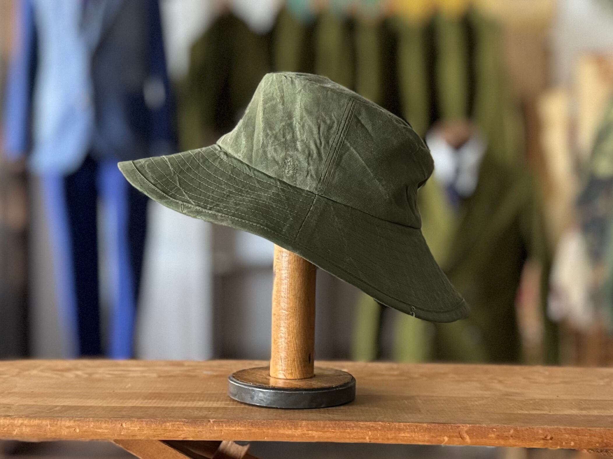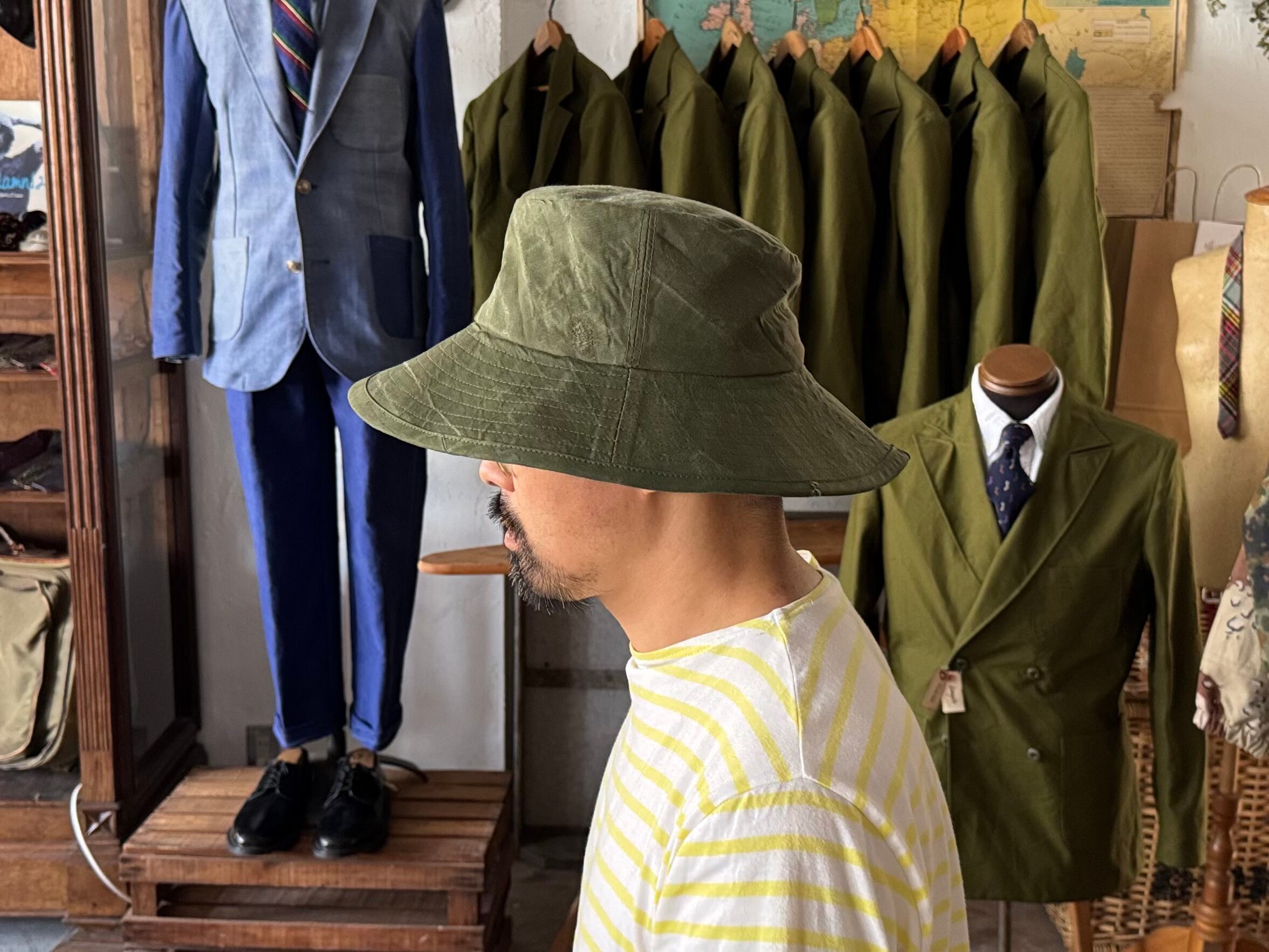 定番のバケットハットやサファリハットとは一線を画す、クラシックで落ち着いた印象のシルエットです。