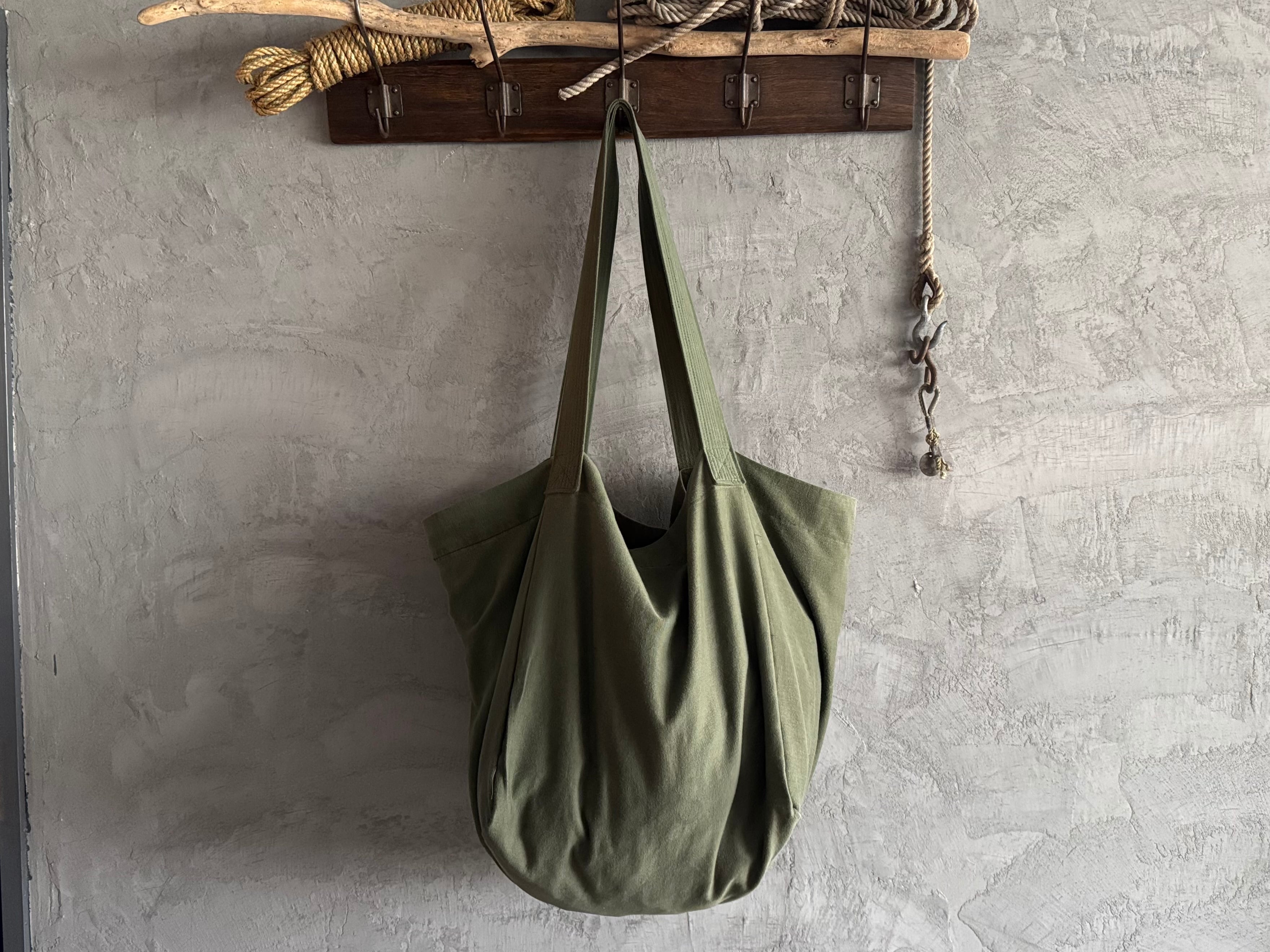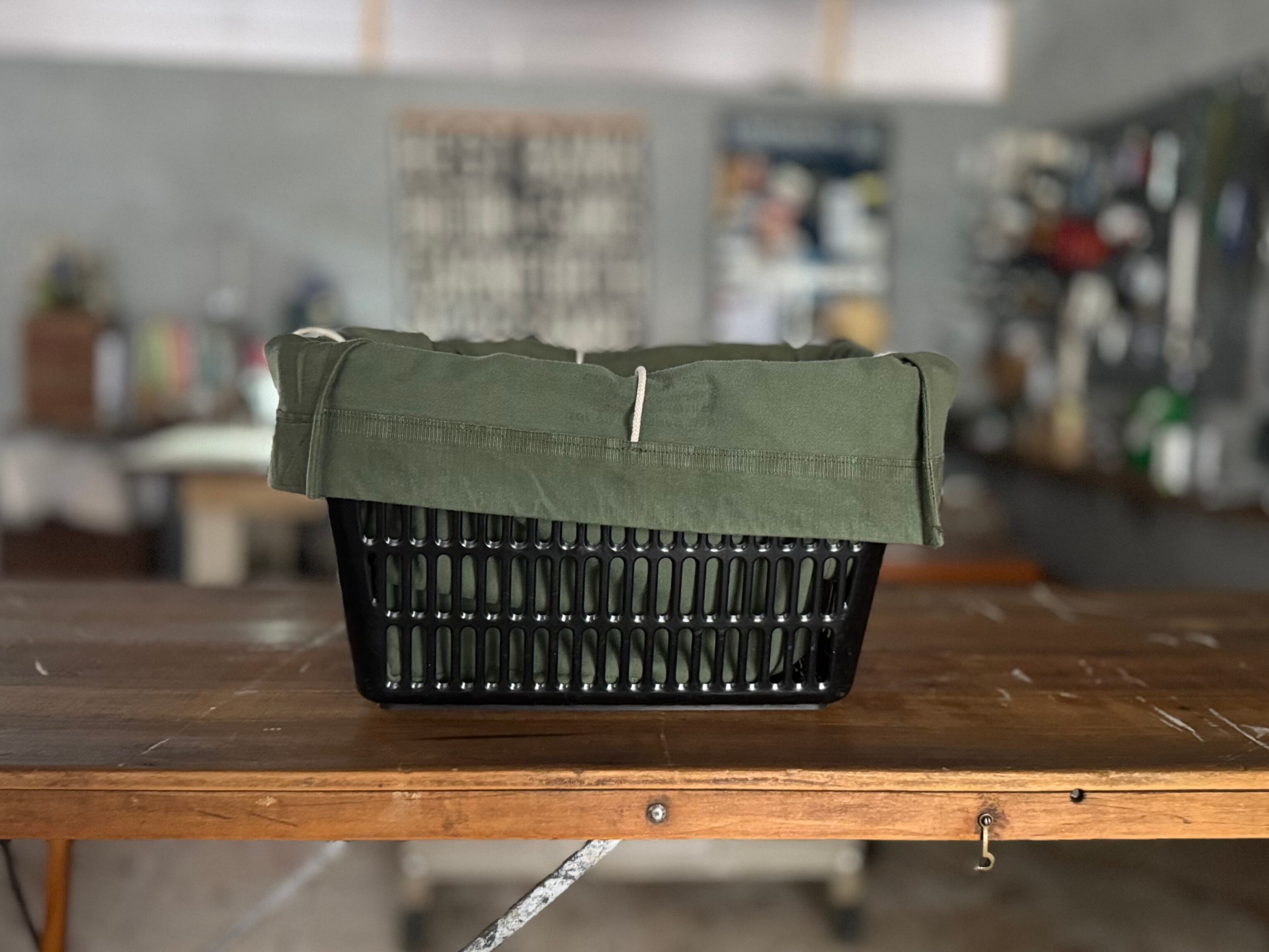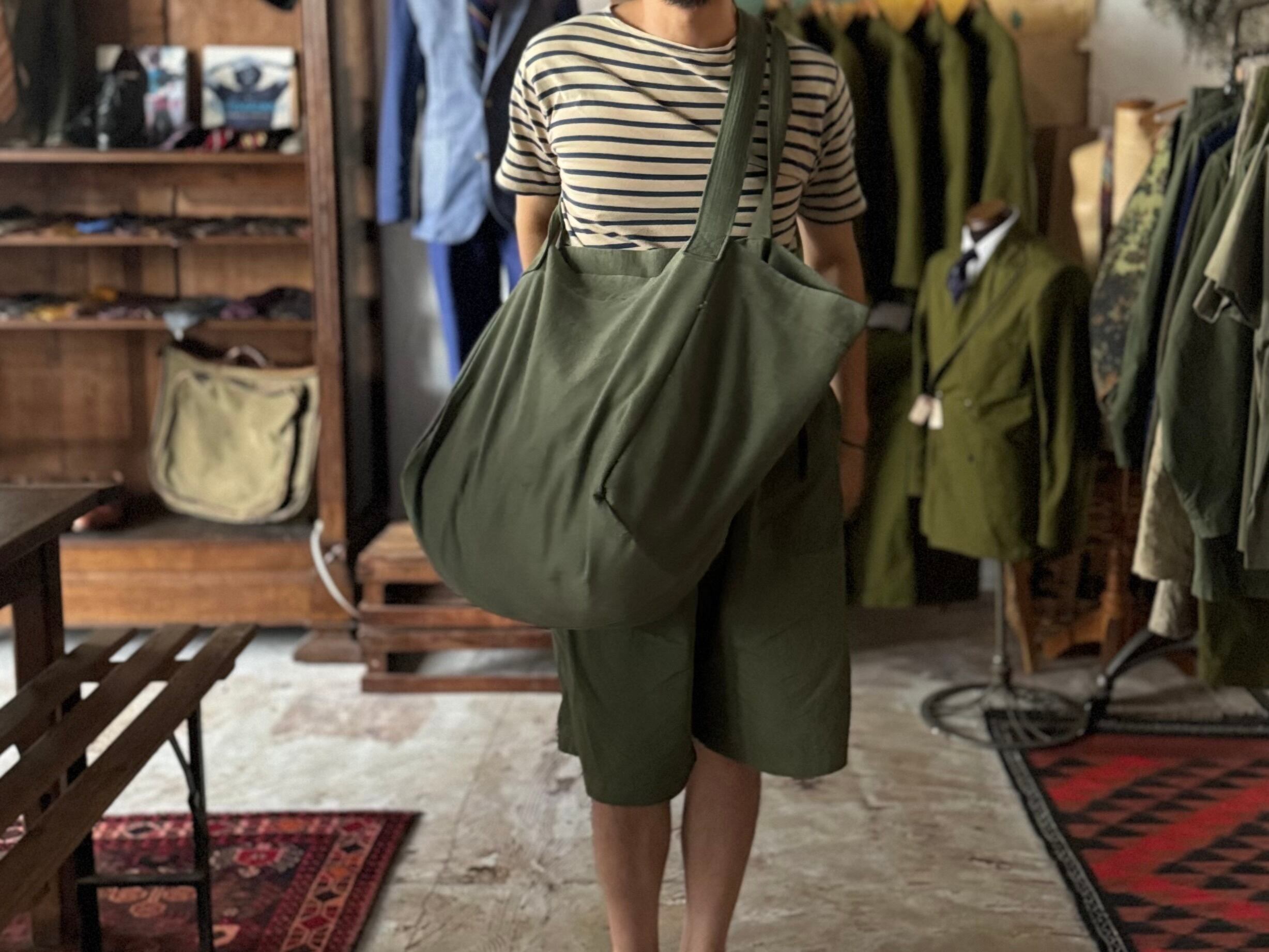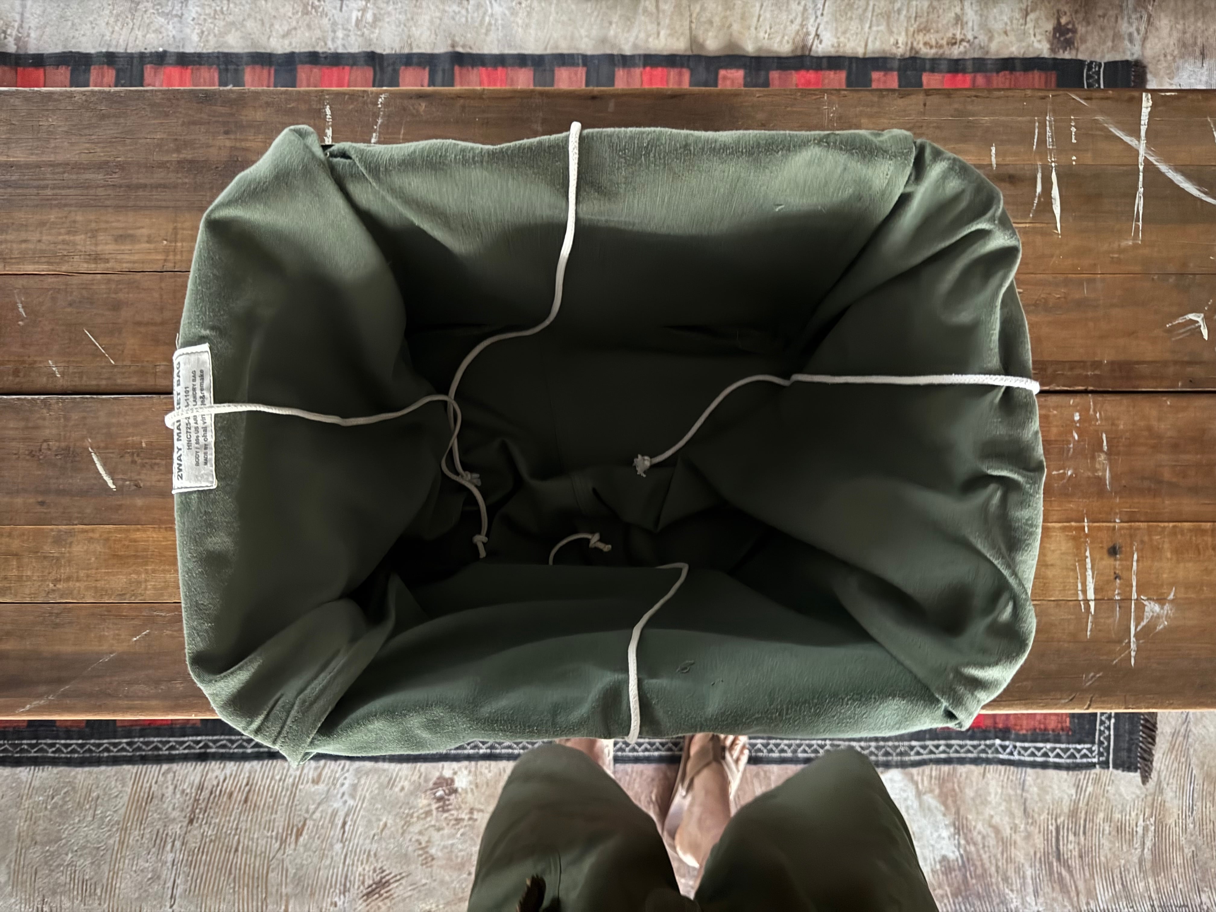 アメリカ軍の80年代頃のランドリーバッグを解体し、再構築して作った2WAYマーケットバッグ。