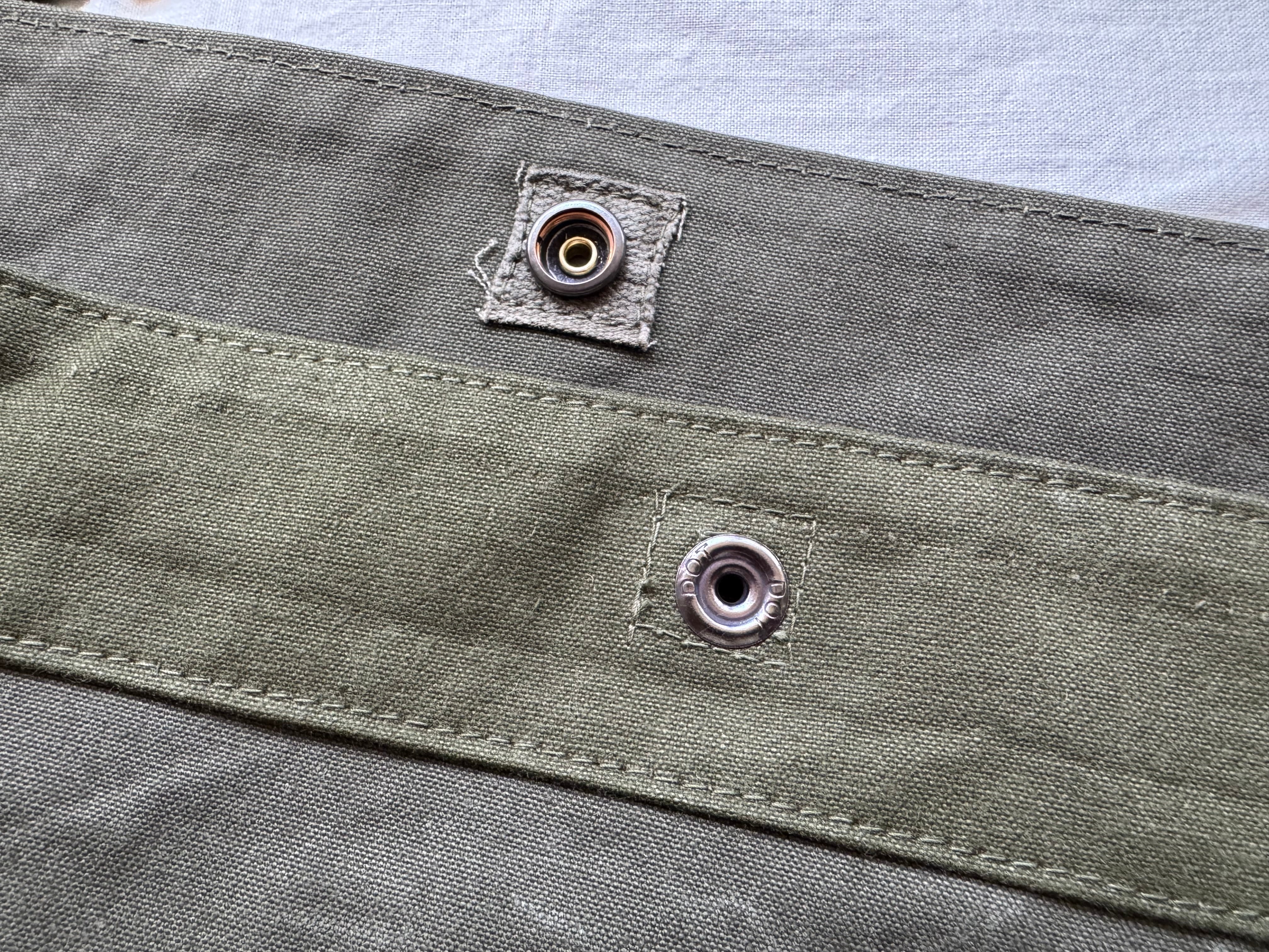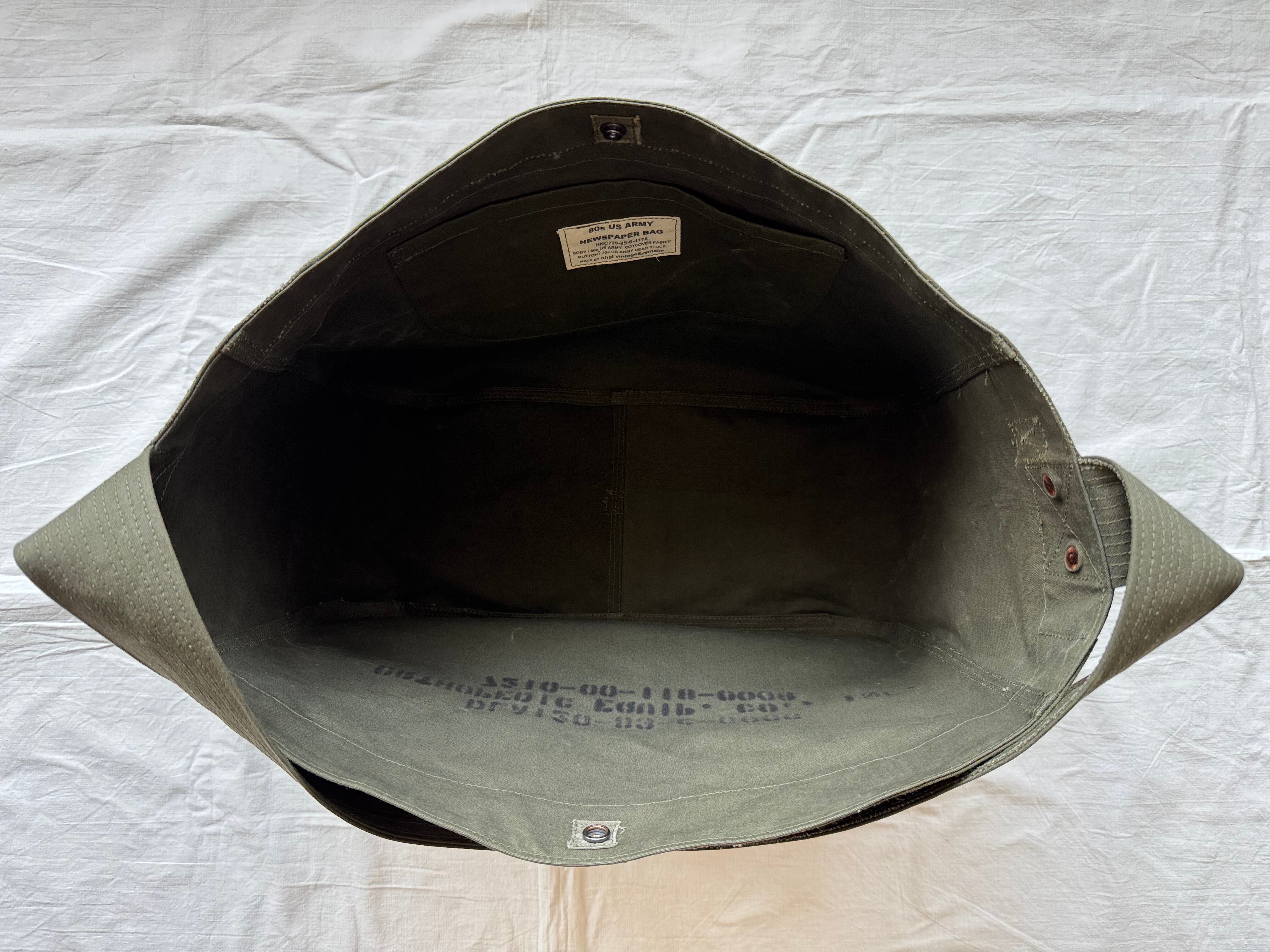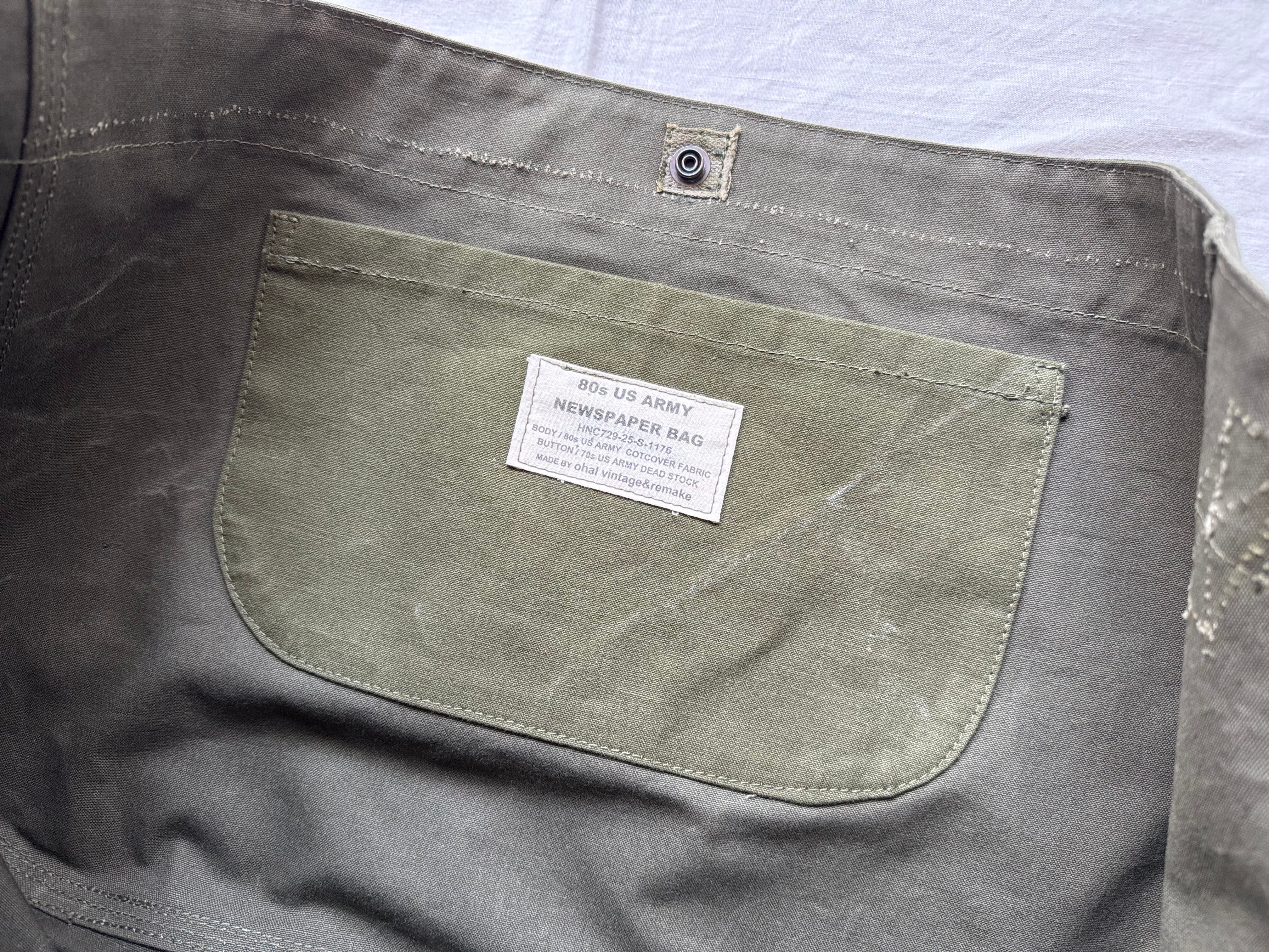1983年にアメリカ軍へ納入されたフォールディングベッド用のコットカバーを解体し、ニュースペーパーバッグとして再構築しました。