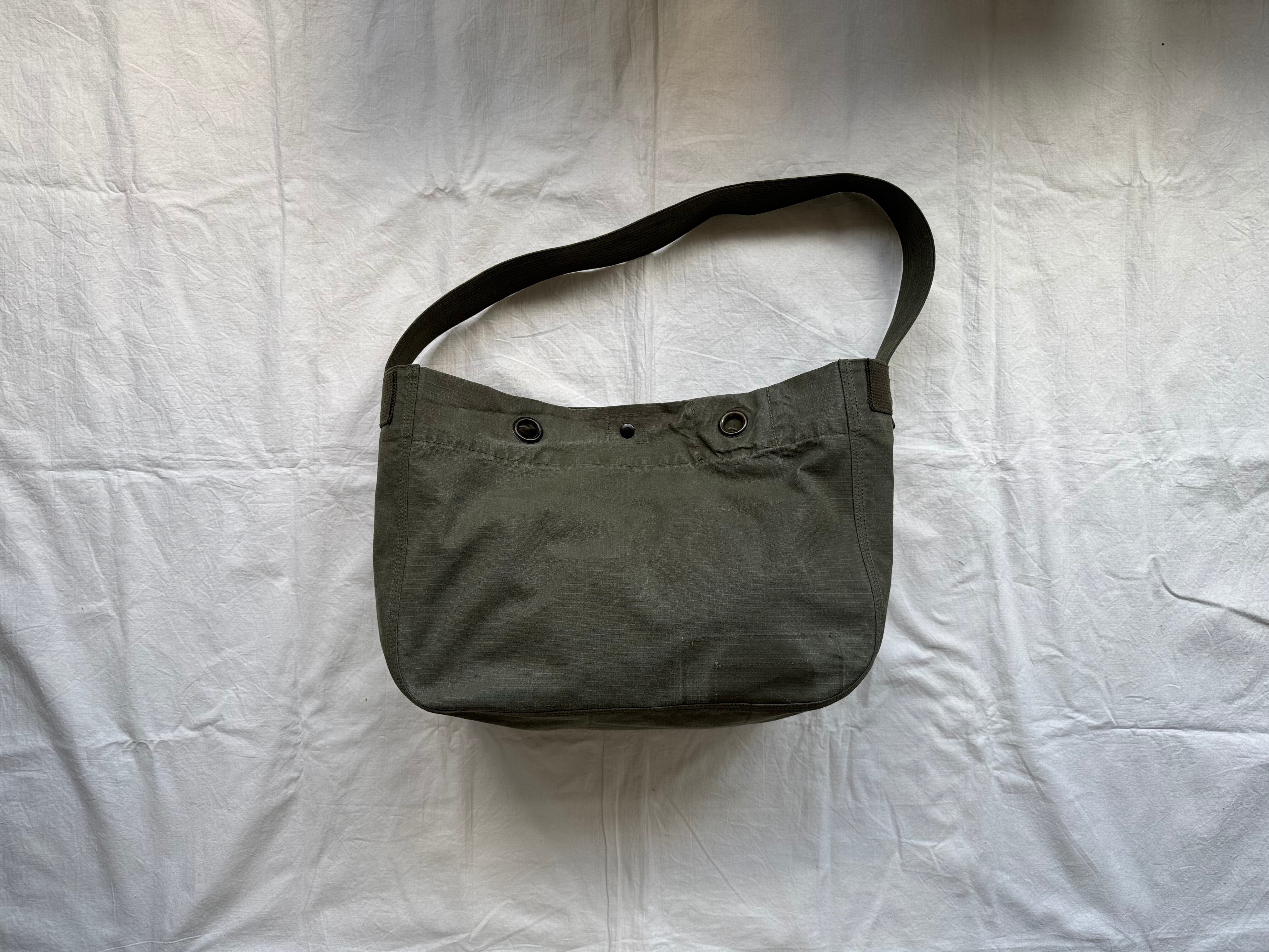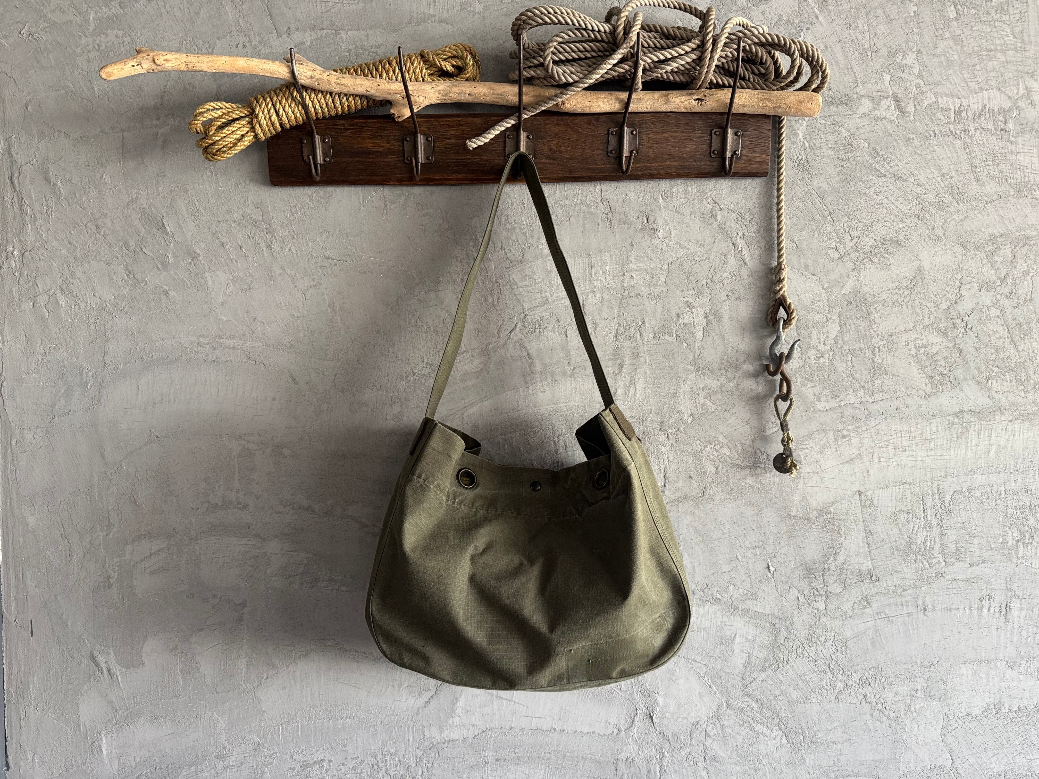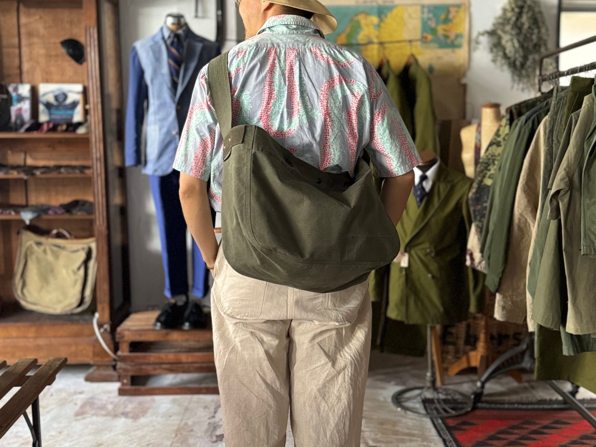 80〜90年代頃のオランダ軍ダッフルバッグを解体し、ニュースペーパーバッグに仕立てました。ミリタリー特有の無骨な風合いと、リップストップならではの軽さと強度が魅力。斜めがけ・肩がけどちらにも対応する使いやすい設計です。