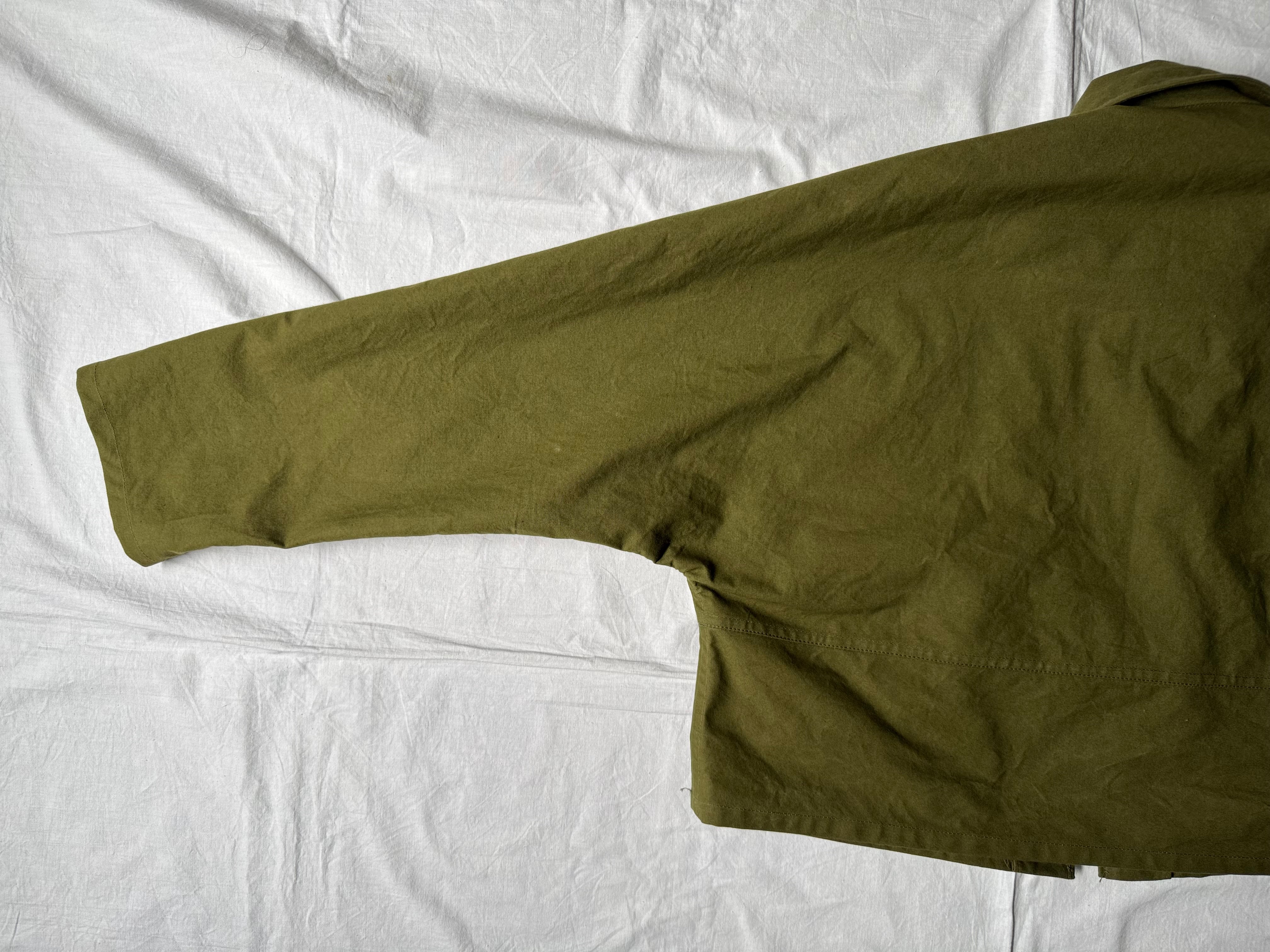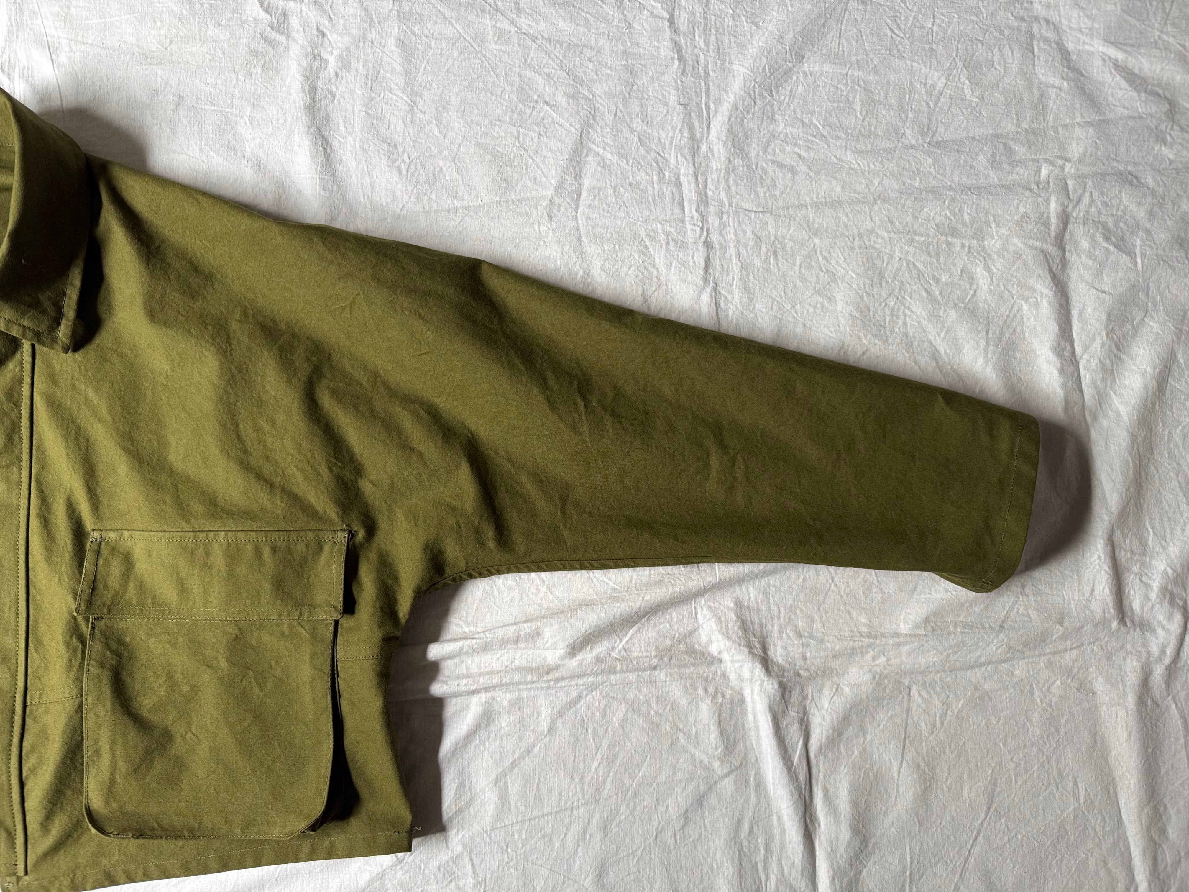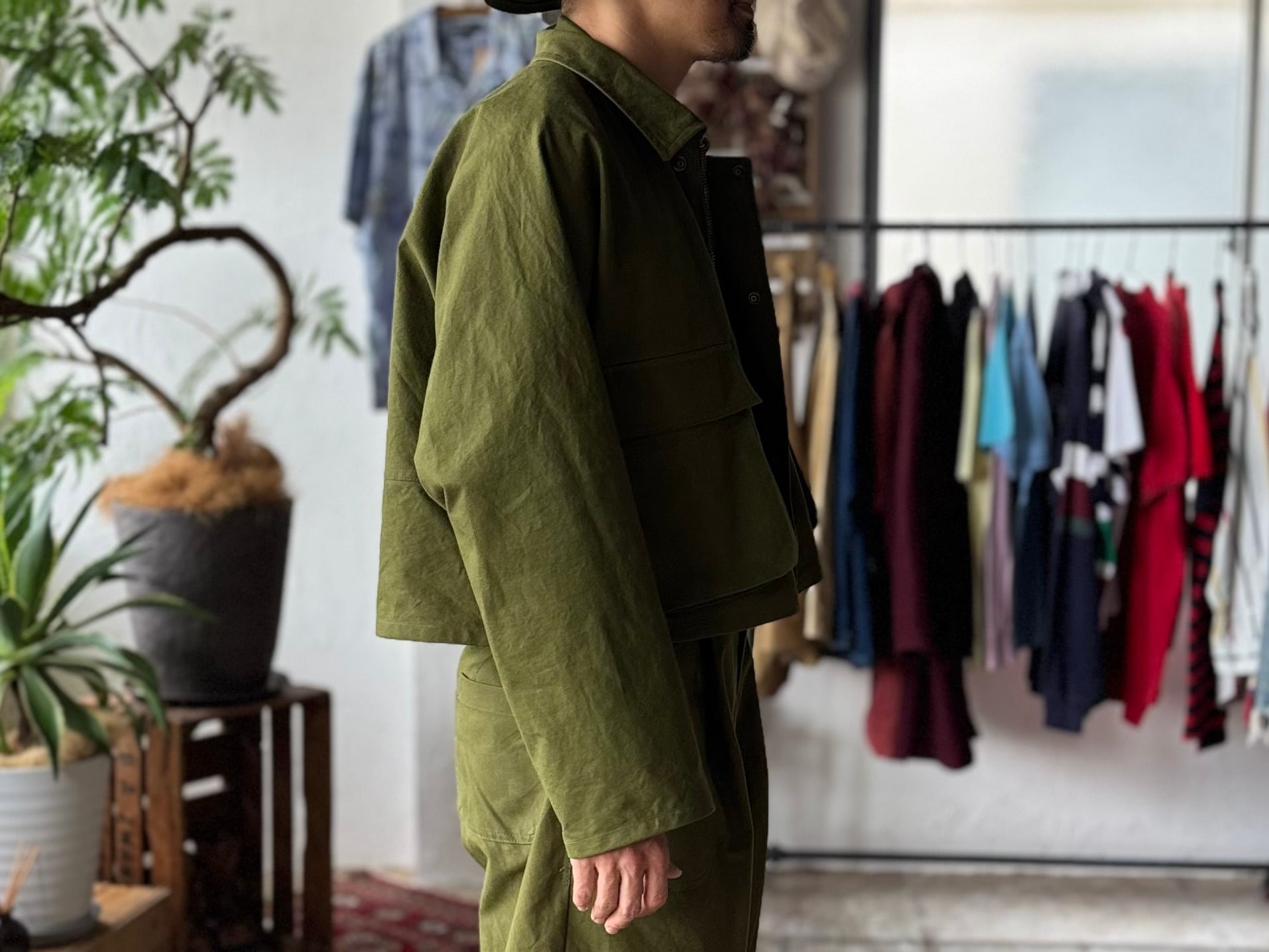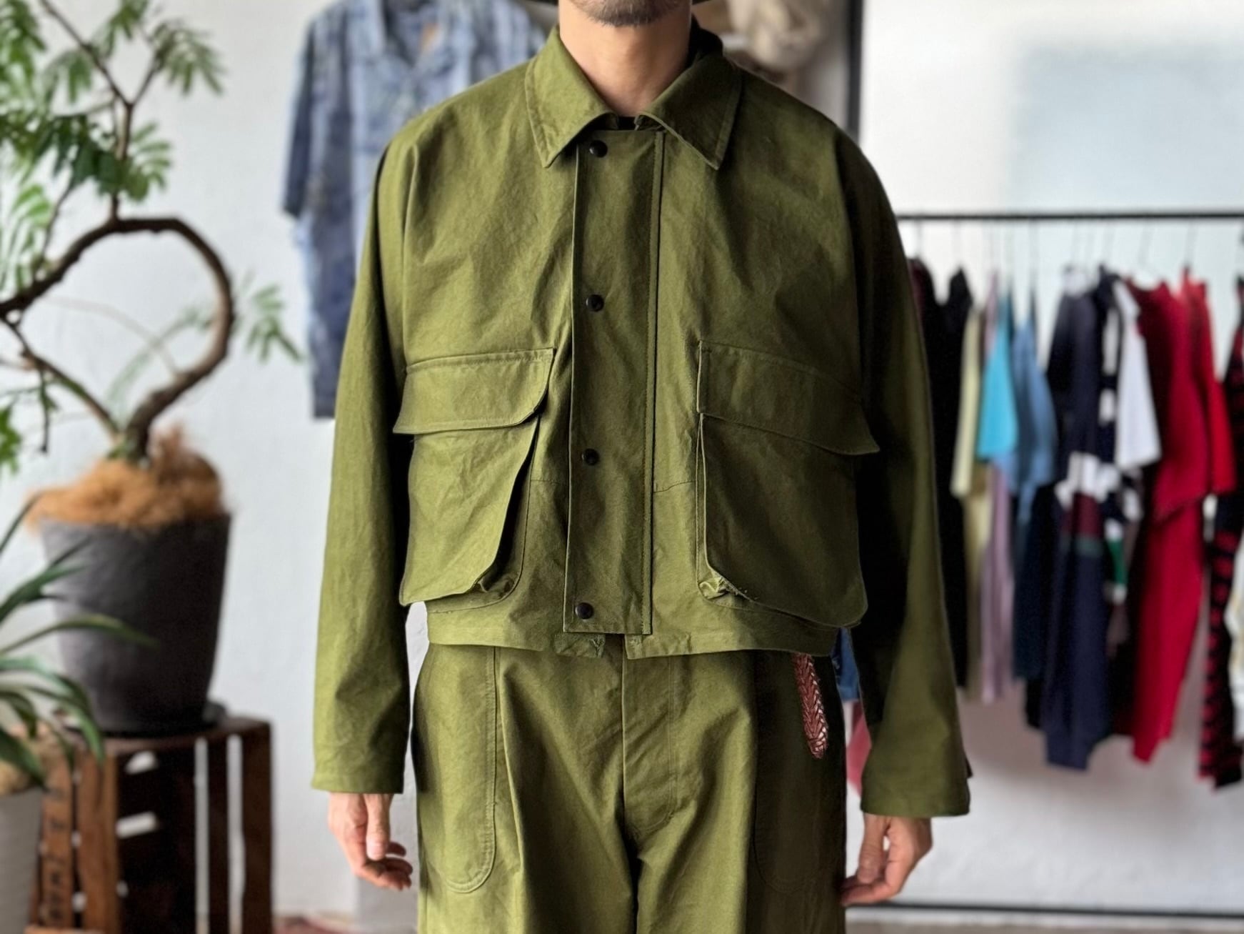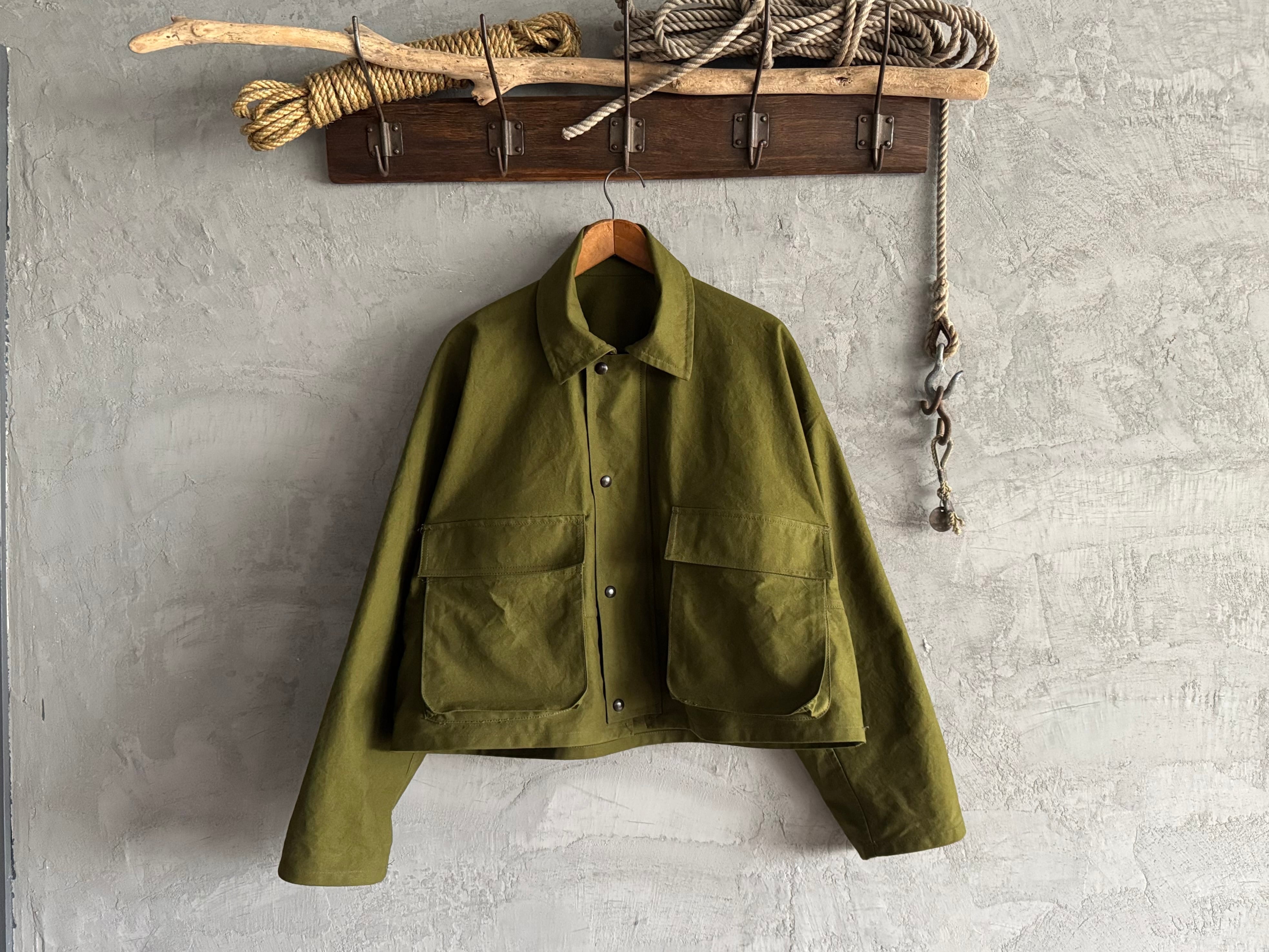 デザインは老舗アウトドアブランド『ideal』の50年代ドルマンスリーブハンティングジャケットをベースに、新たにショート丈で仕立てた一着。