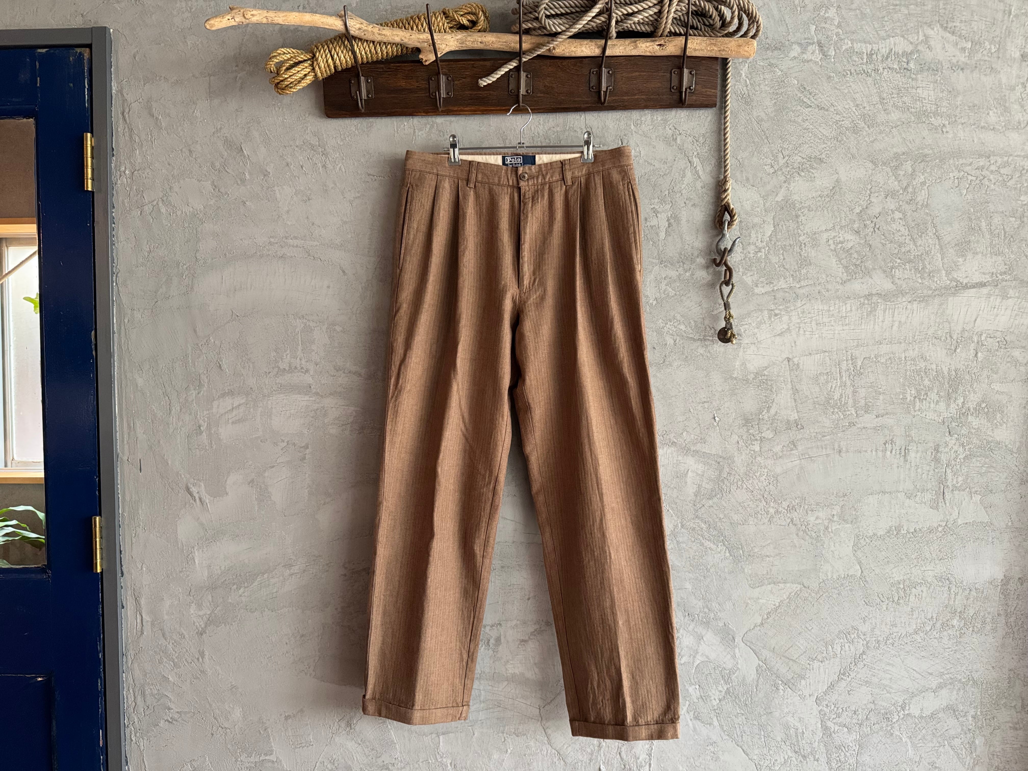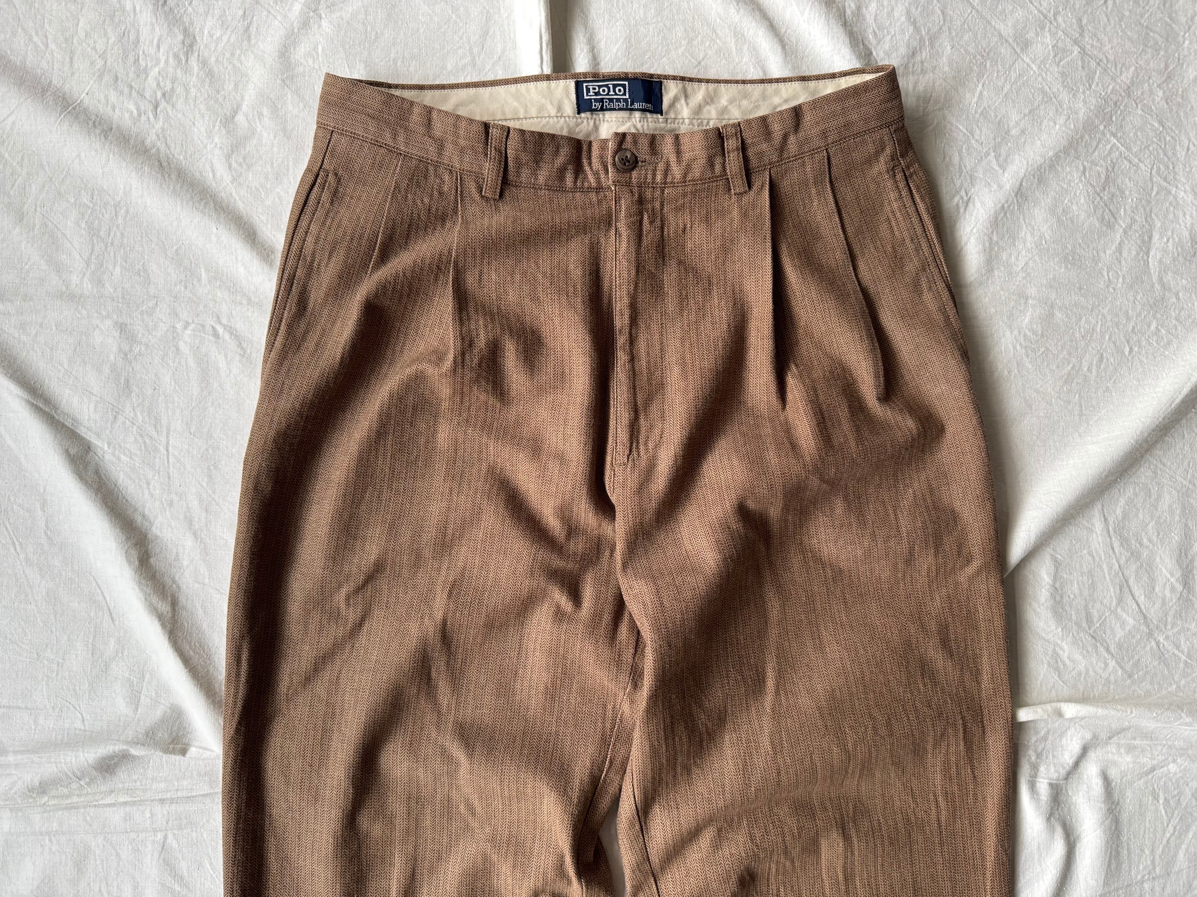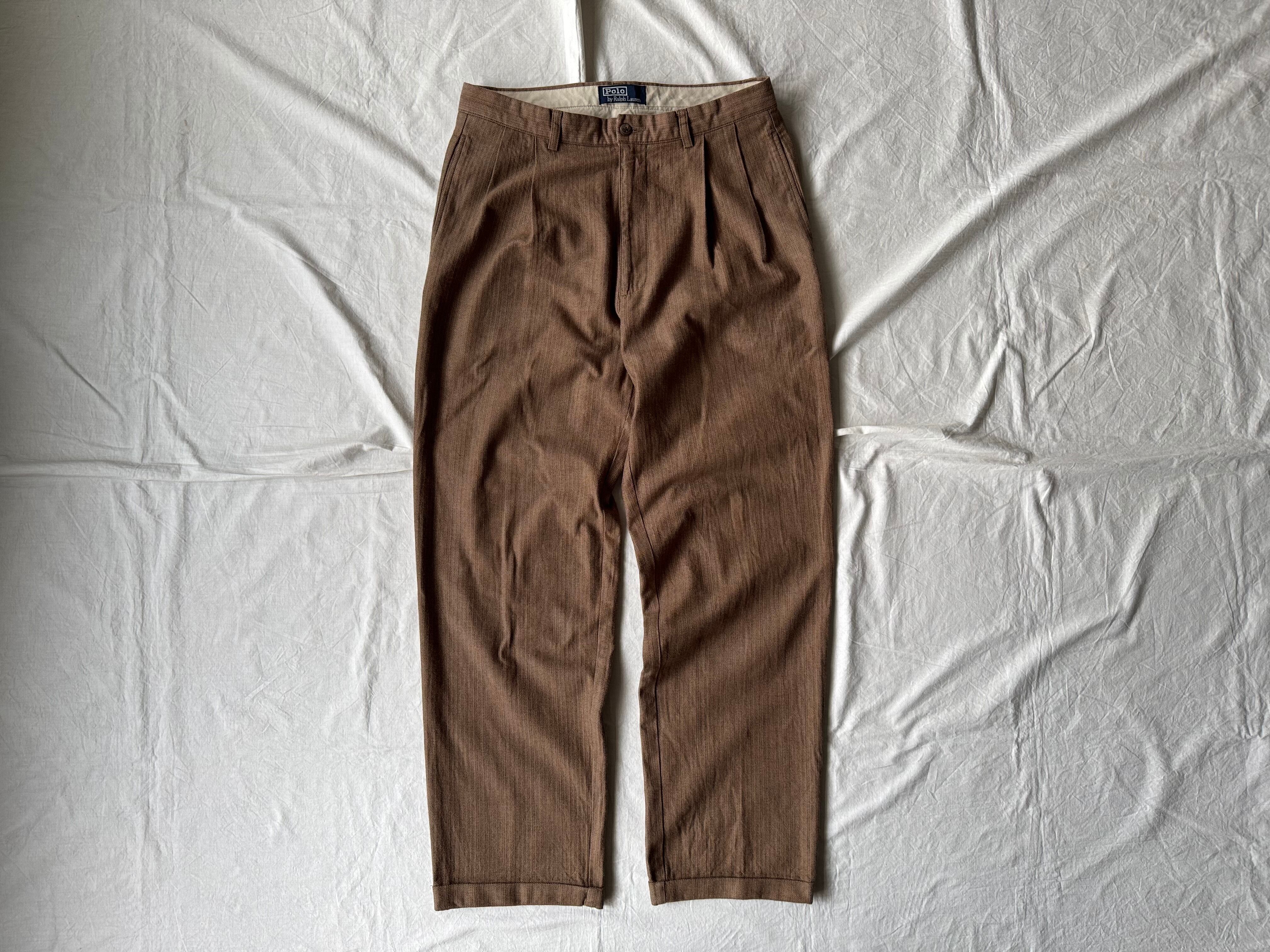 90年代のラルフローレン製、2タック入りのコットン・ヘリンボーン織パンツ。