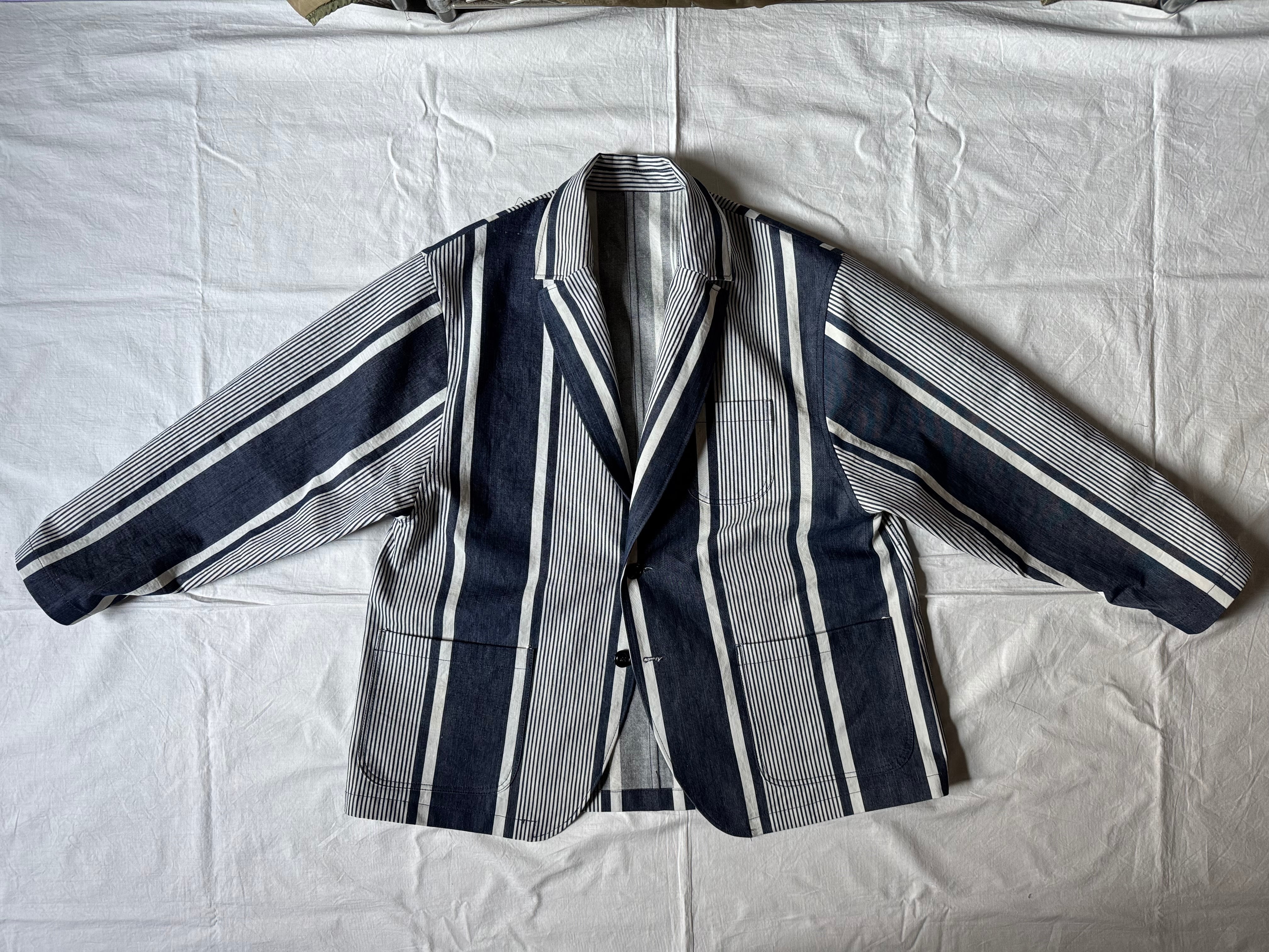 当時は羽毛を包み込んでいた生地を、今回ジャケットに仕立てました。