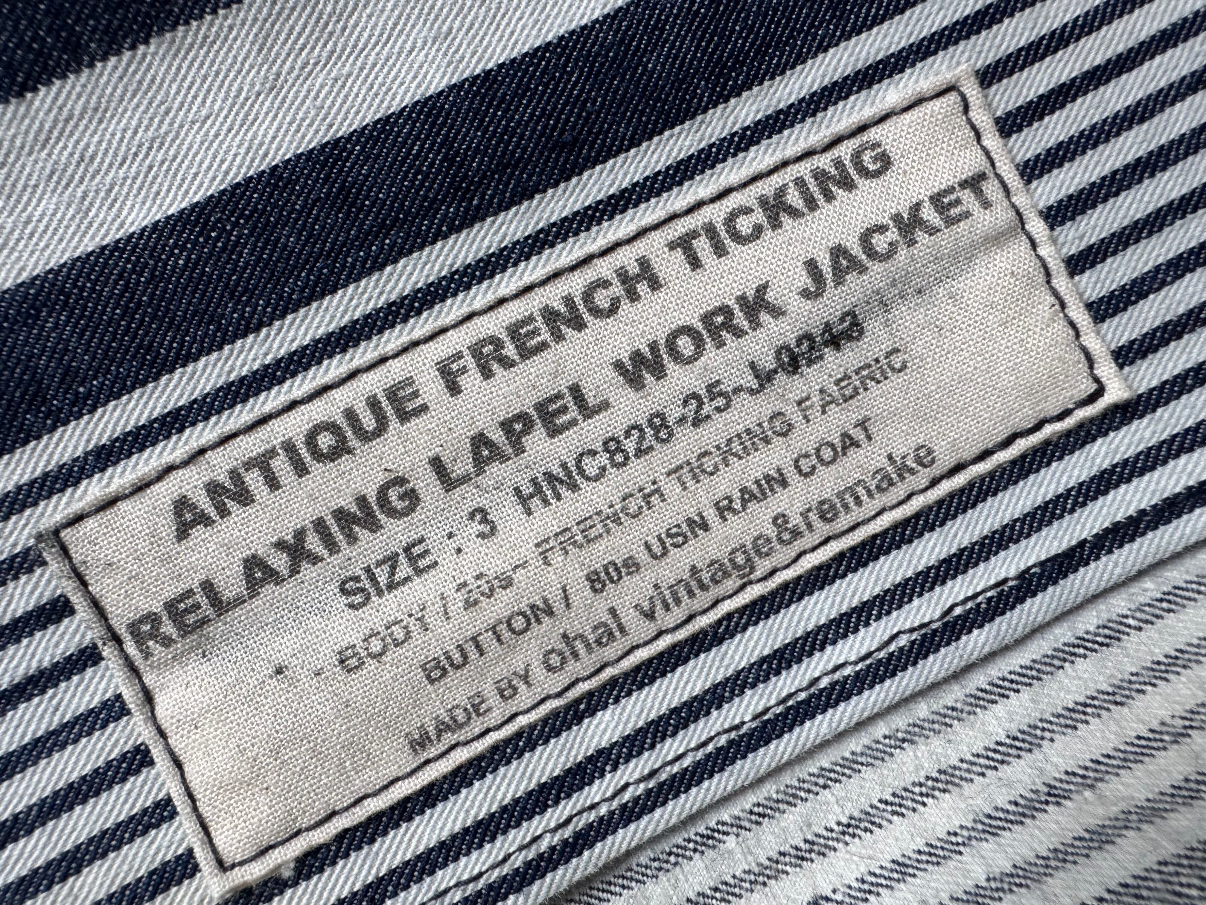 ohal / ANTIQUE FRENCH TICKING RELAXING LAPEL WORK JACKET