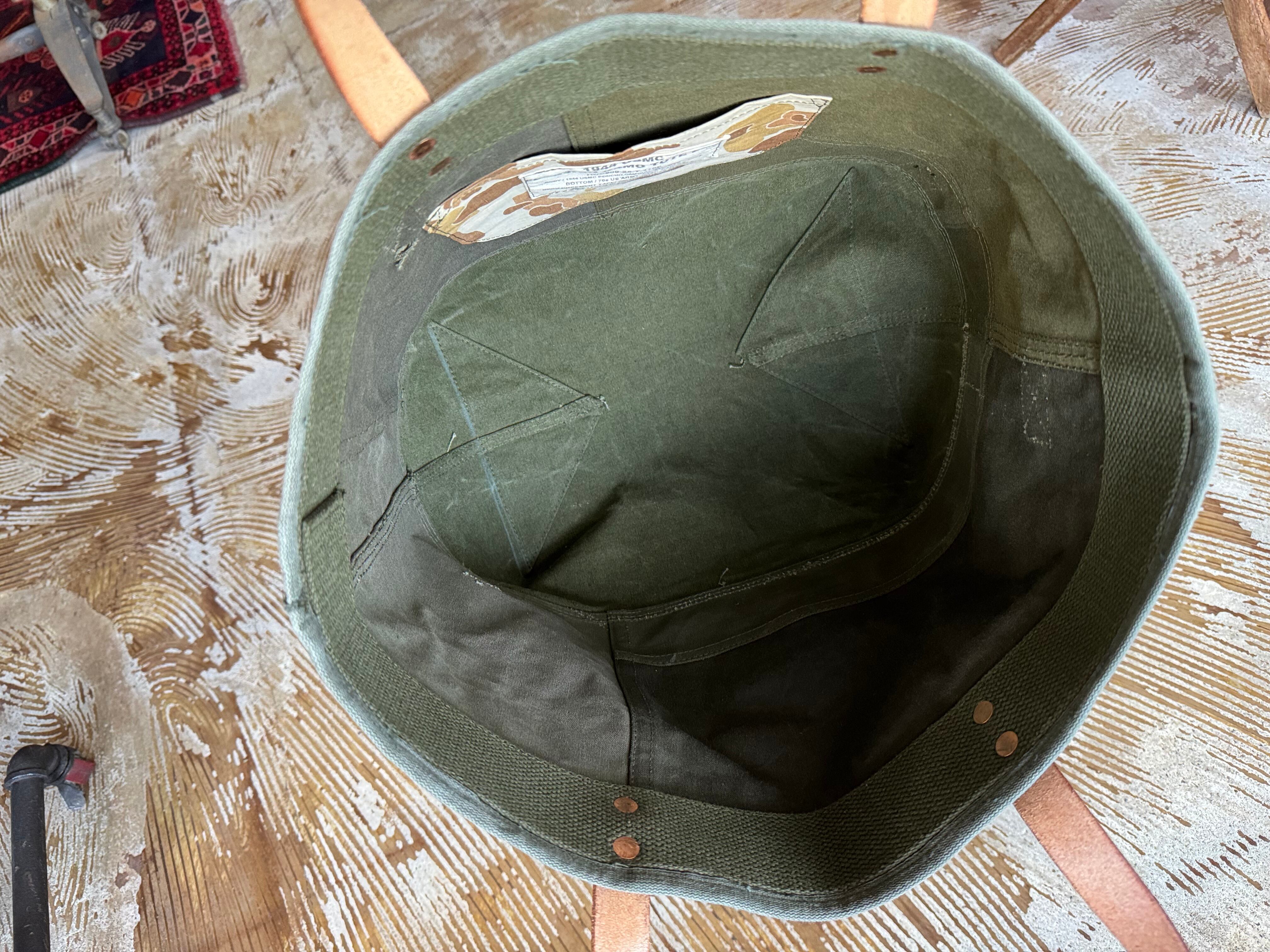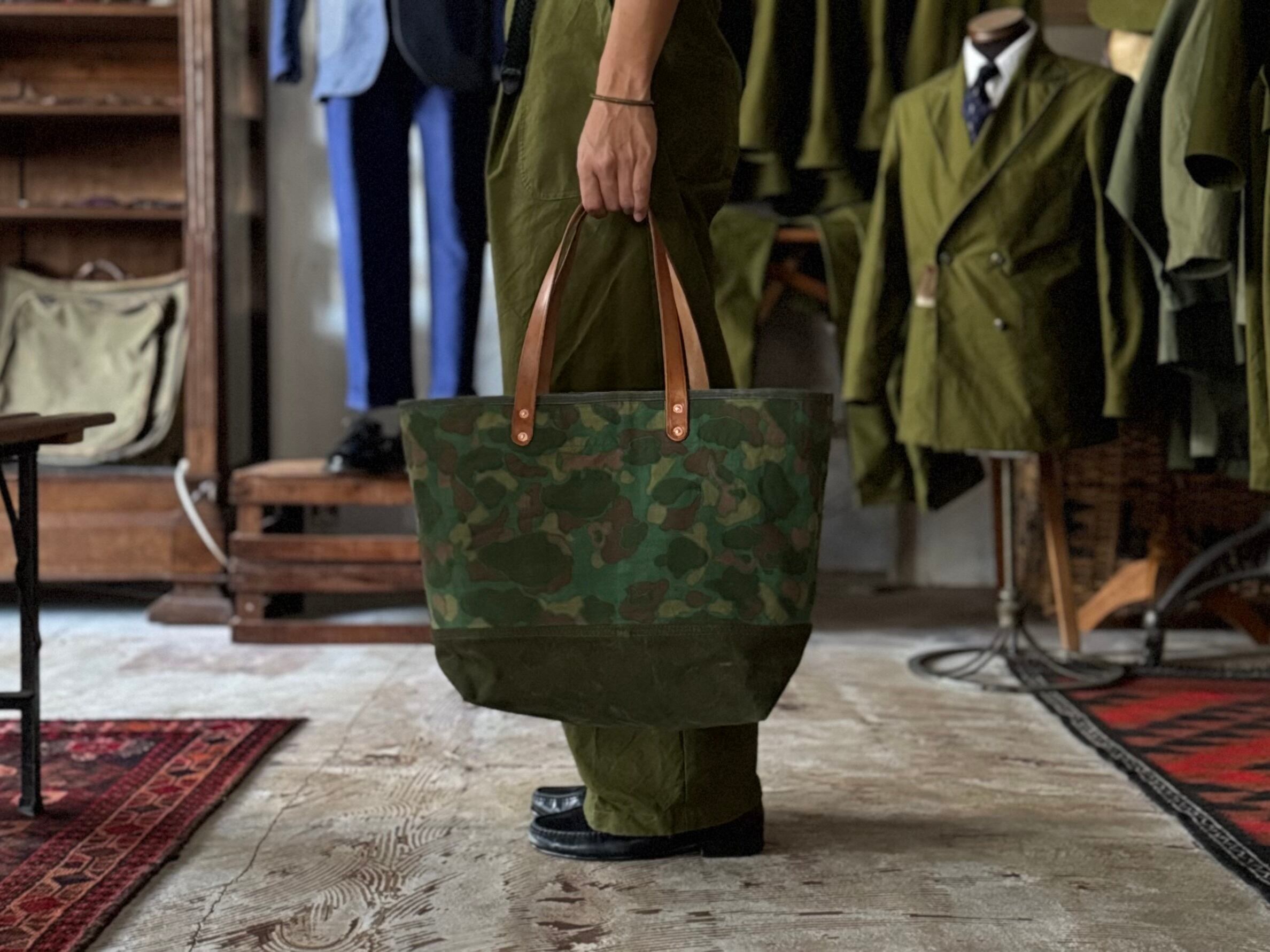 素材は1944年、USMC(アメリカ海兵隊)のフロッグスキンカモ柄のポンチョの生地を使用しております。