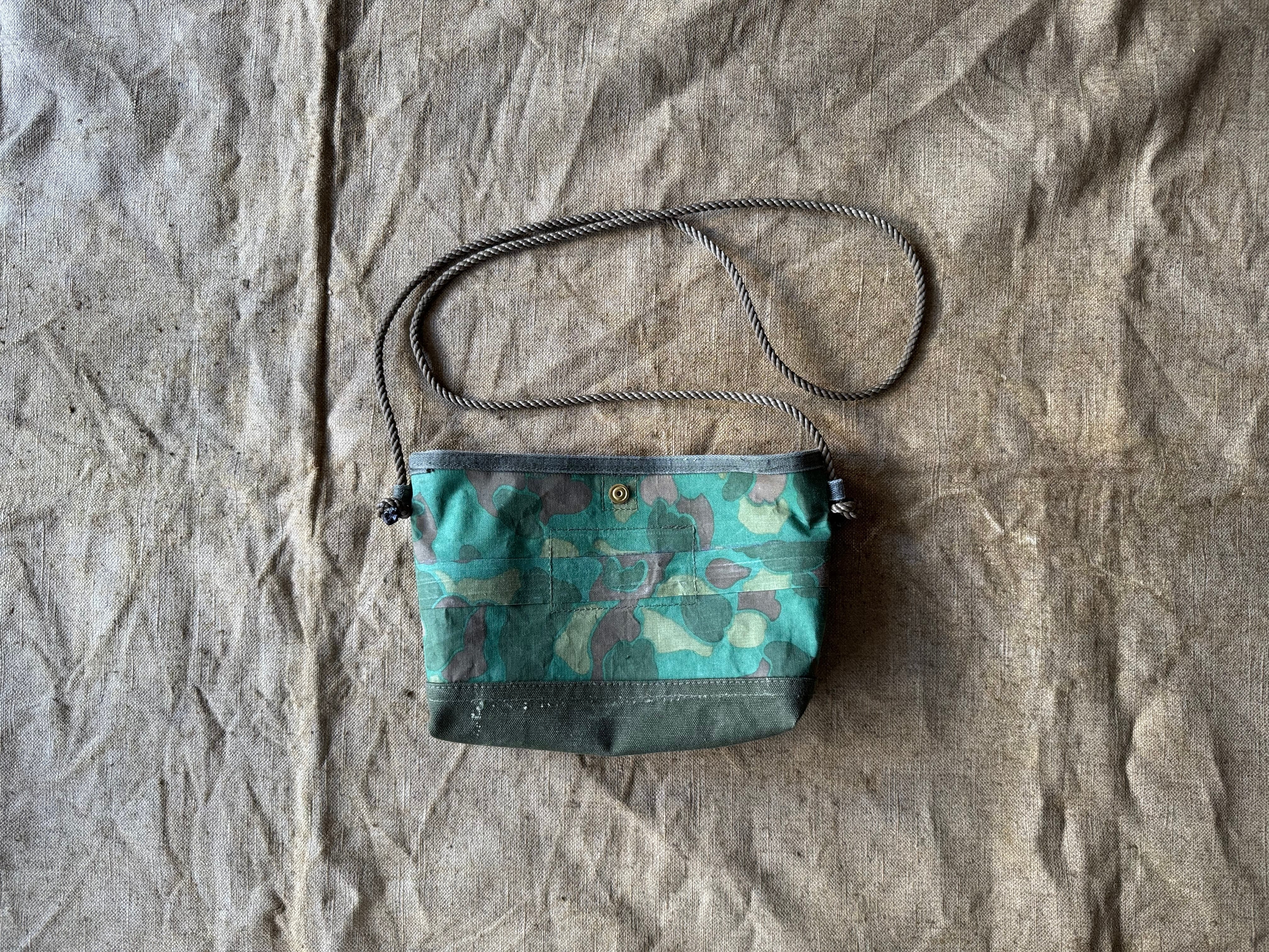 ヴィンテージの素材で、再構築したサコッシュです。