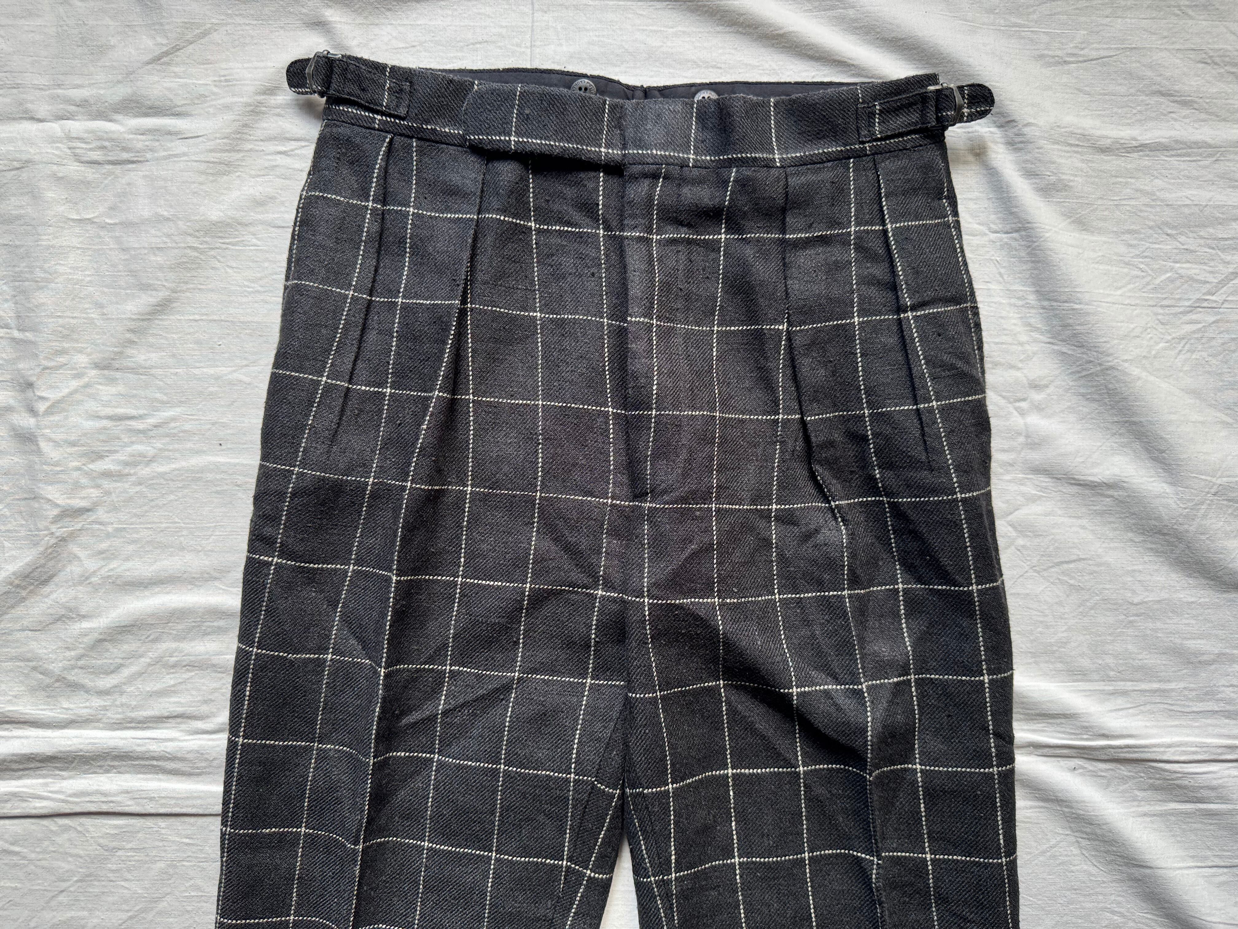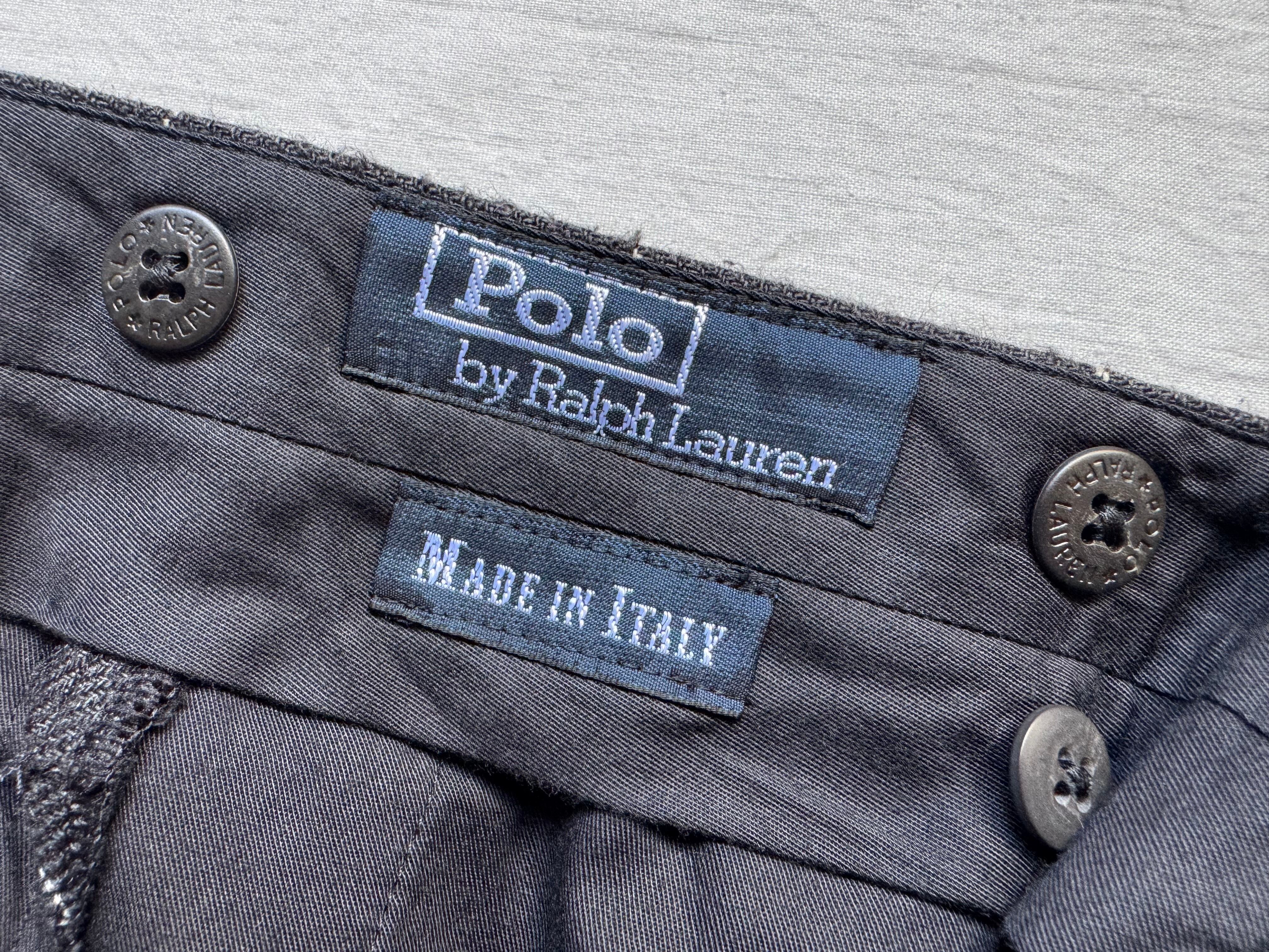ポイント/ ラルフローレンの高級ラインなどで使われているイタリアメイドのスーツ。ジャケットはシルエットが美しく3つボタンも今となっては、懐かしくも新鮮に映り、パンツは程良くテーパードがかかったシルエット。ウエストはアジャスターのみでベルトループがなくスッキリとしたデザイン。