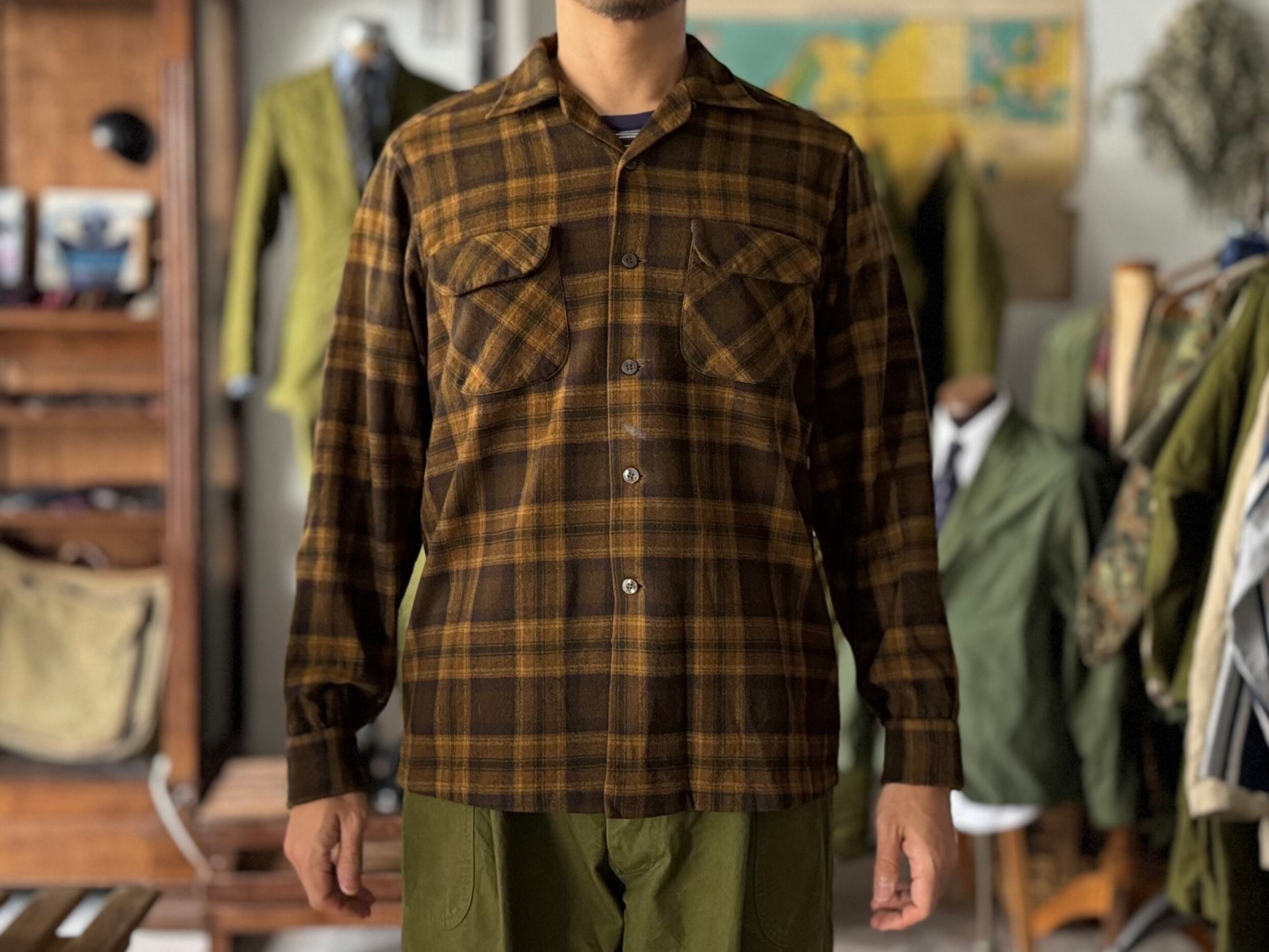 Pendlton 60s ウール チェック 開襟シャツ