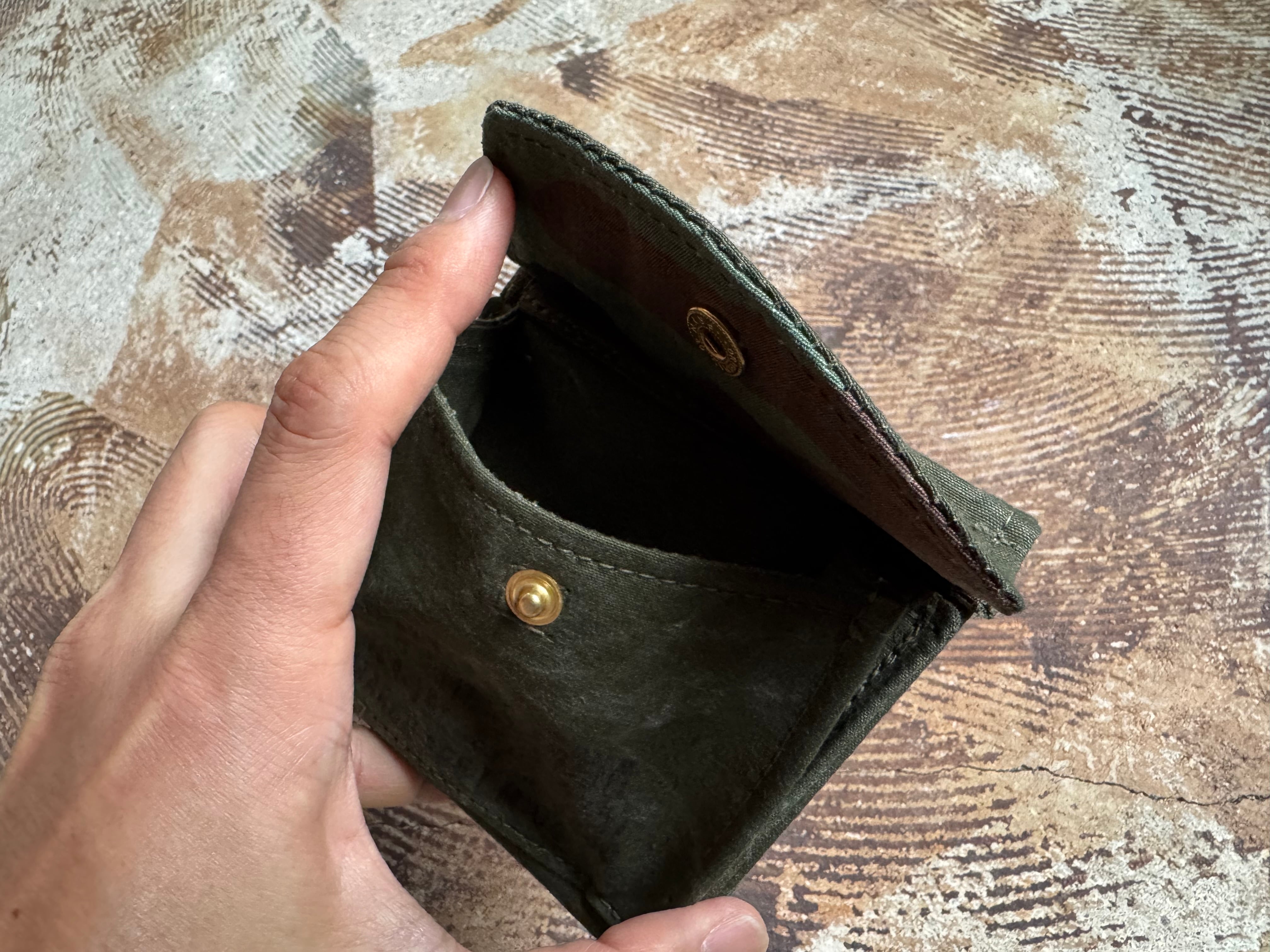 ヴィンテージの生地を使い、3つ折り財布を製作しました。