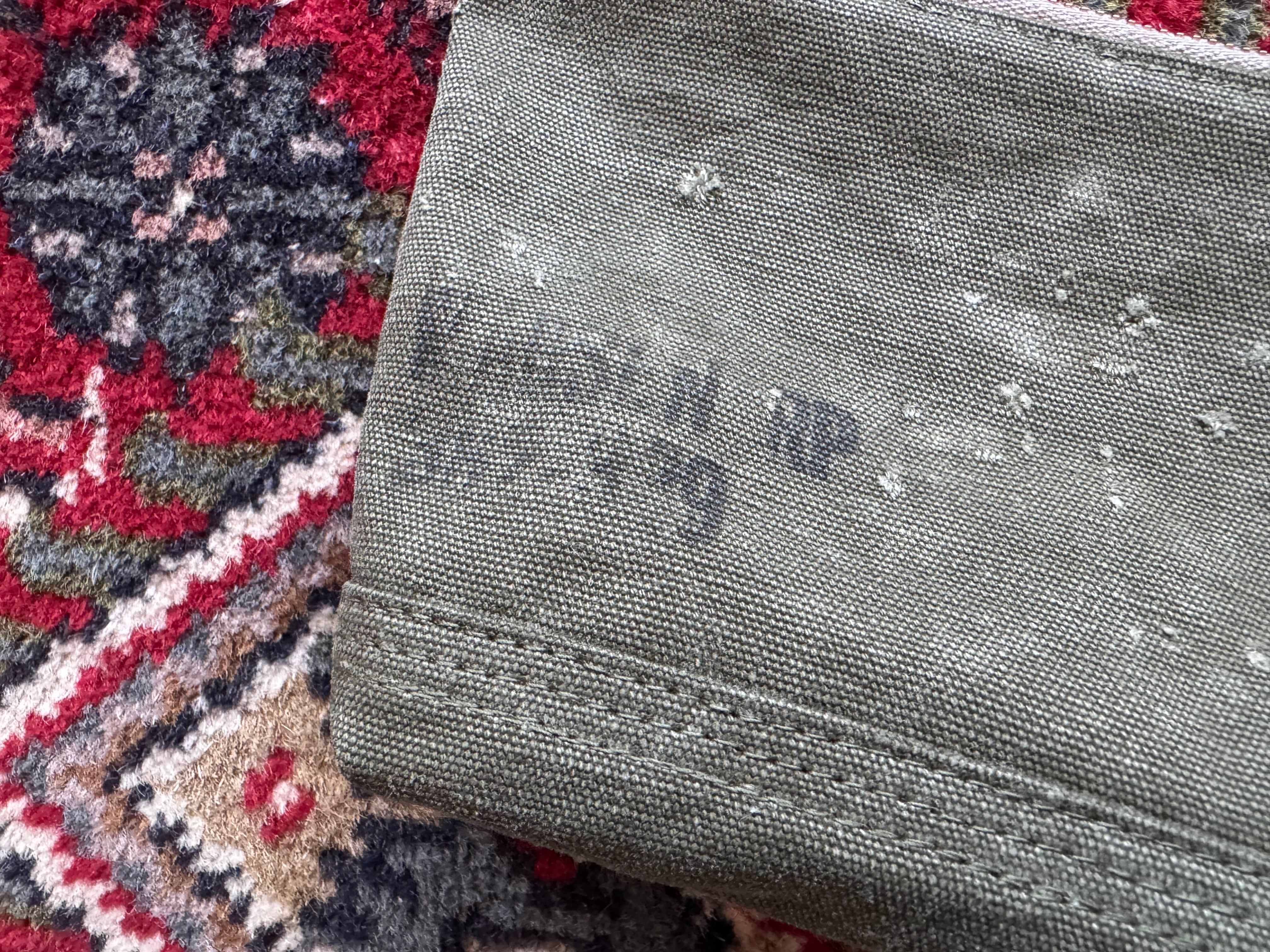 ボディーの素材は50年代頃、アメリカ軍のダッフルバッグの生地です。前面のステンシルが入った部分を使用しています。