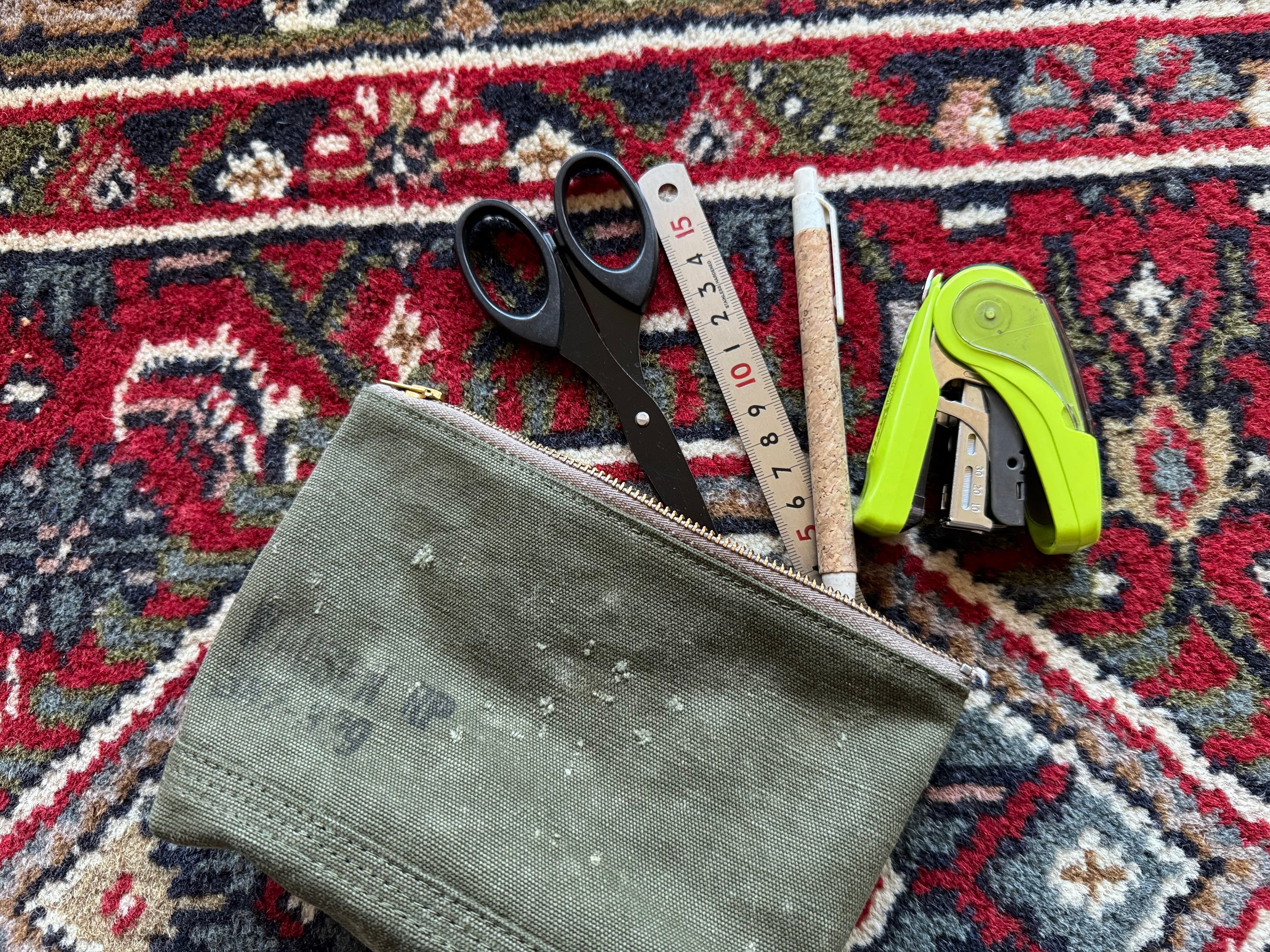 ペンやホッチキス、スティックのりなどの文房具入れにちょうど良いサイズです。