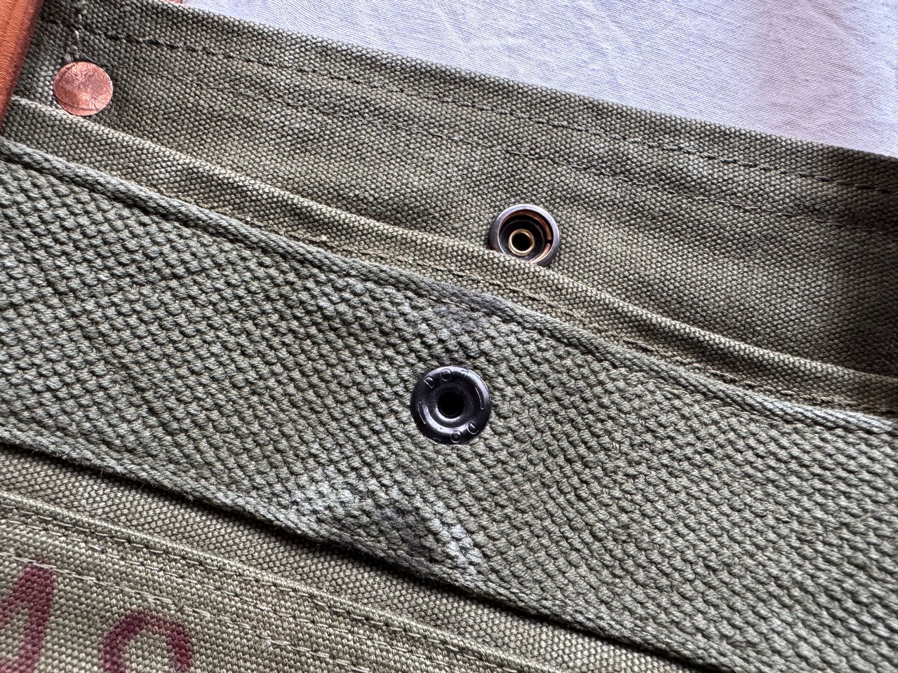 開口部のスナップボタンには、70年代にスコービル社が米軍に納入したデッドストック「DOT」刻印入りボタンを使用し、細部までこだわった仕上がりに。