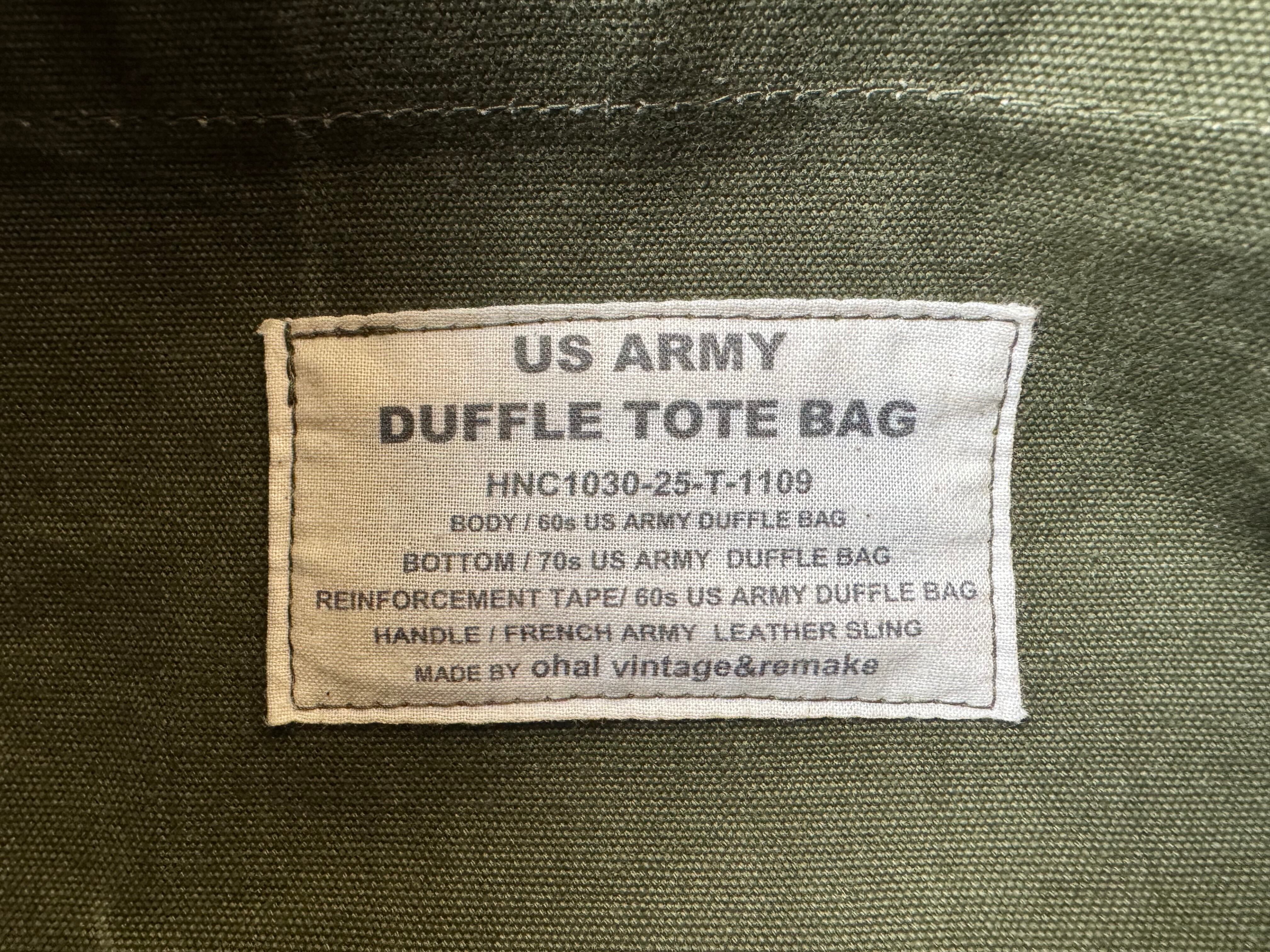 ohal / 60s US ARMY DUFFLE TOTE BAG