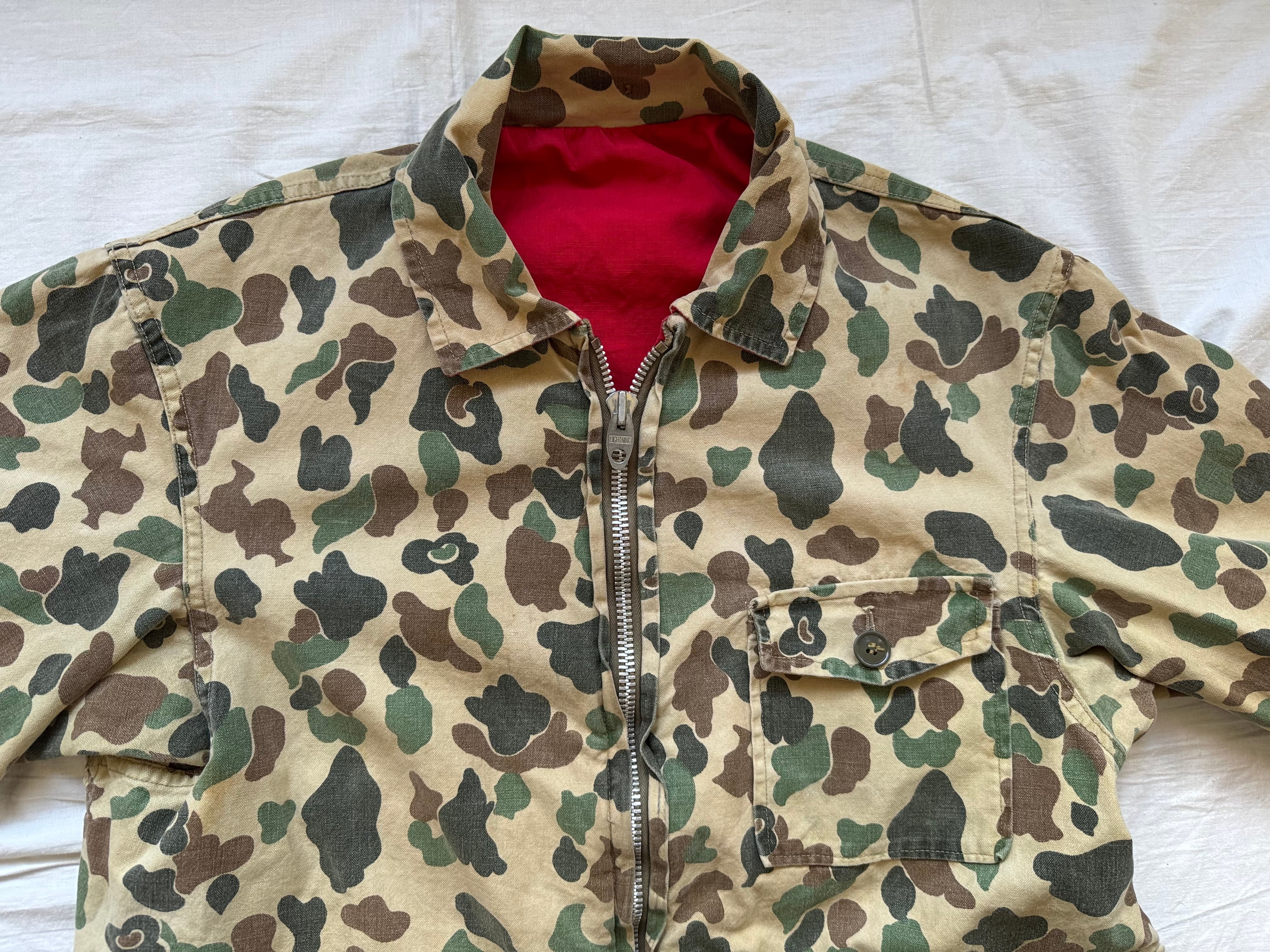 ポイント/ 珍しいリバーシブルのハンティングジャケット。迷彩に赤か映えます。