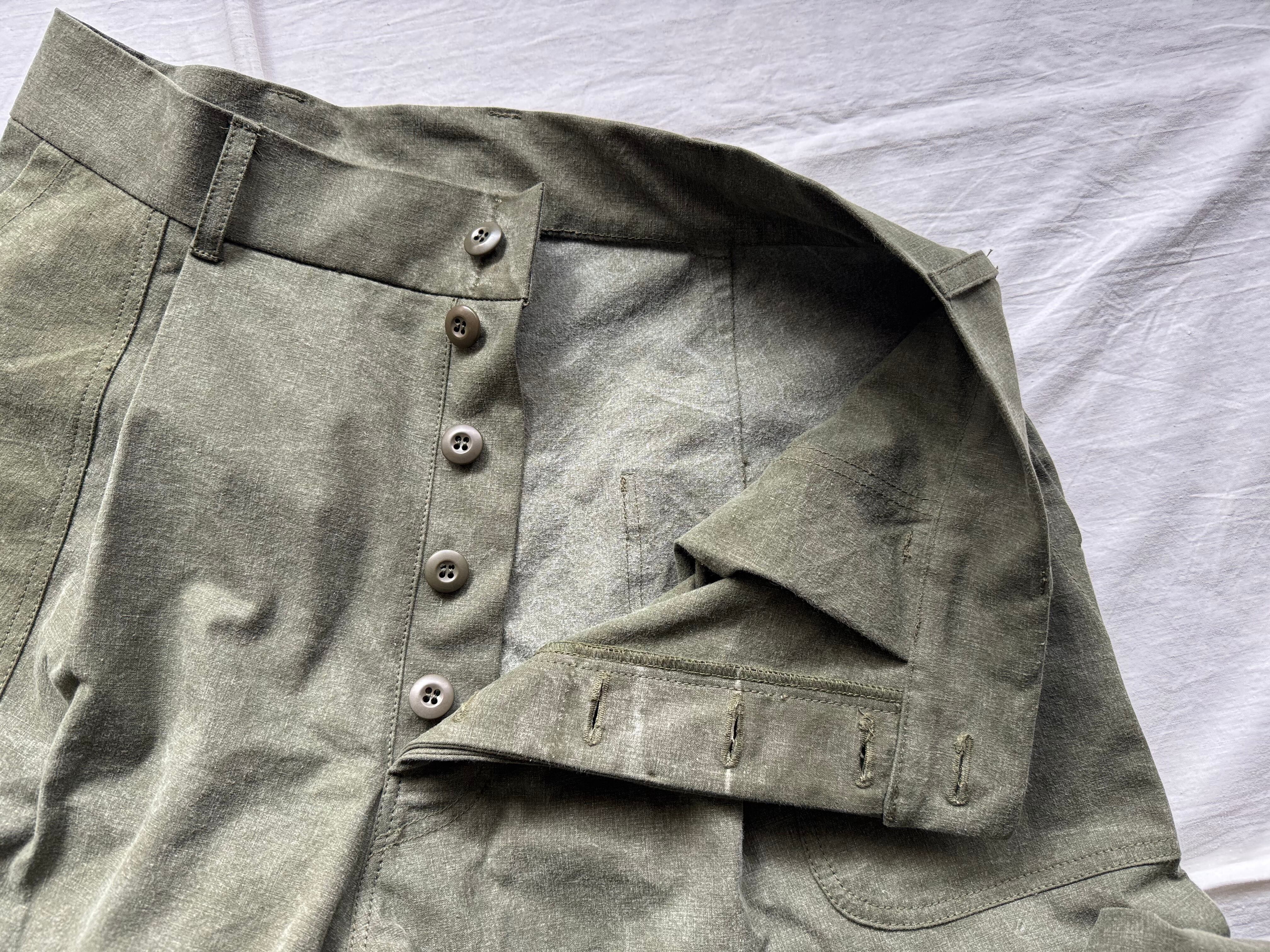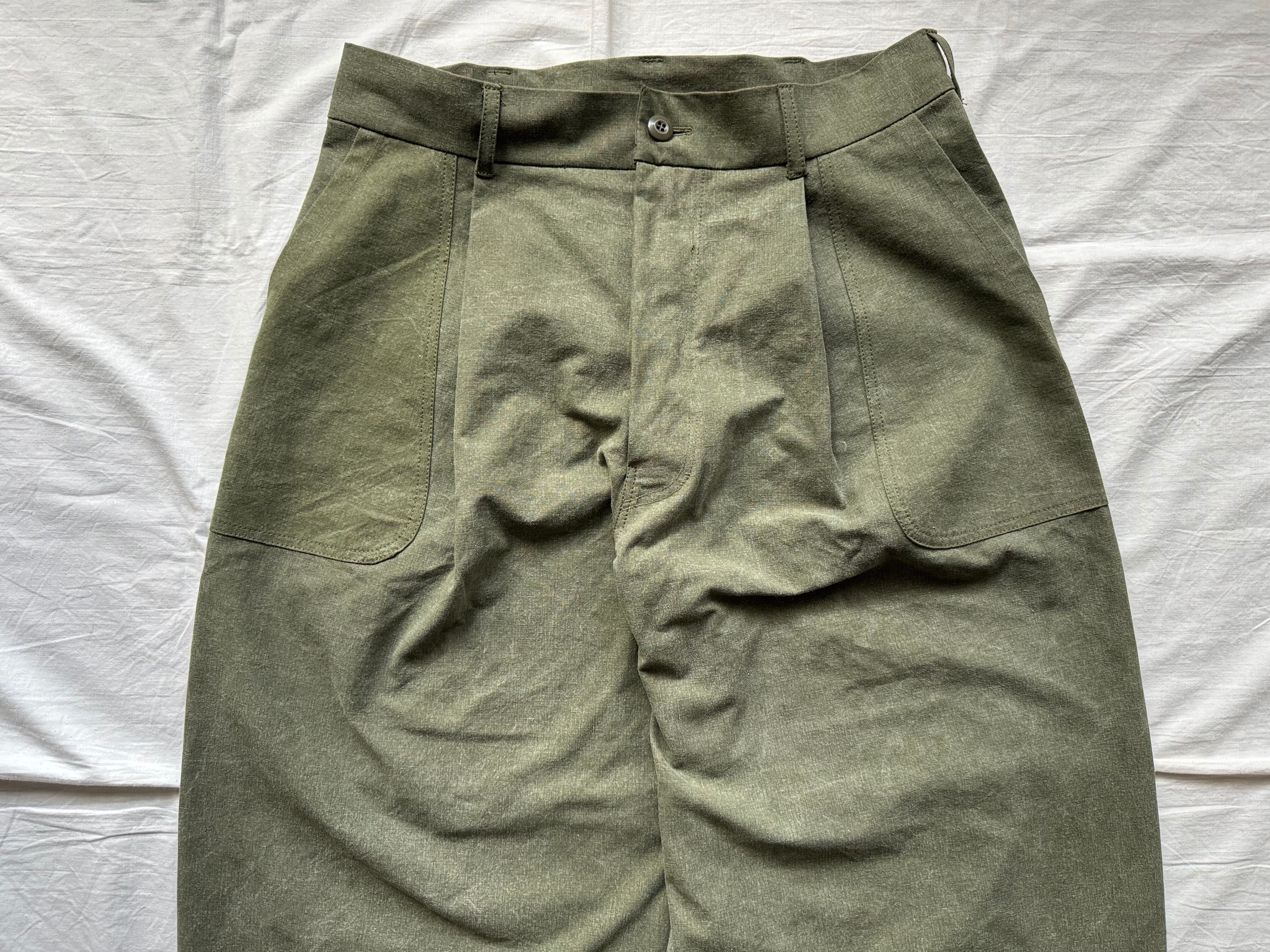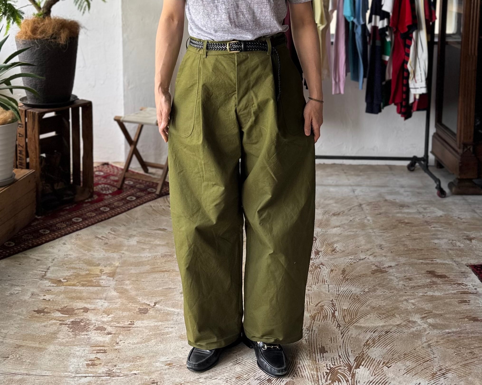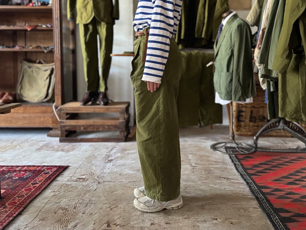 過去のミリタリーアイテムには無いシルエットをヴィンテージのミリタリー生地でつくる、ohalらしさが詰まったパンツです。