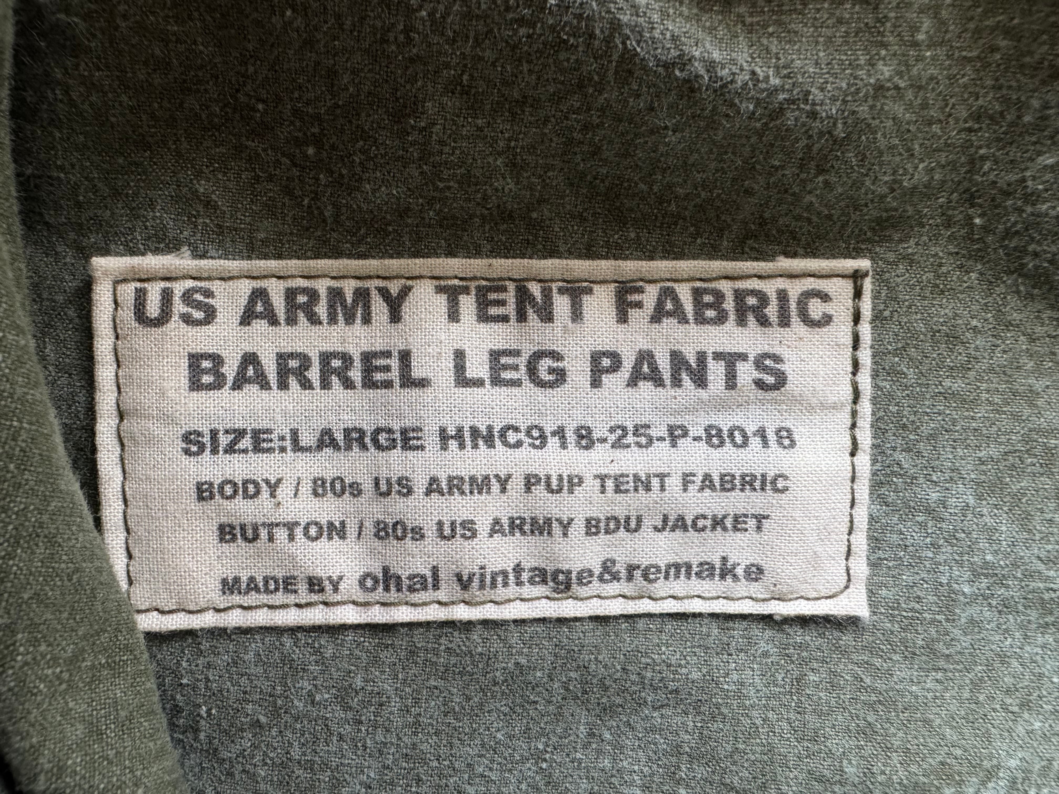 受注販売 : ohal / US ARMY PUP TENT BARREL LEG PANTS