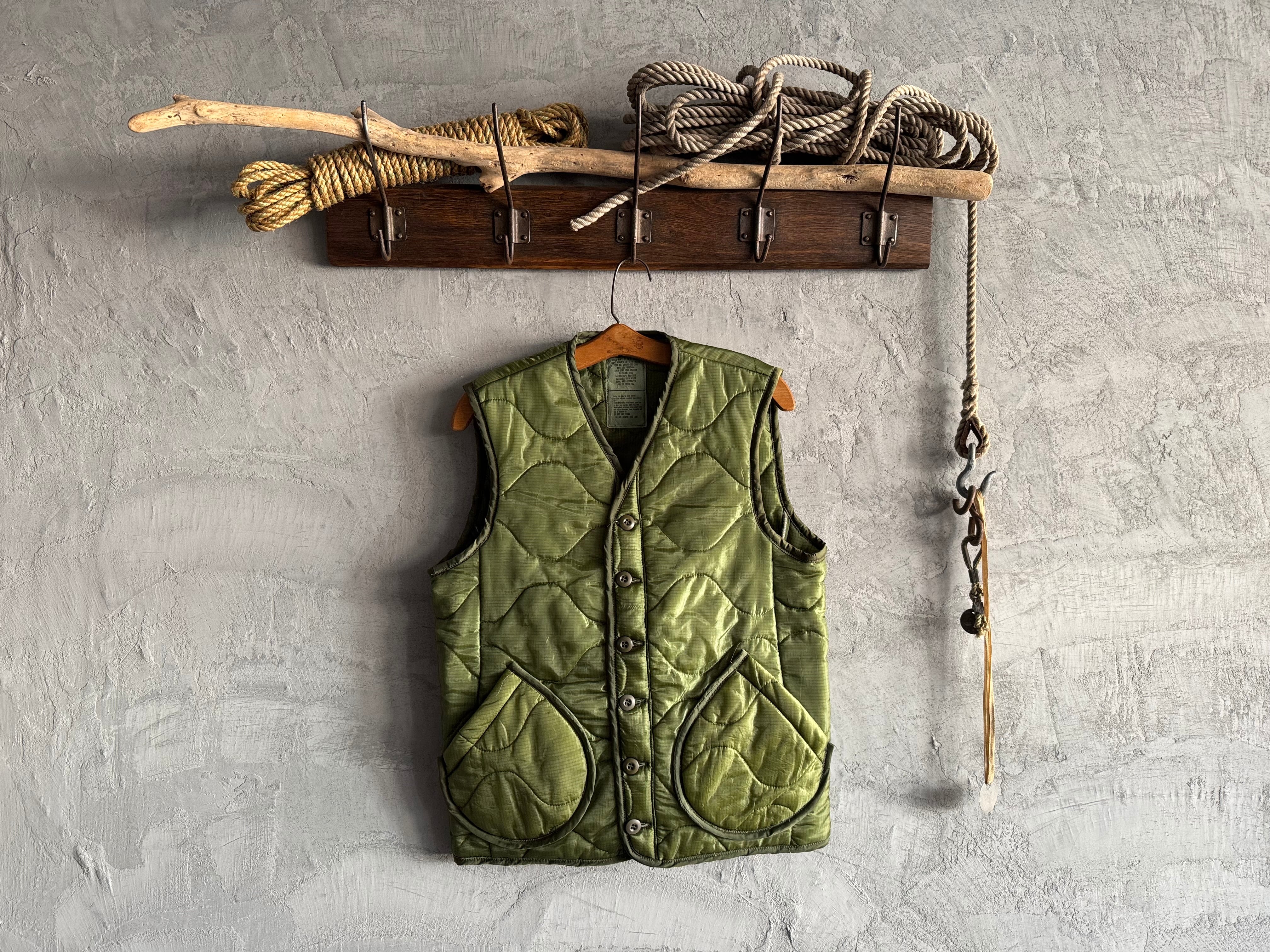 アメリカ軍で使用されていたキルティングライナー生地を元に、インナーベストとして再構築しました。