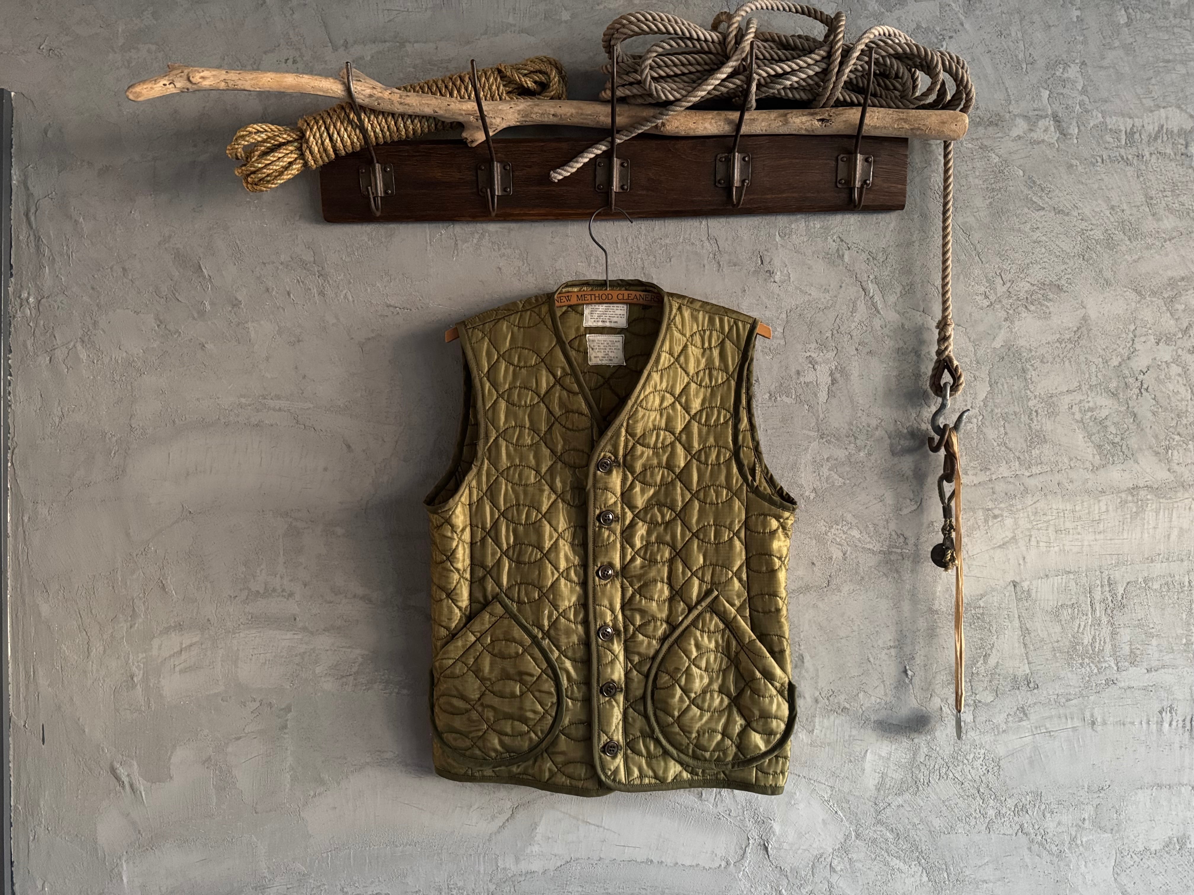 アメリカ軍で使用されていたキルティングライナー生地を元に、インナーベストとして再構築しました。