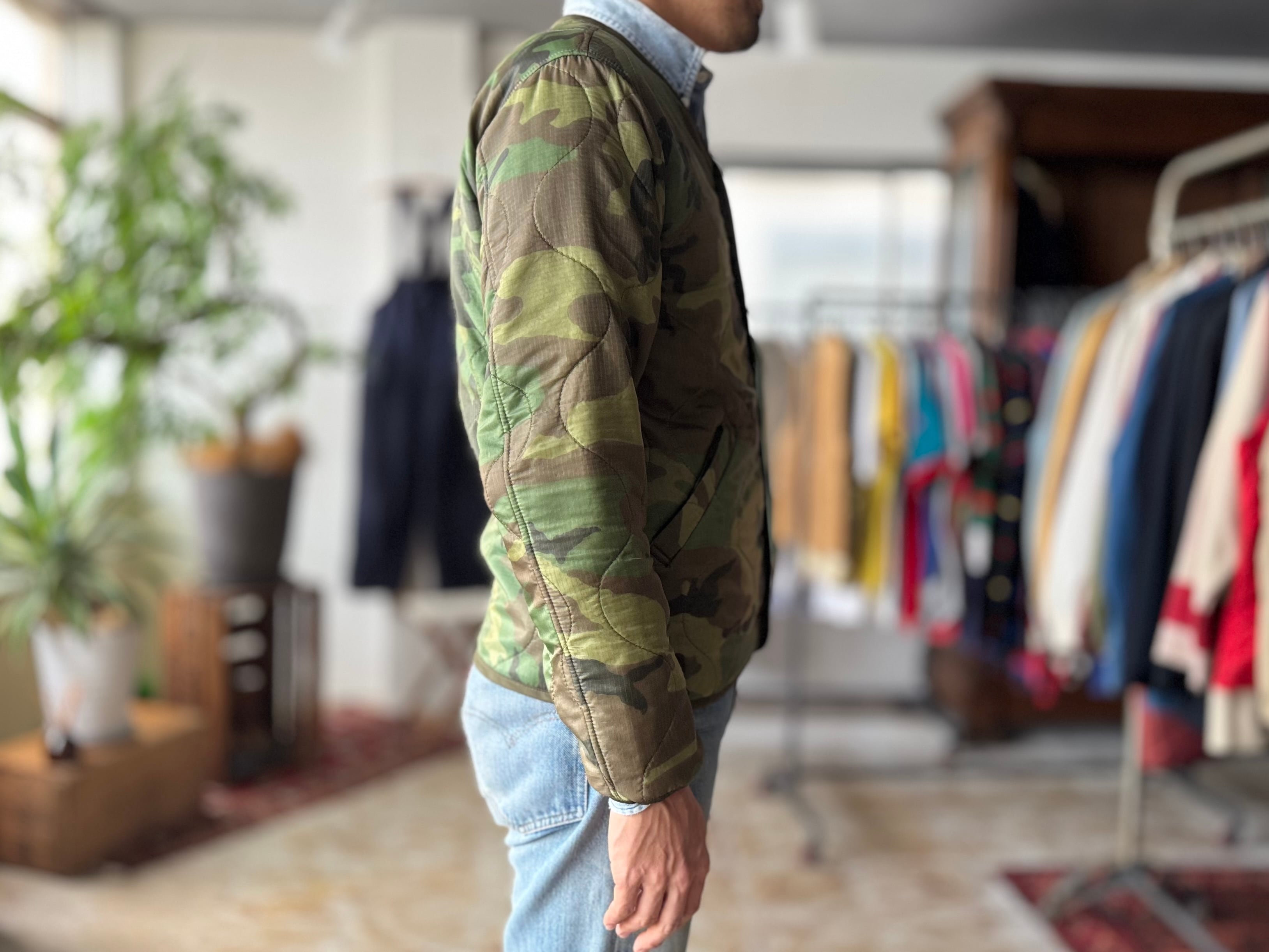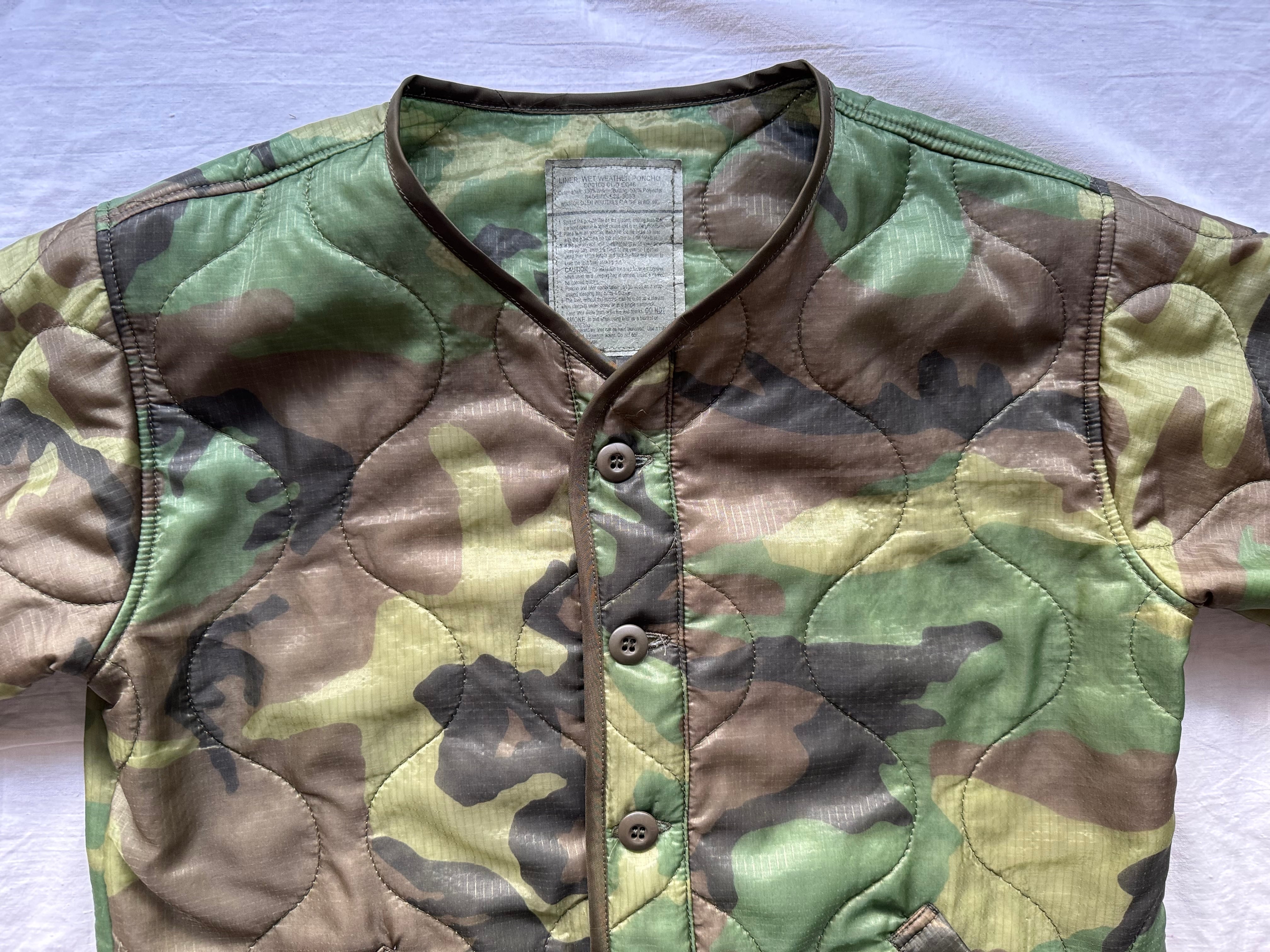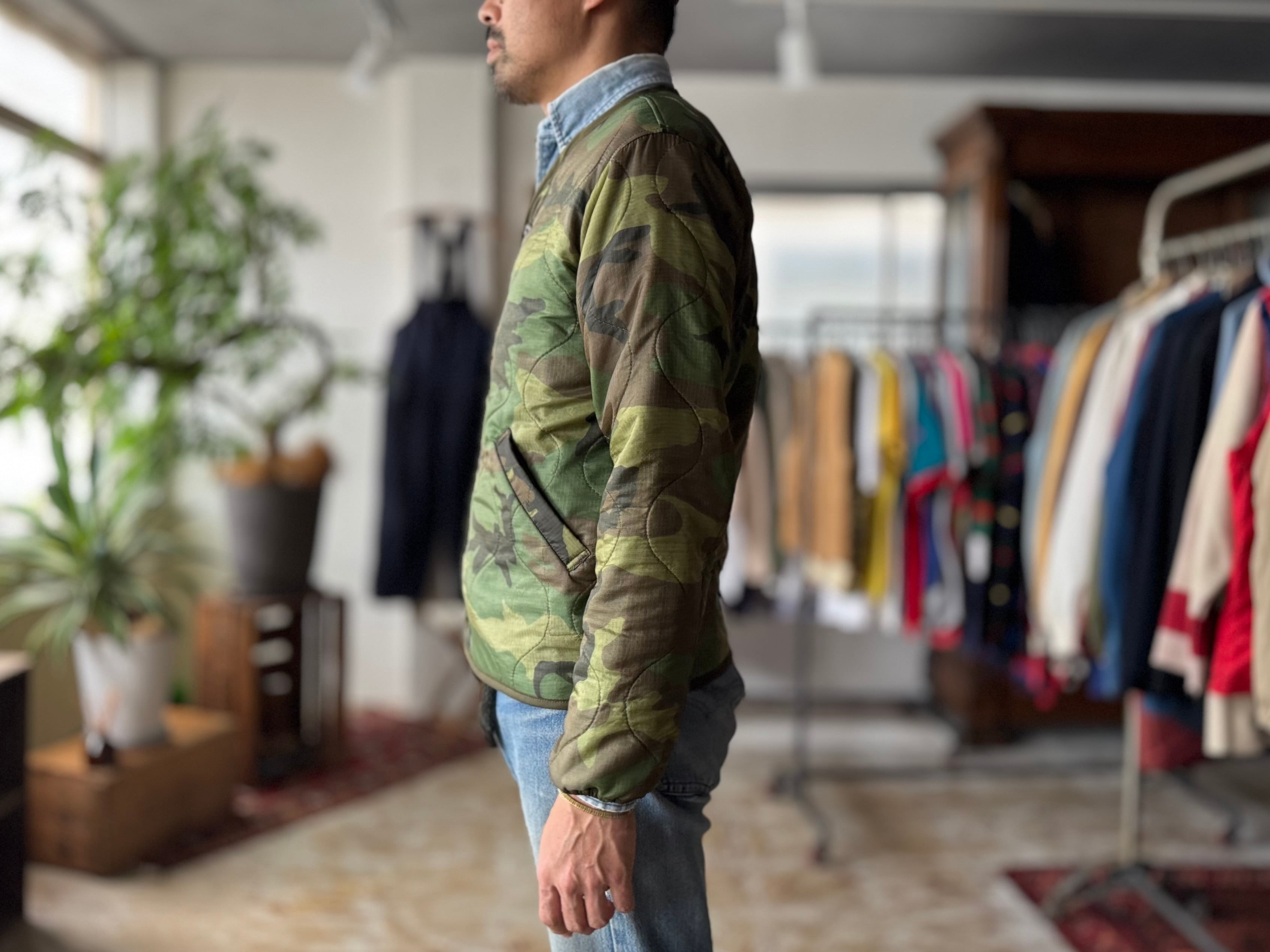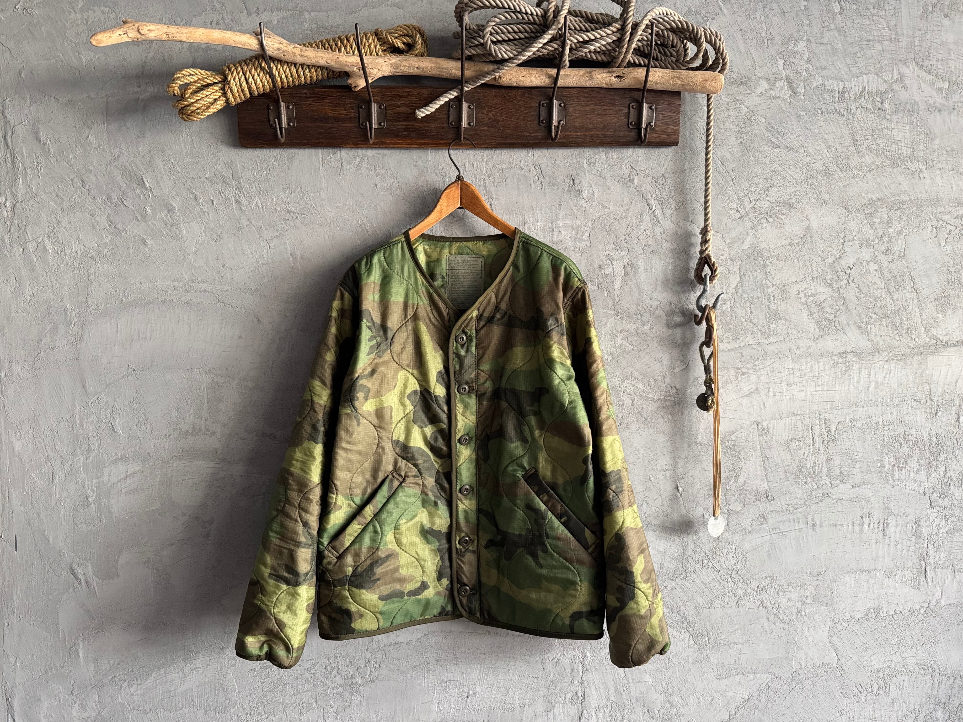ボディには、2000年代頃に米軍へ納入された実物のポンチョライナーを使用。パイピングやボタンまで、すべてがミルスペックに準拠した本物のパーツで構成された、純粋な軍用素材ならではの佇まいが魅力です。