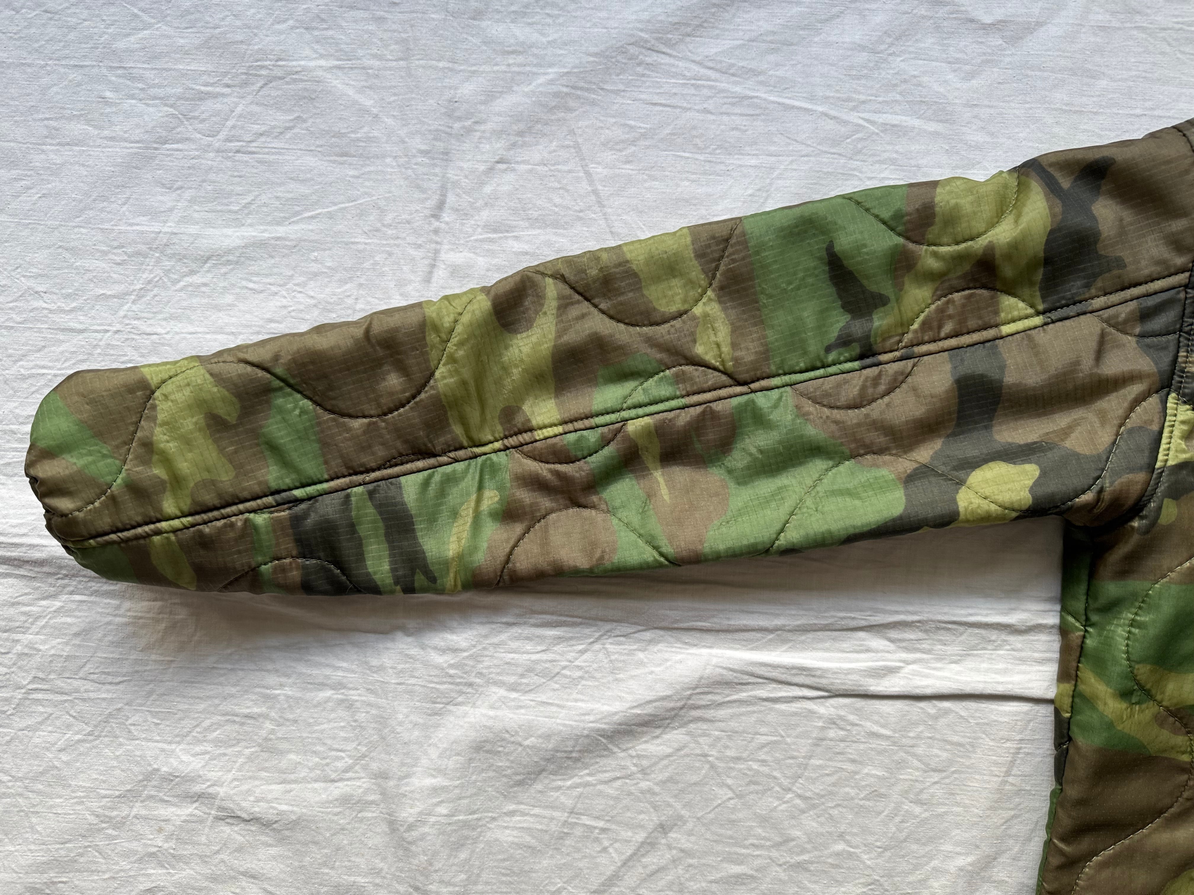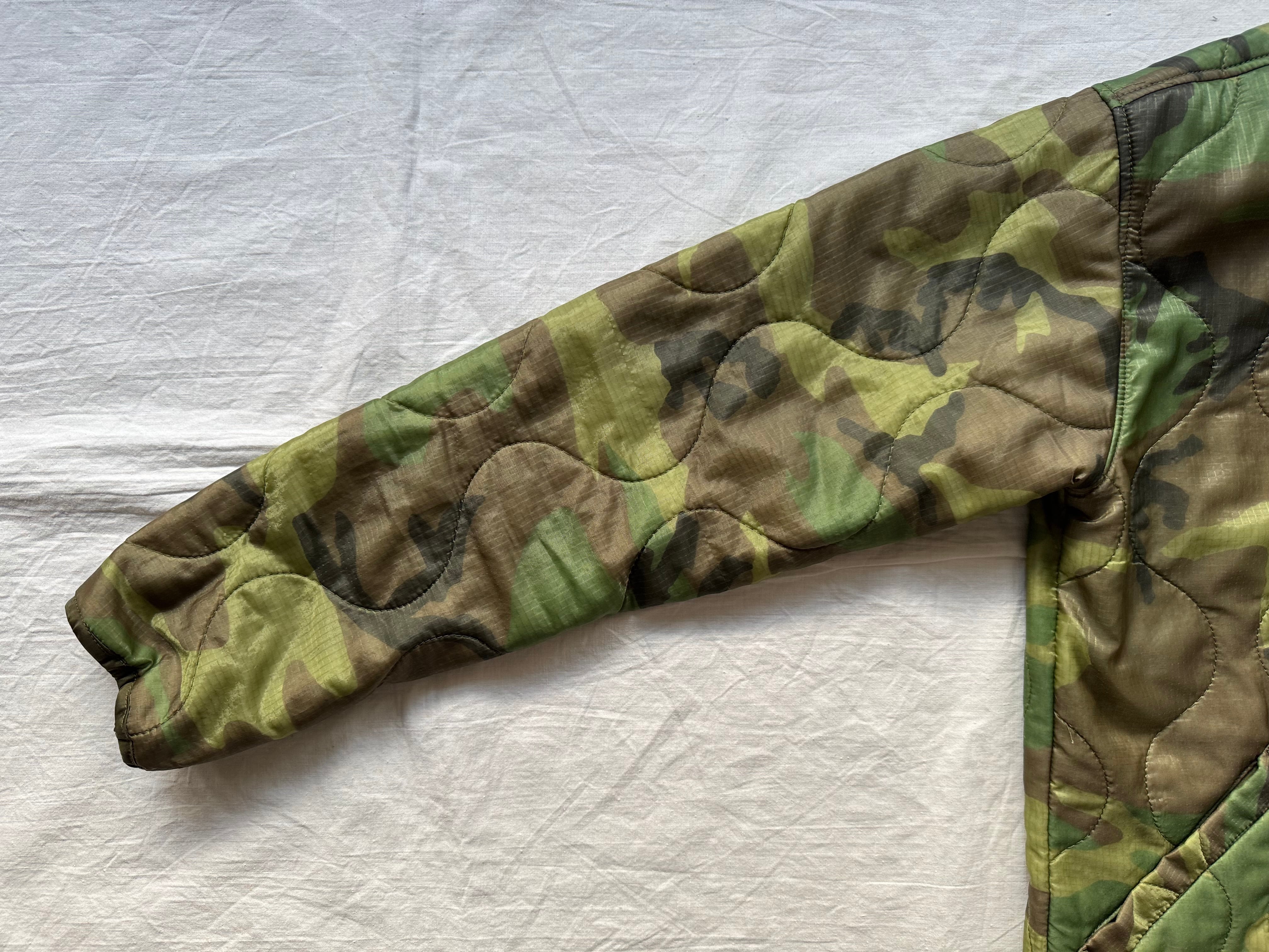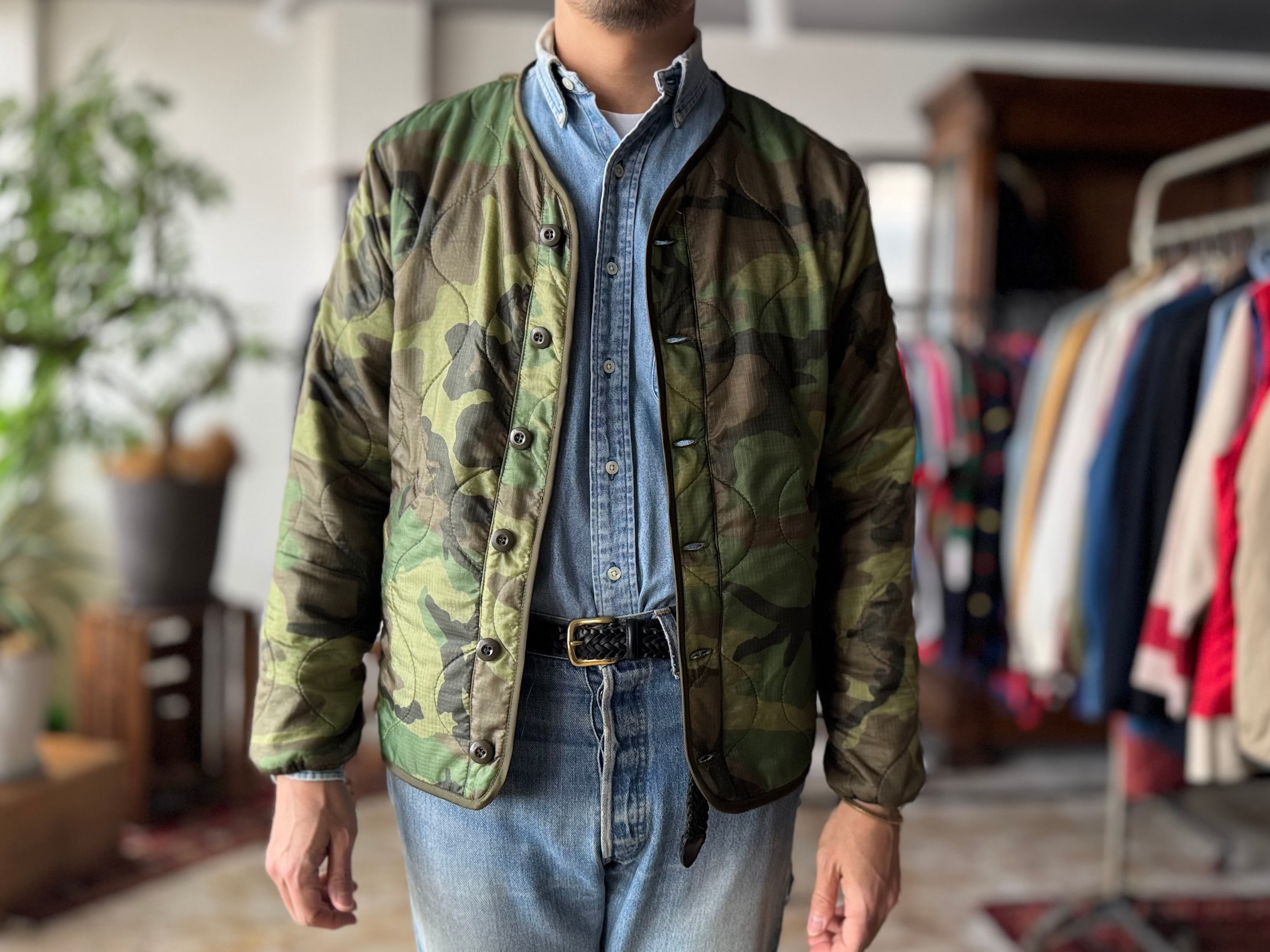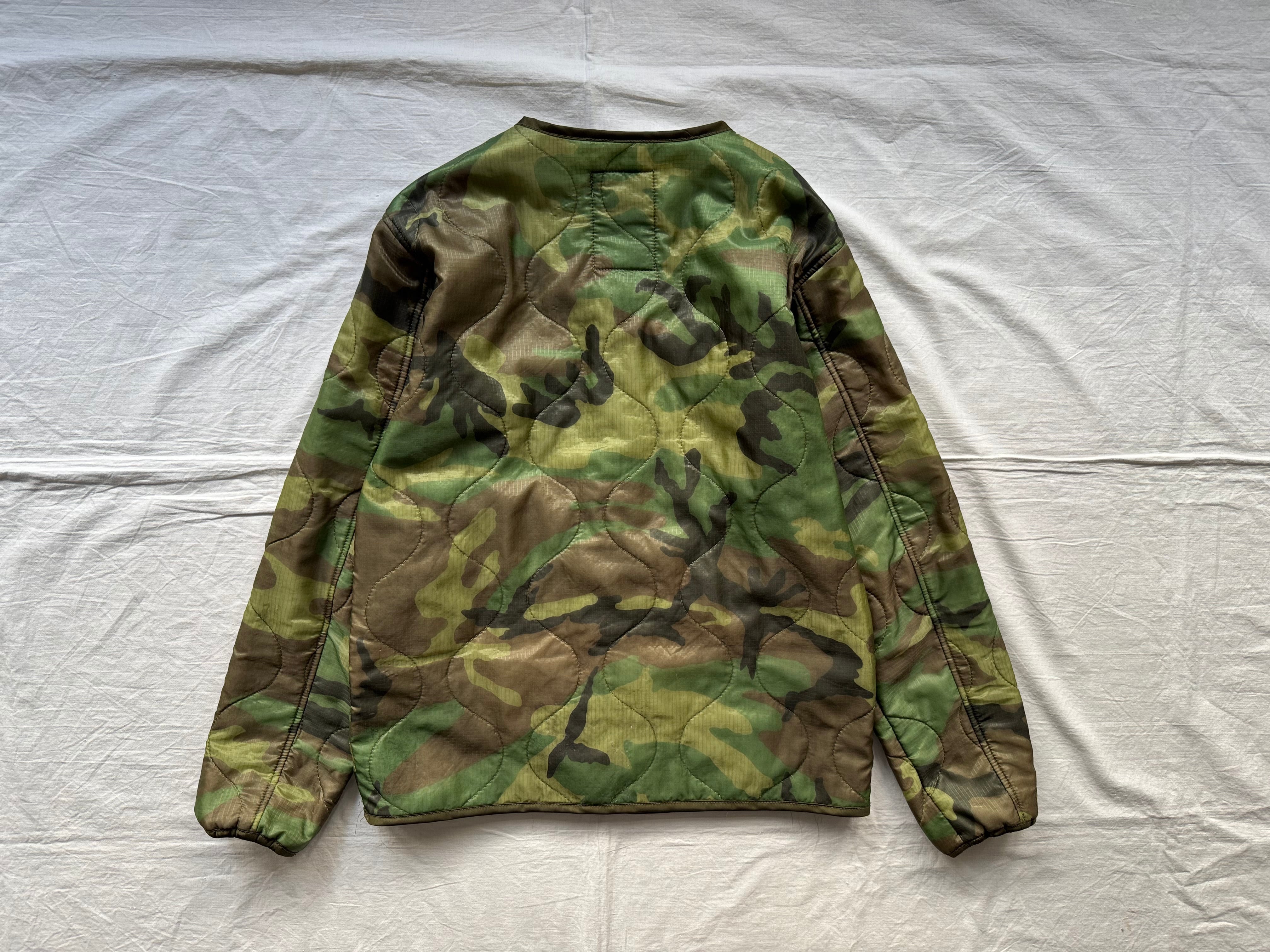 ボディには、2000年代頃に米軍へ納入された実物のポンチョライナーを使用。パイピングやボタンまで、すべてがミルスペックに準拠した本物のパーツで構成された、純粋な軍用素材ならではの佇まいが魅力です。