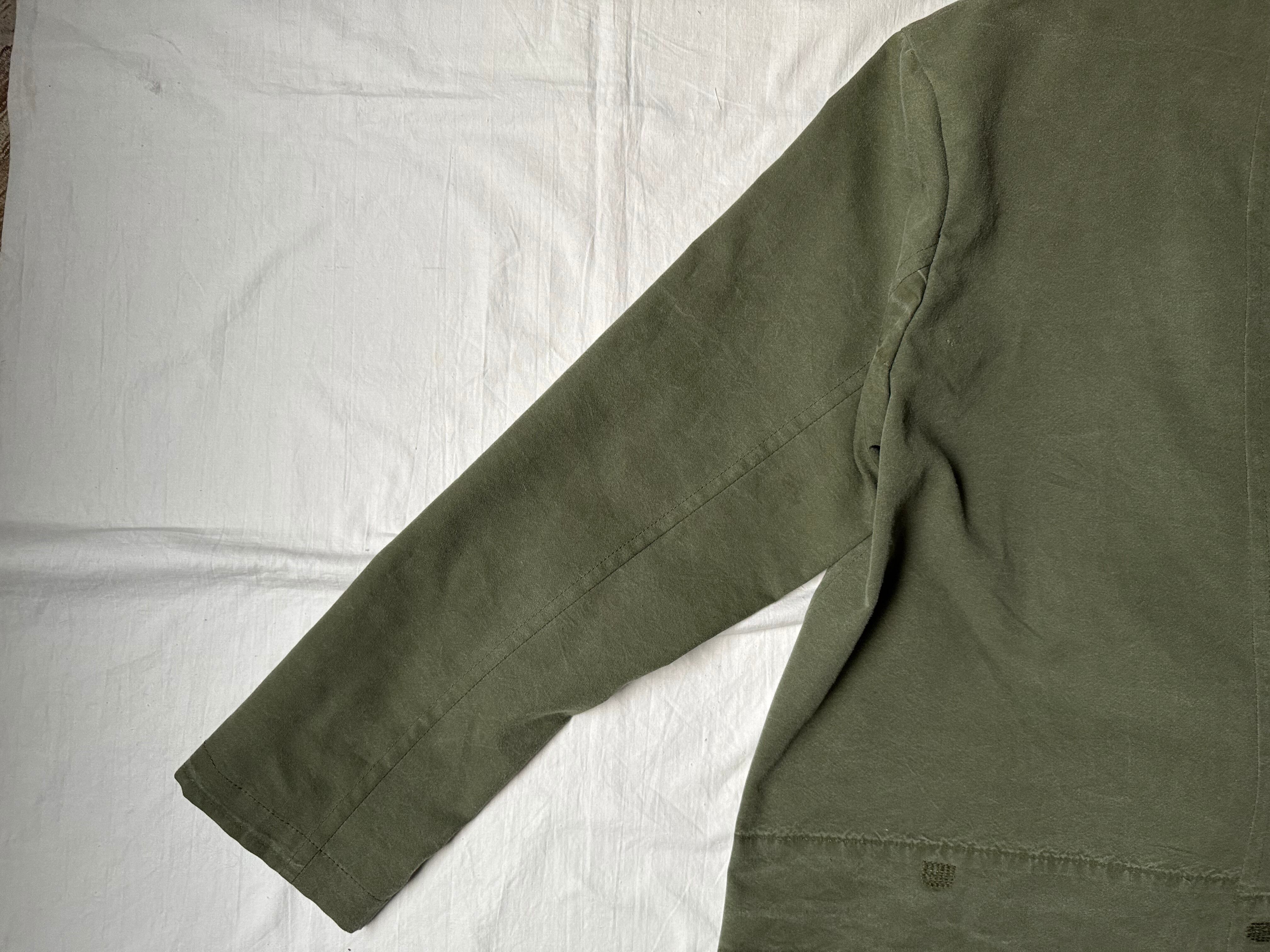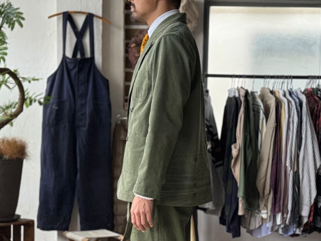 ミリタリー由来の深い色味は、着るほどにシワやアタリが育ち、自分だけの表情へと変化していきます。ヴィンテージ好きにはたまらない“育てる楽しみ”を存分に味わえる素材です。