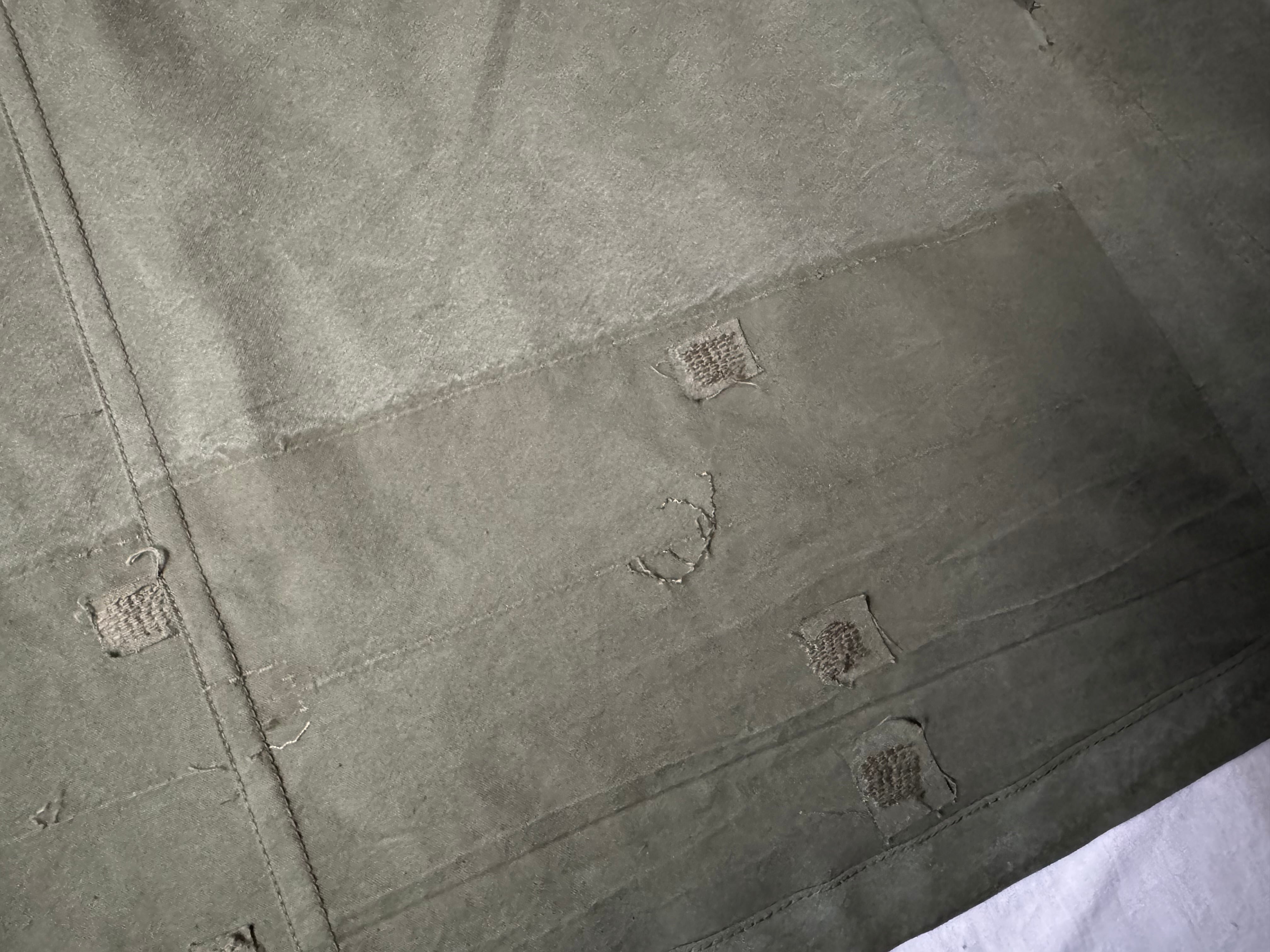 できるだけダメージ部分は避けるようにはしますが、全てヴィンテージ生地を使用しますので、縫製跡、また傷や擦れなどによるダメージ、色褪せ、補修跡などが、どうしてもついてしまう場合がございます。(画像15)