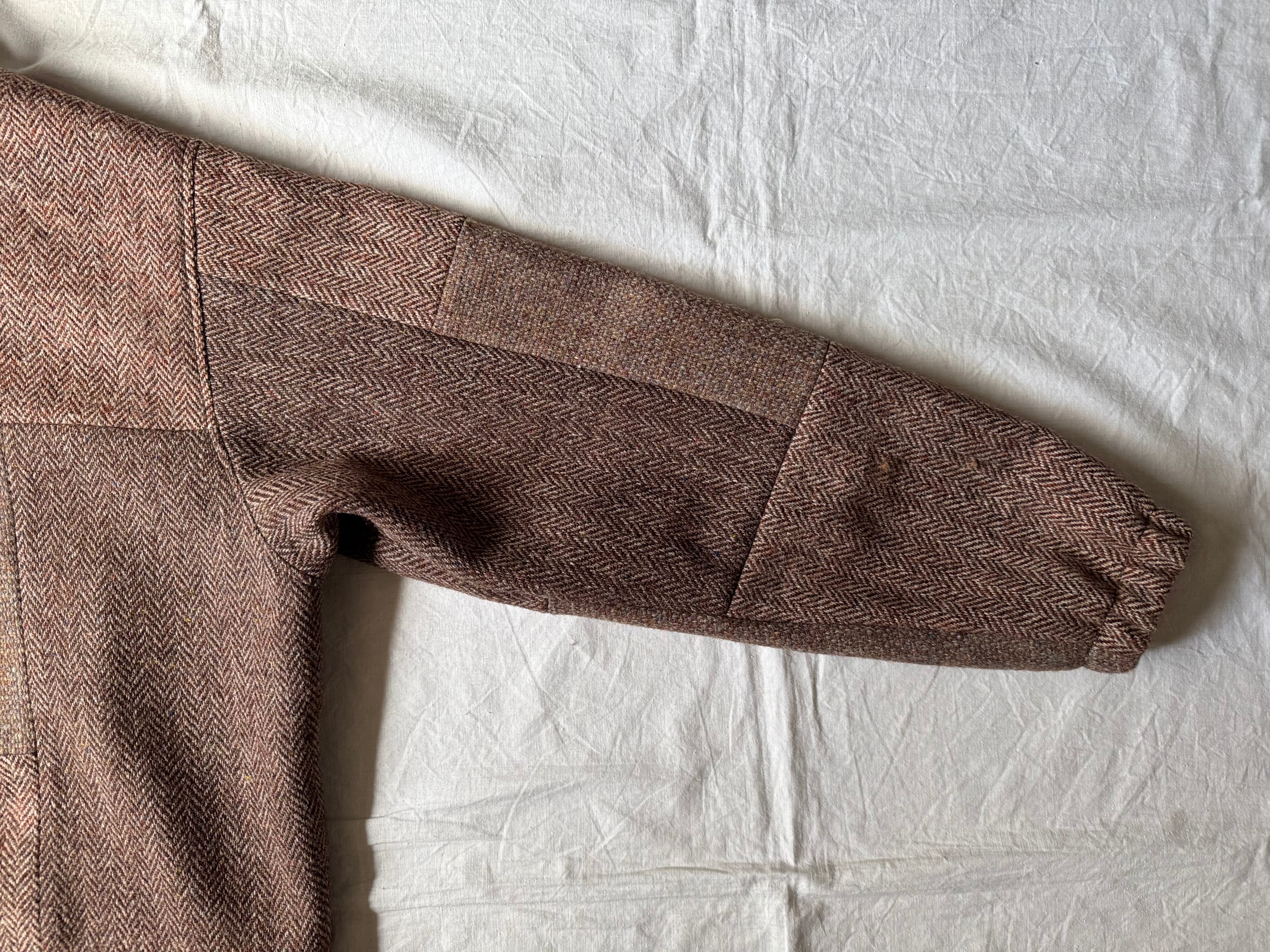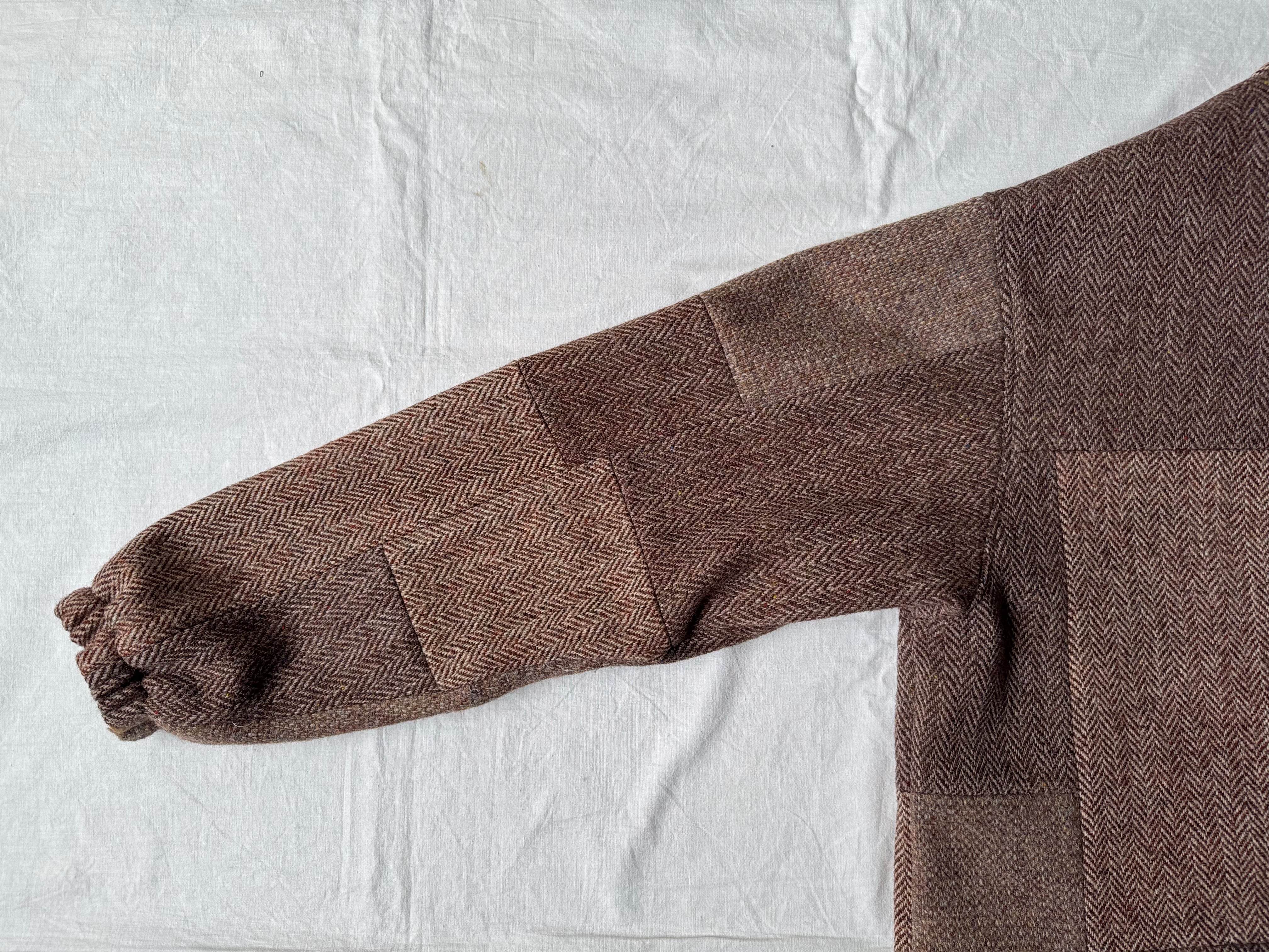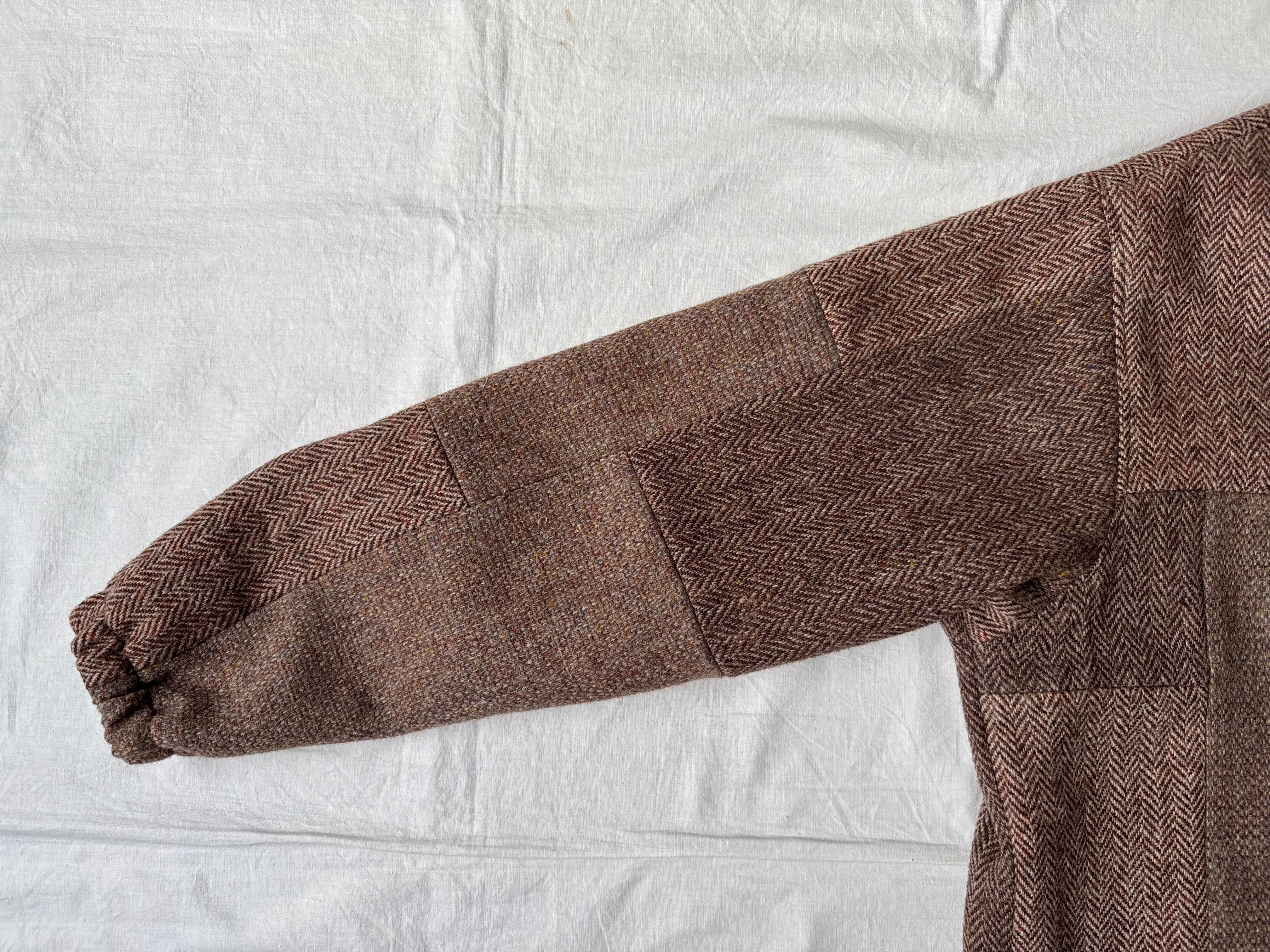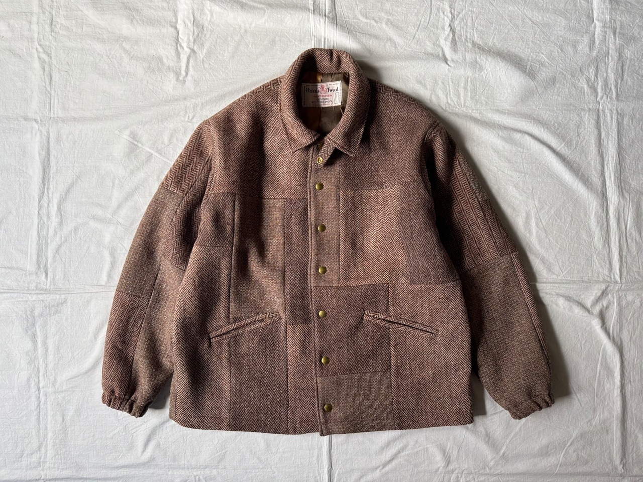 70〜80年代のハリスツイードのテーラードジャケットを3着解体し、それぞれの生地を厳選してつなぎ合わせた、一点物のコーチジャケット。