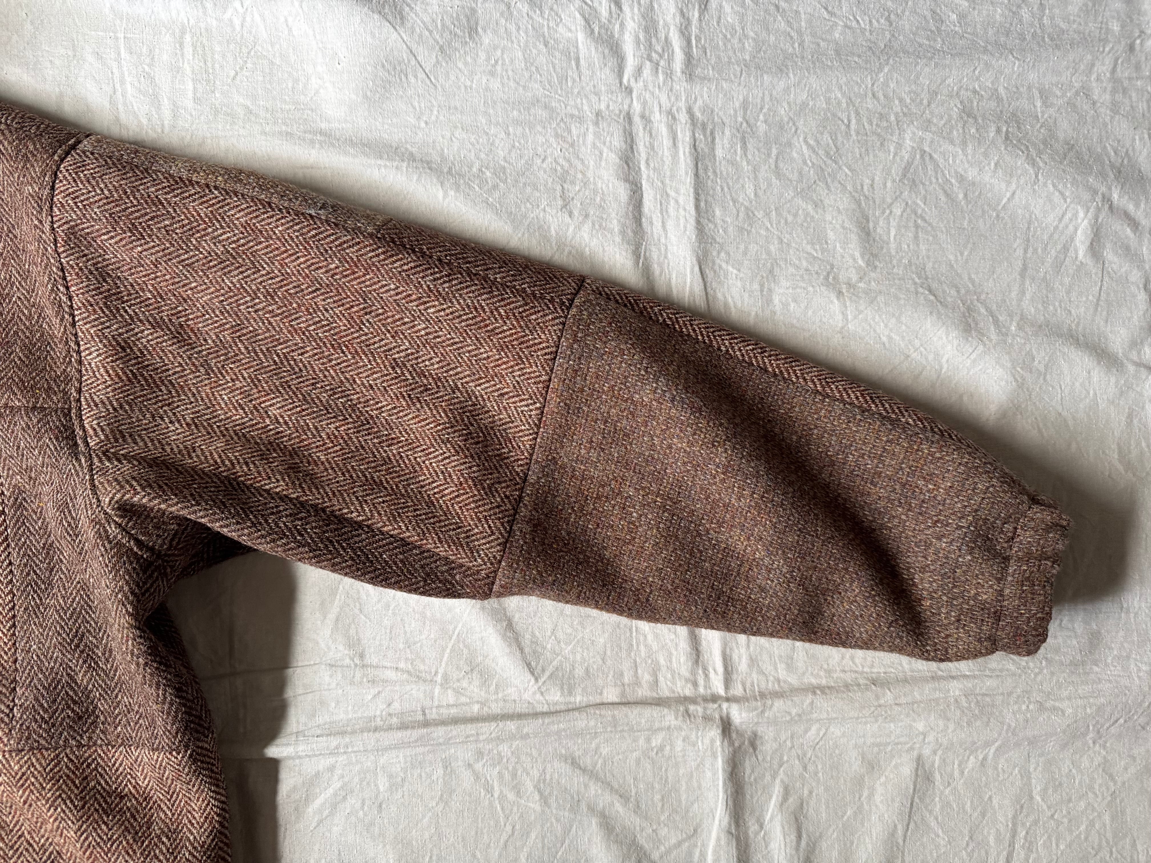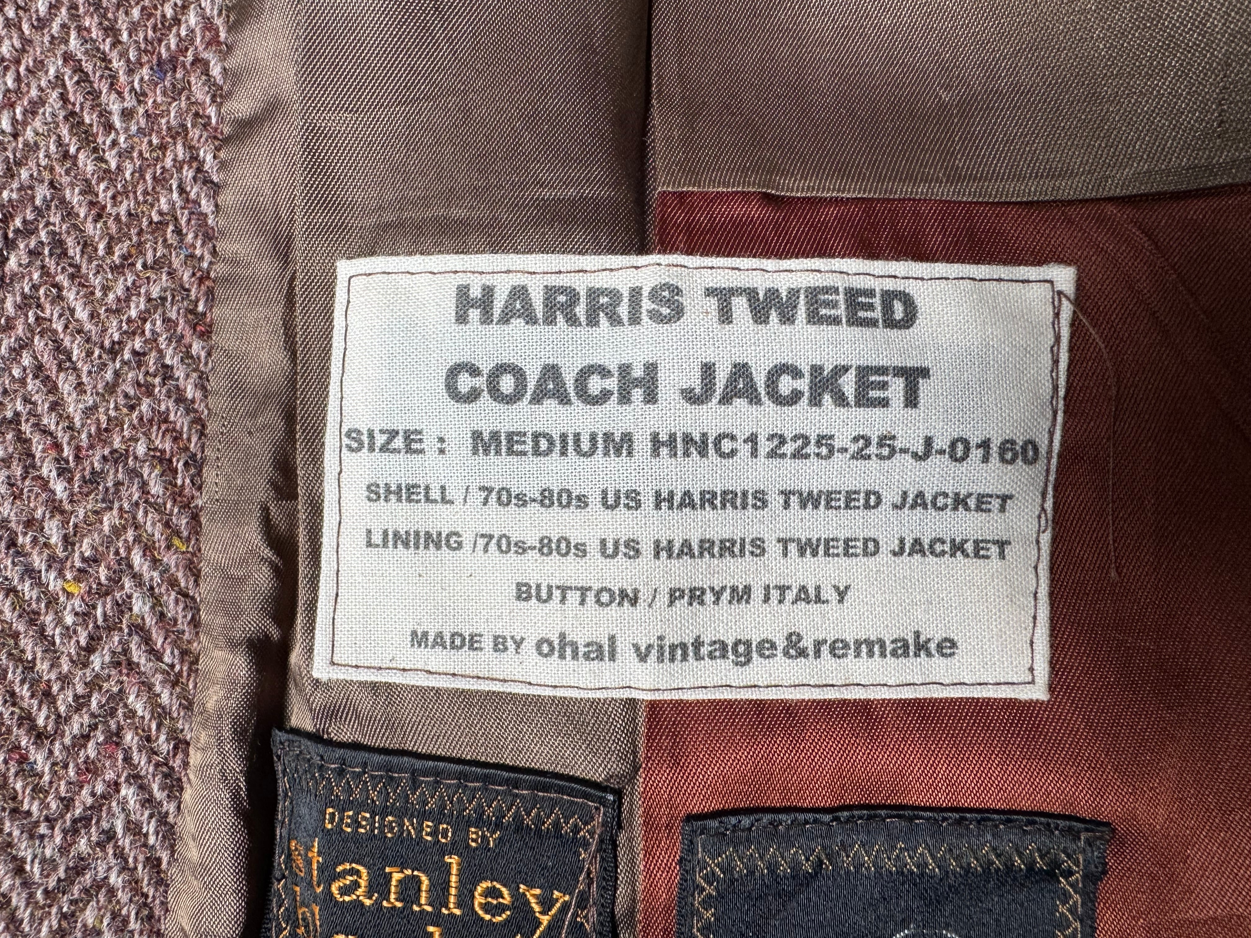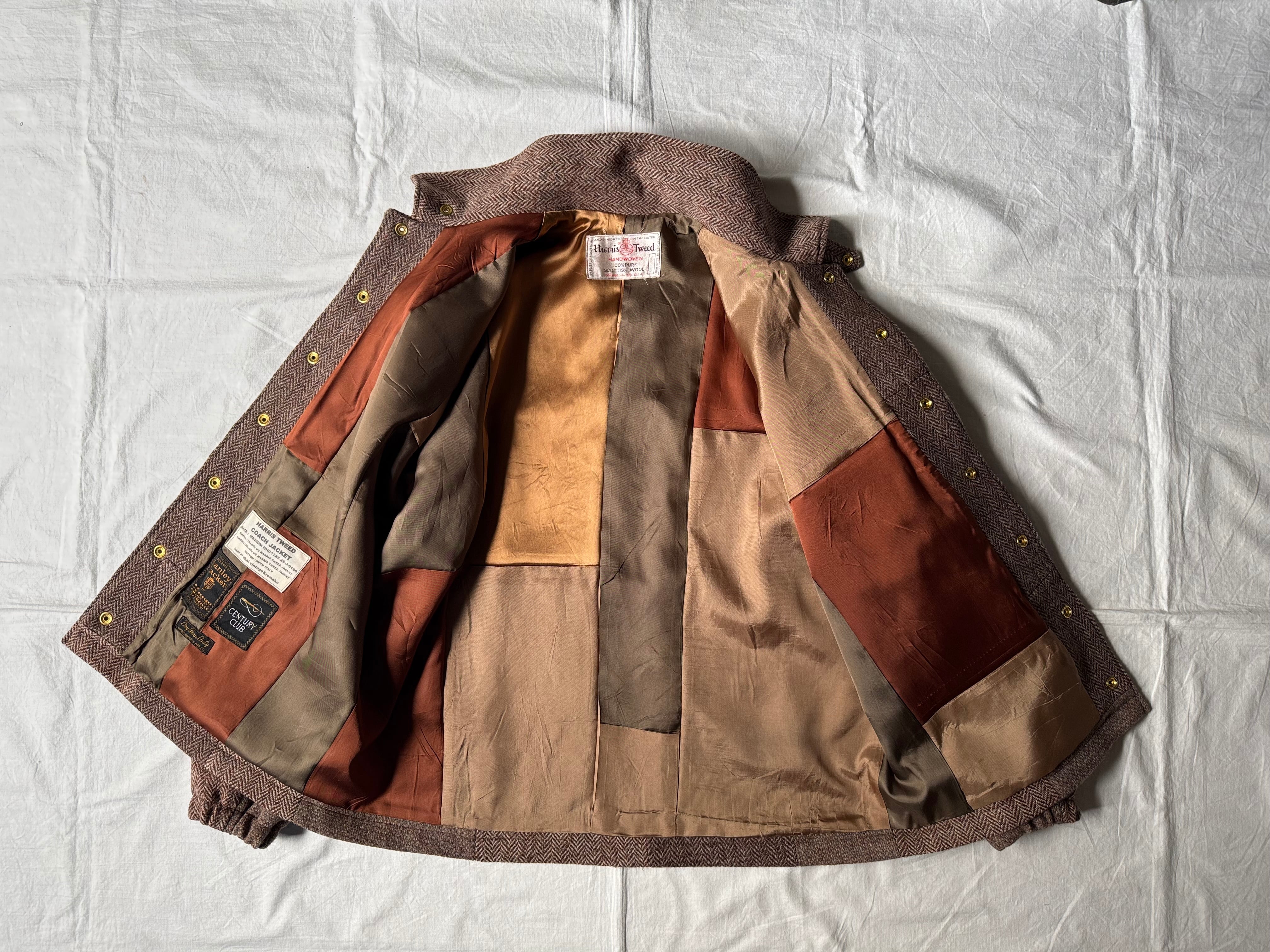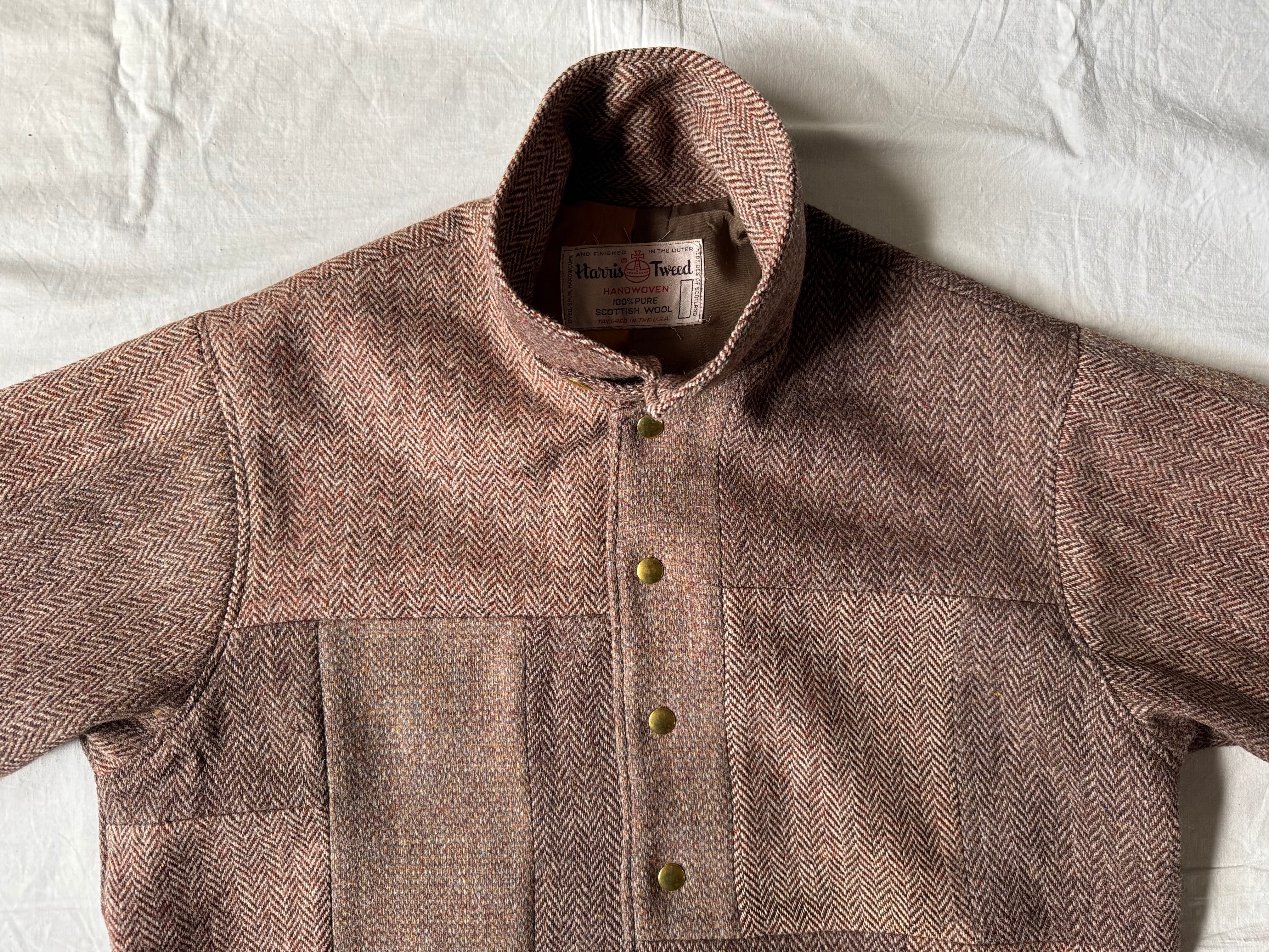 70〜80年代のハリスツイードのテーラードジャケットを3着解体し、それぞれの生地を厳選してつなぎ合わせた、一点物のコーチジャケット。
