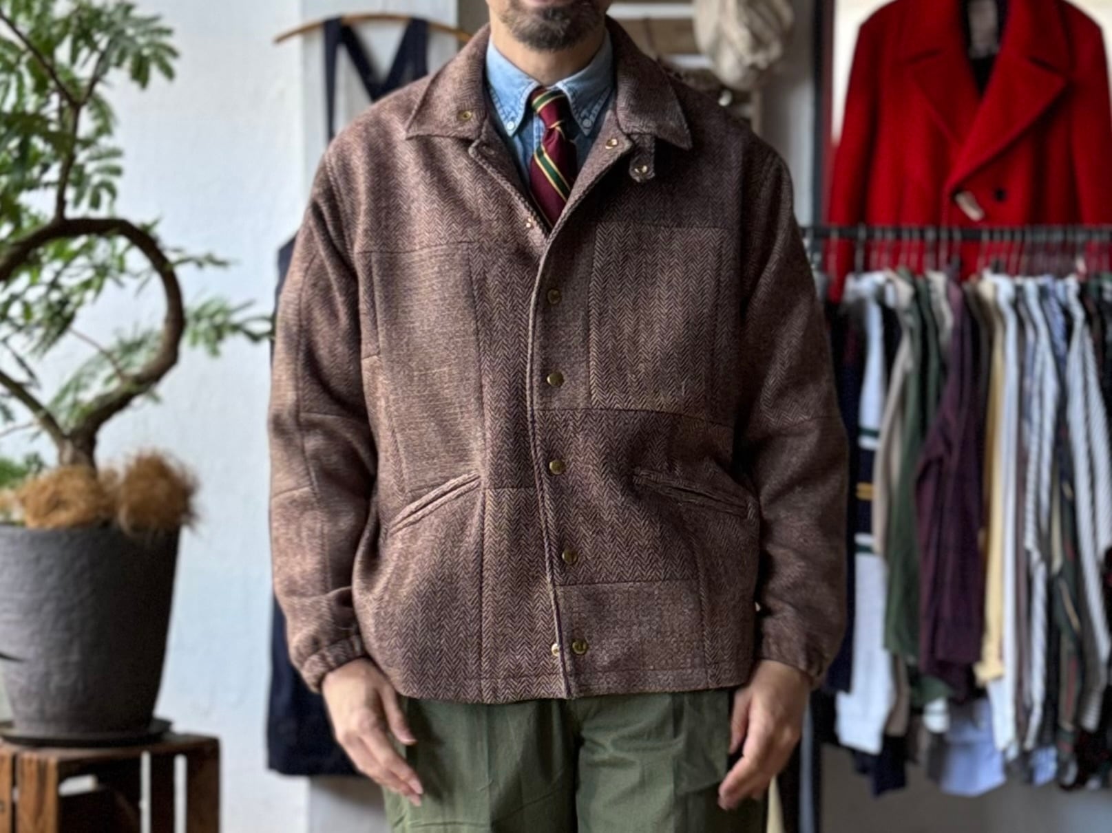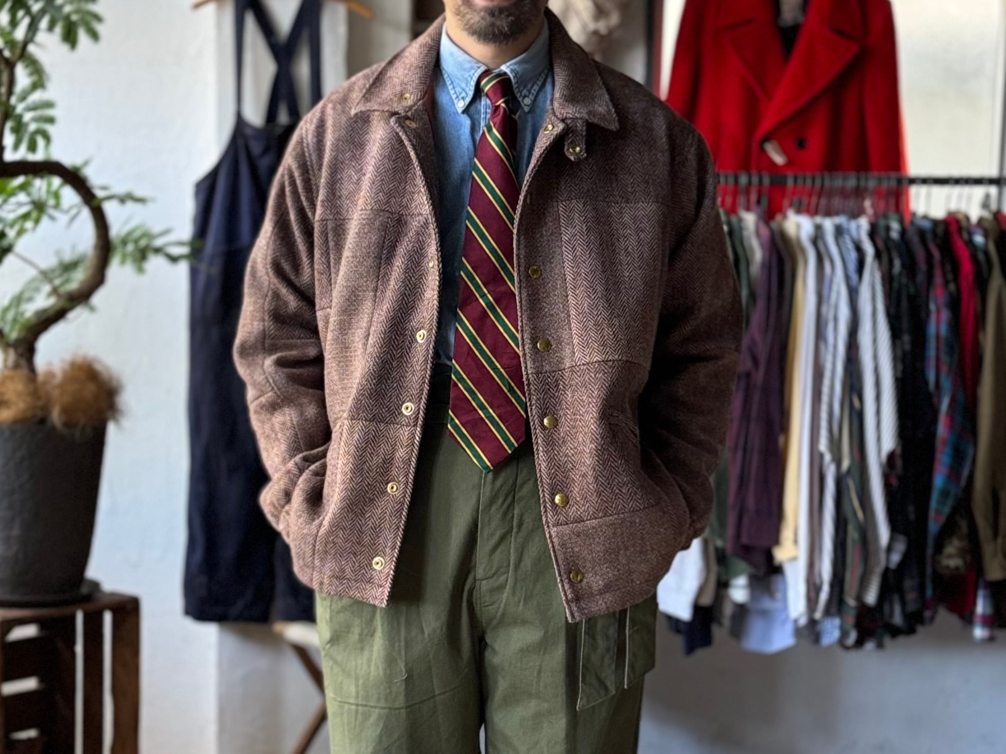 ヴィンテージでしか表現できない生地の表情と、ハリのあるハリスツイードが生み出す立体的なシルエット。