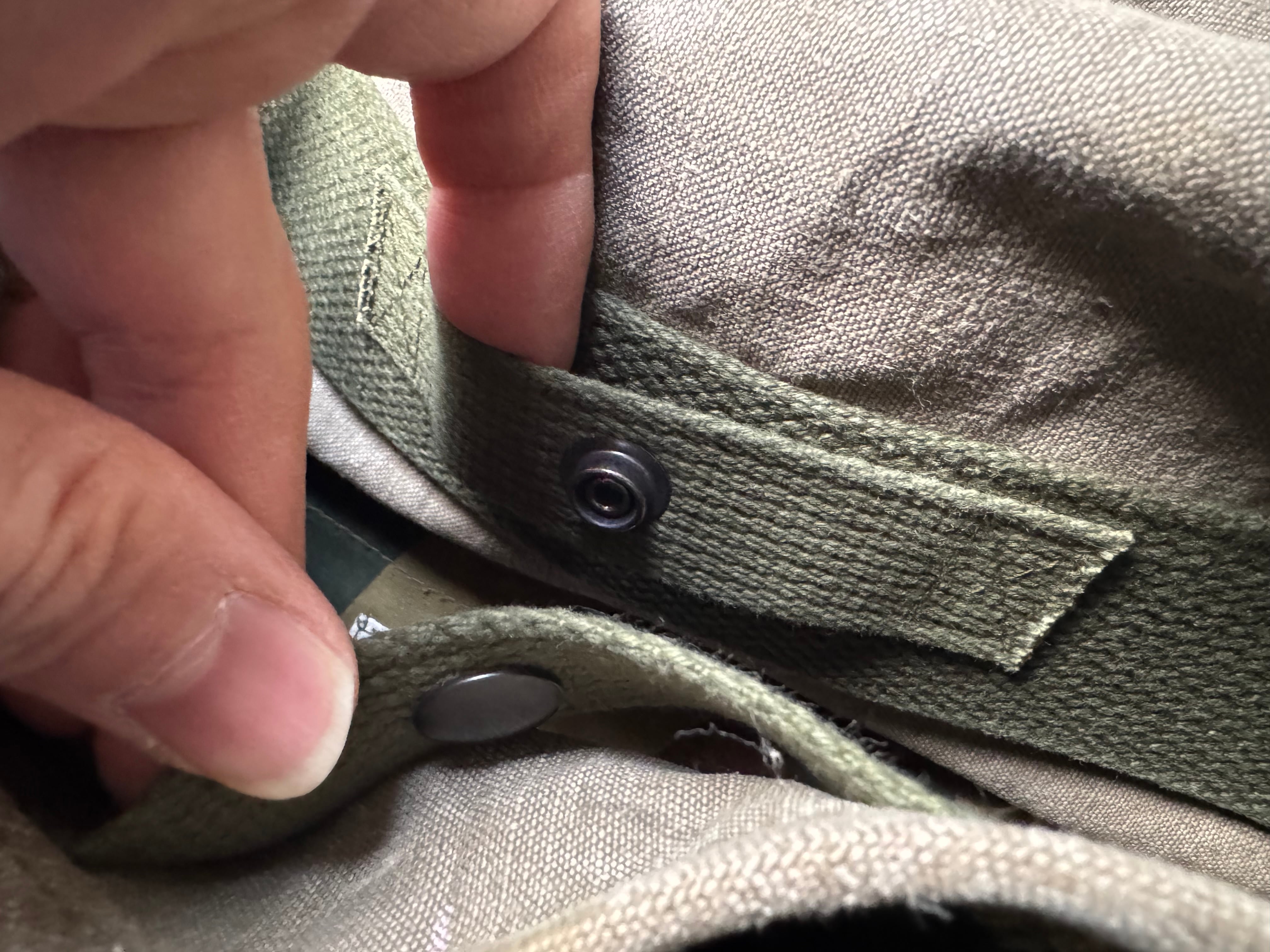 開口部を留めるボタンは、70年代・SCOVILL社が米軍に納入したデッドストックDOTボタン を採用。
