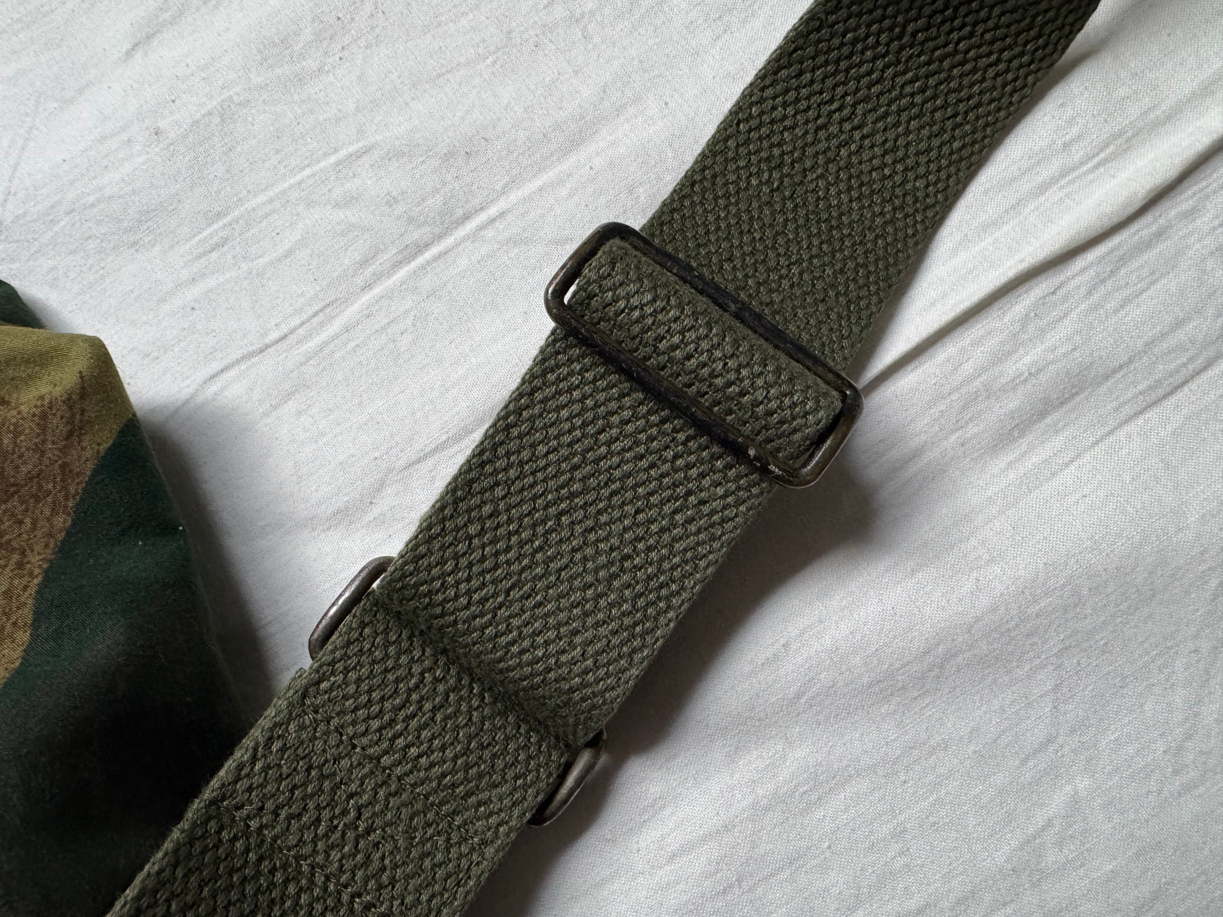 ショルダーベルトのアジャスターはフランス軍のダッフルバッグ。