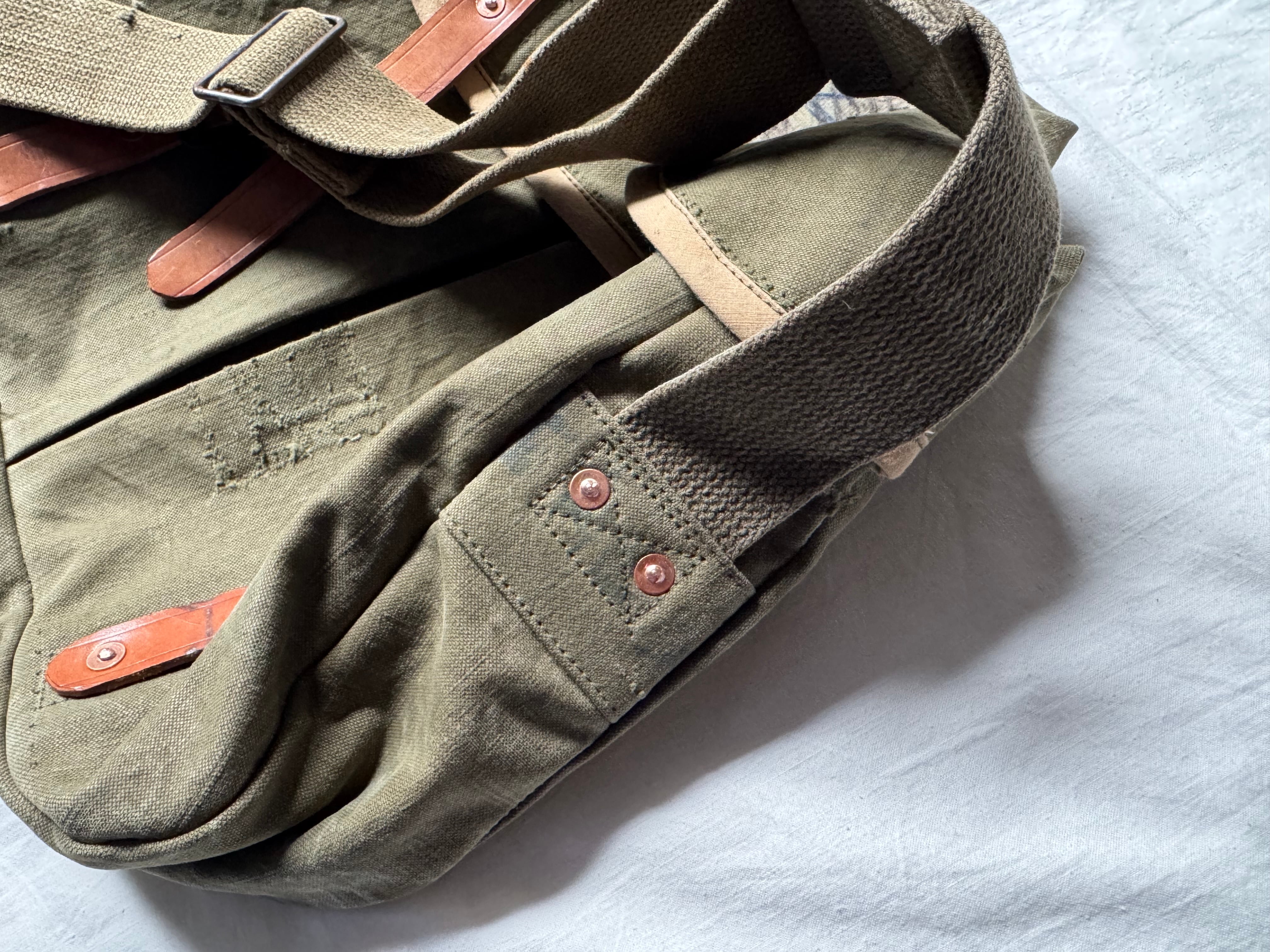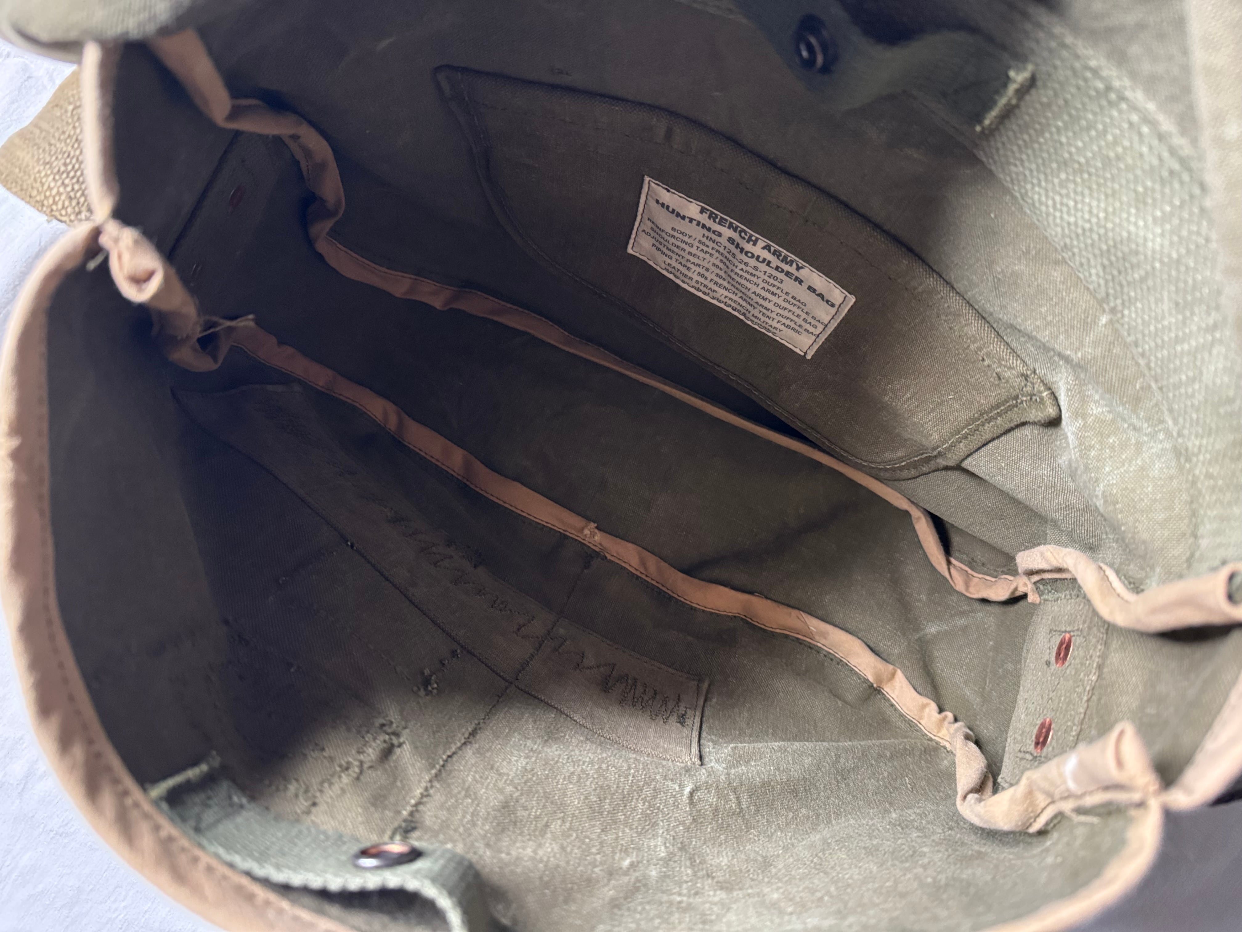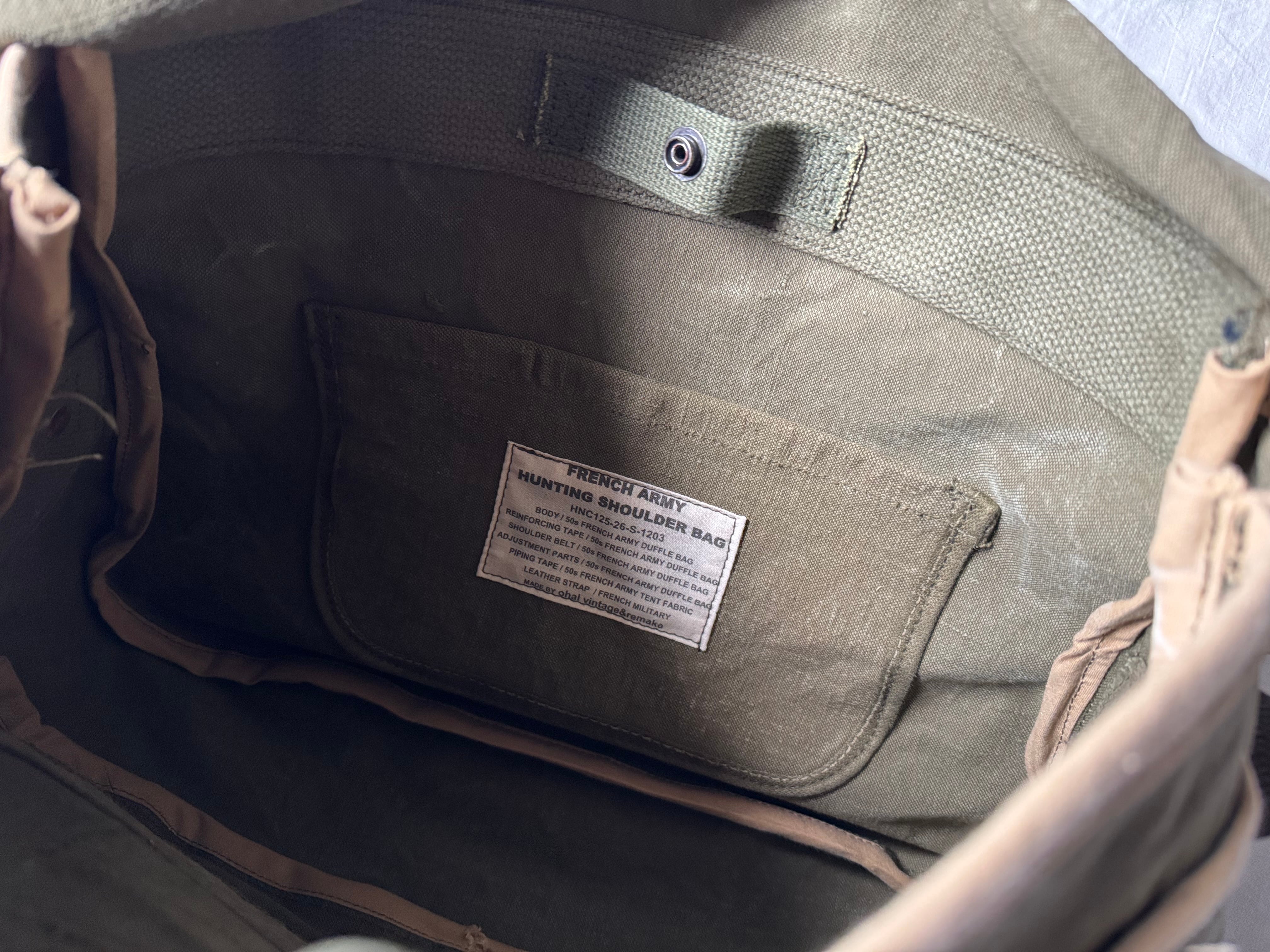1950年代にフランス軍で使用されていたリネン混のキャンバスダッフルバッグ。そのダッフルバッグを丁寧に解体し、ハンティングバッグとして再構築しました。
