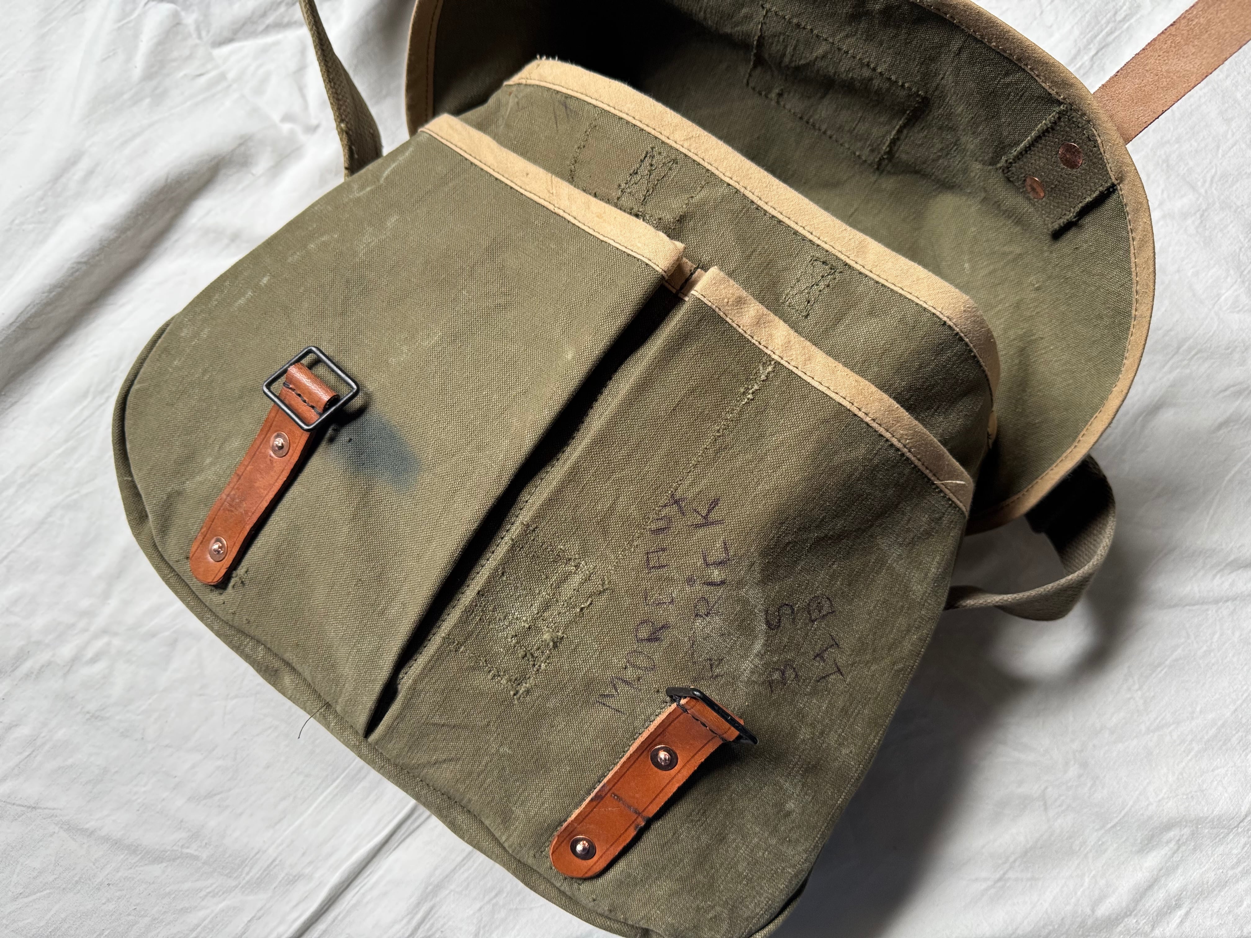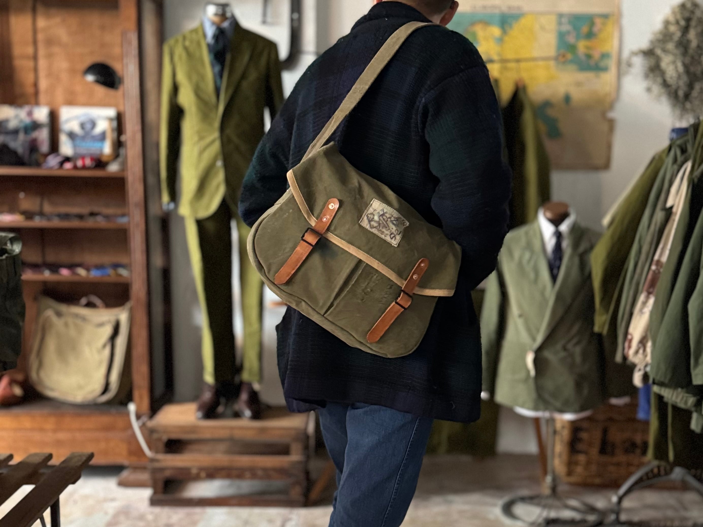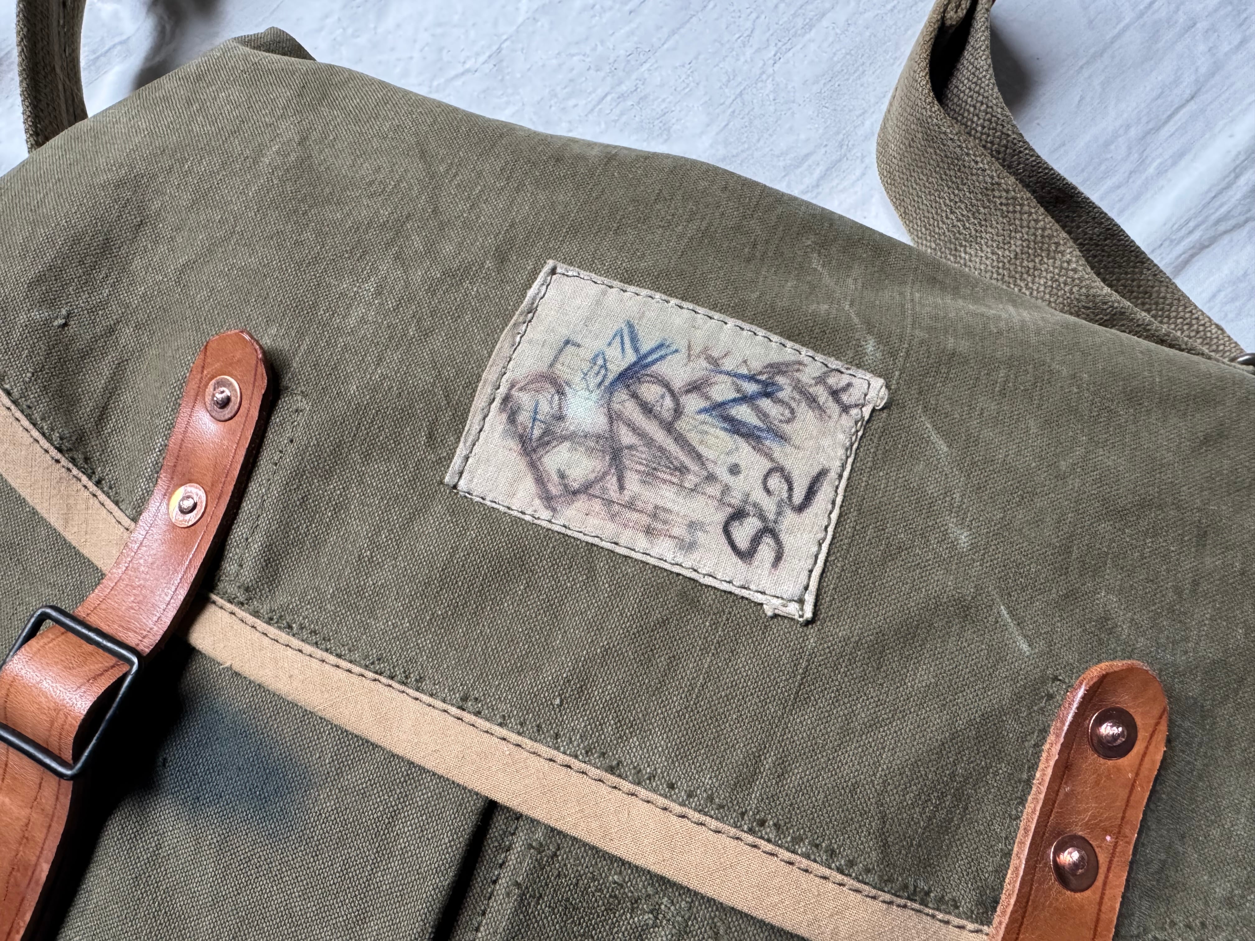 1950年代にフランス軍で使用されていたリネン混のキャンバスダッフルバッグ。そのダッフルバッグを丁寧に解体し、ハンティングバッグとして再構築しました。