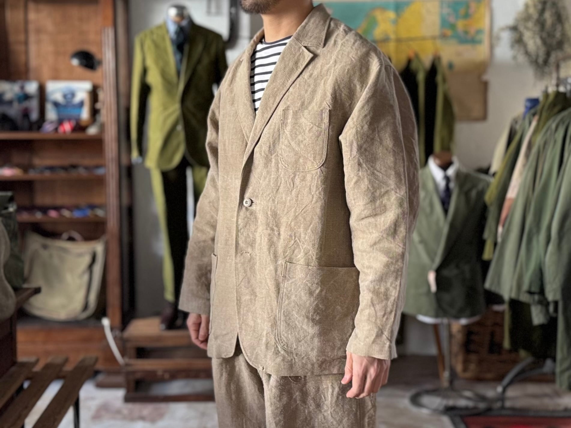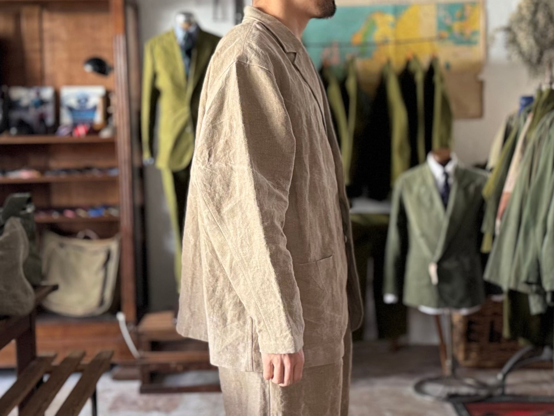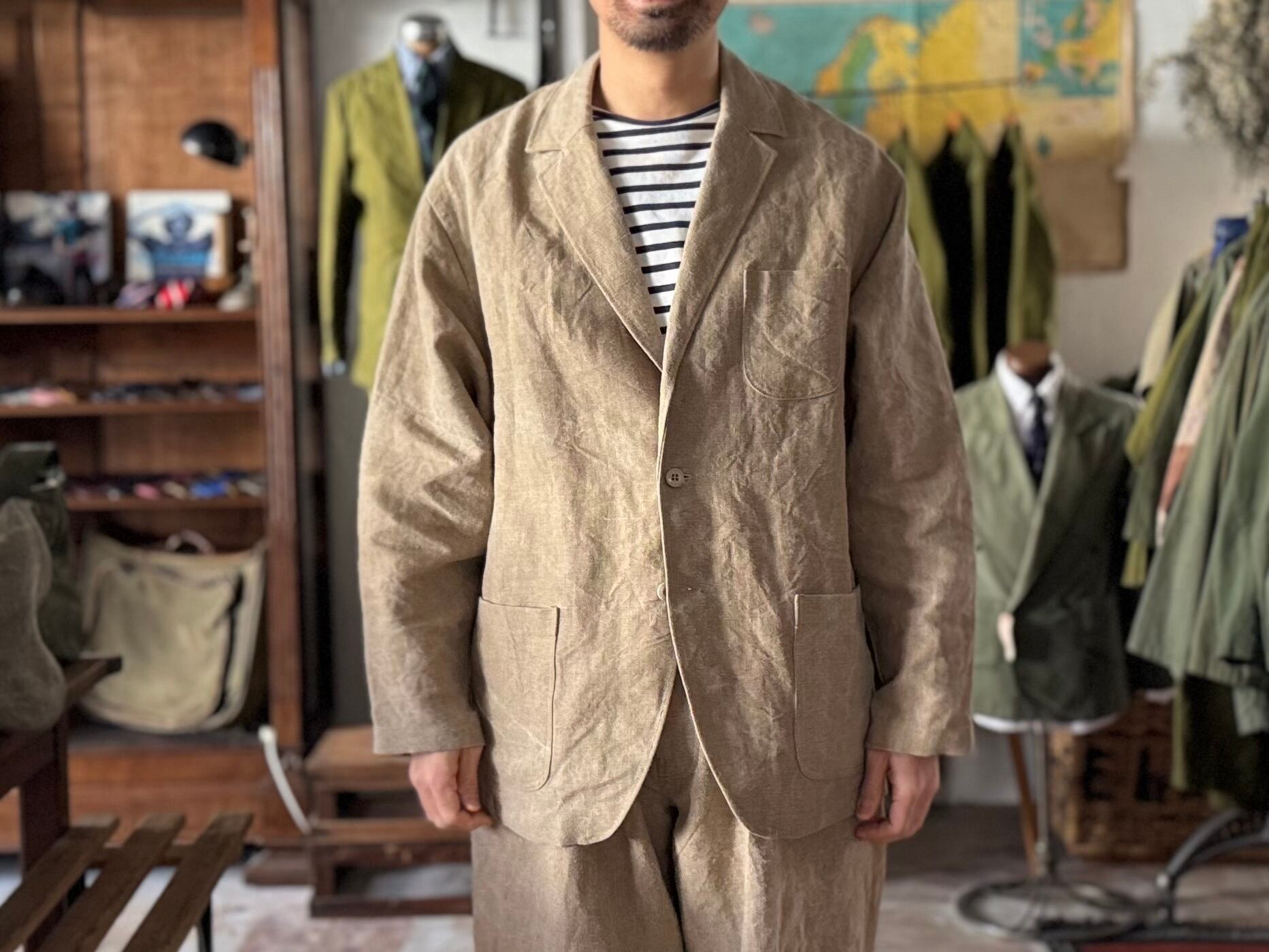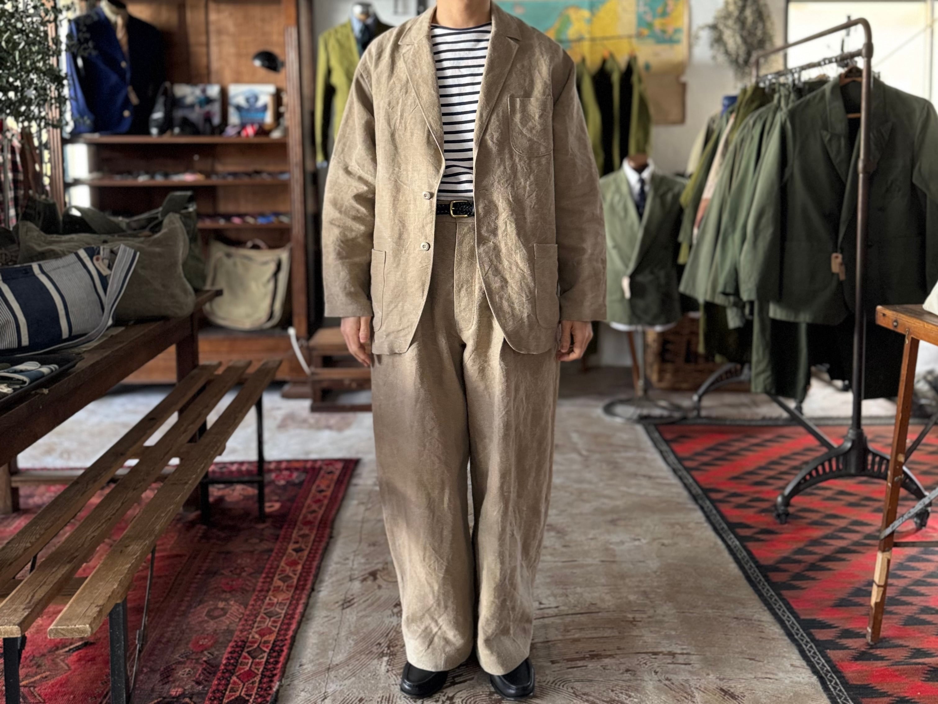 ゆったりとしたサイズ感で、リラックス感がありながらも、どこかクラシックなキチンとした感じも残しています。