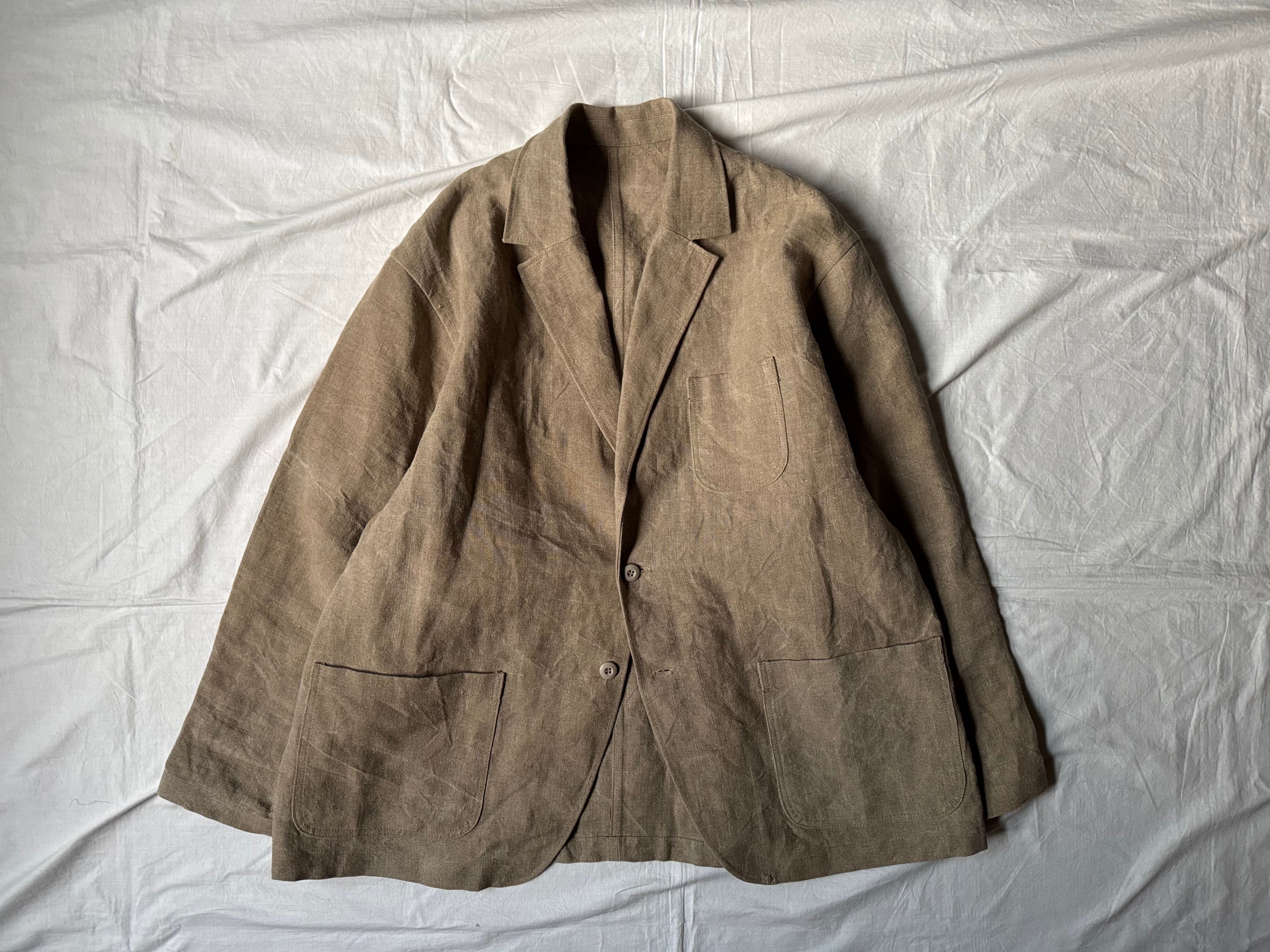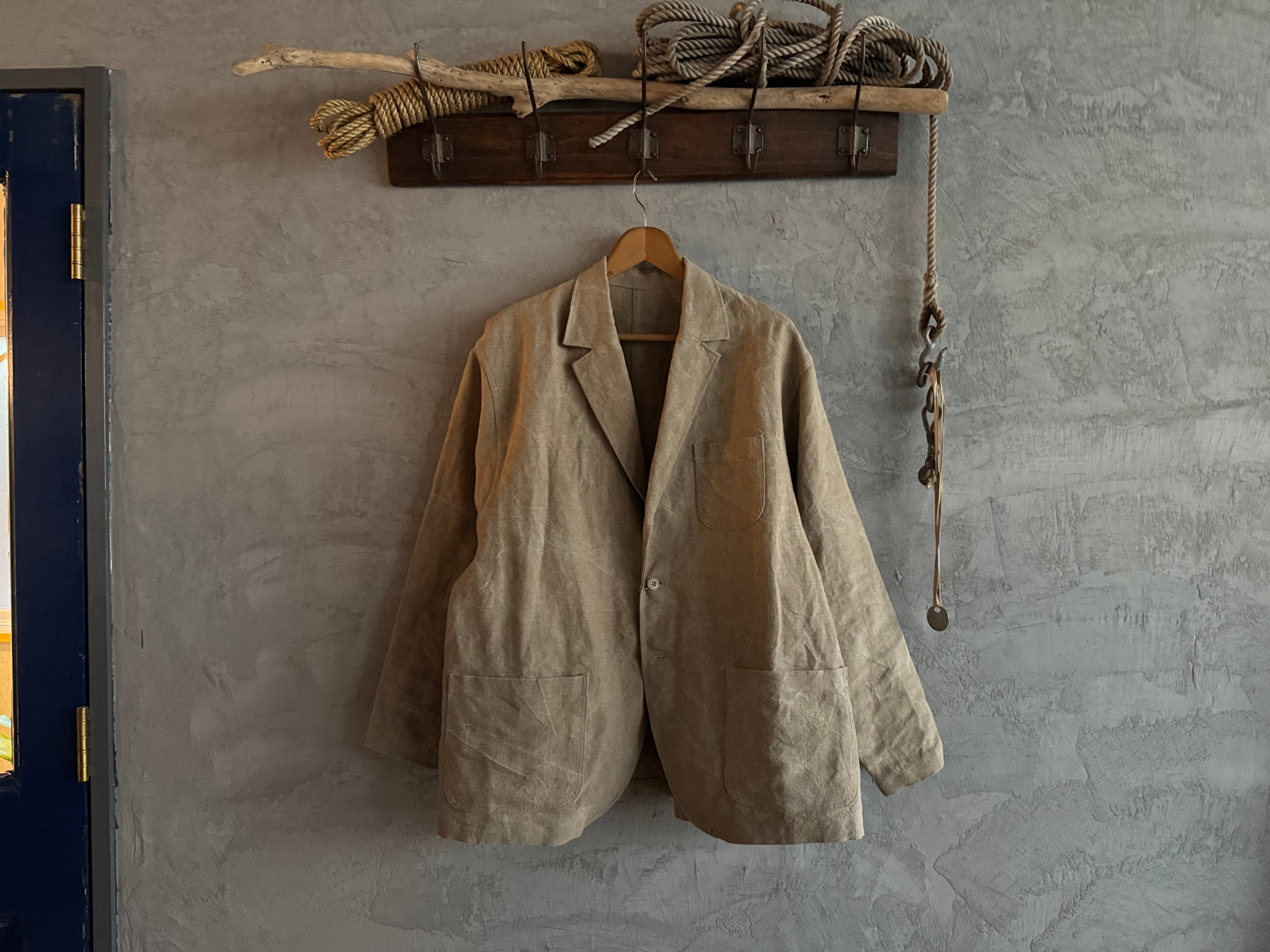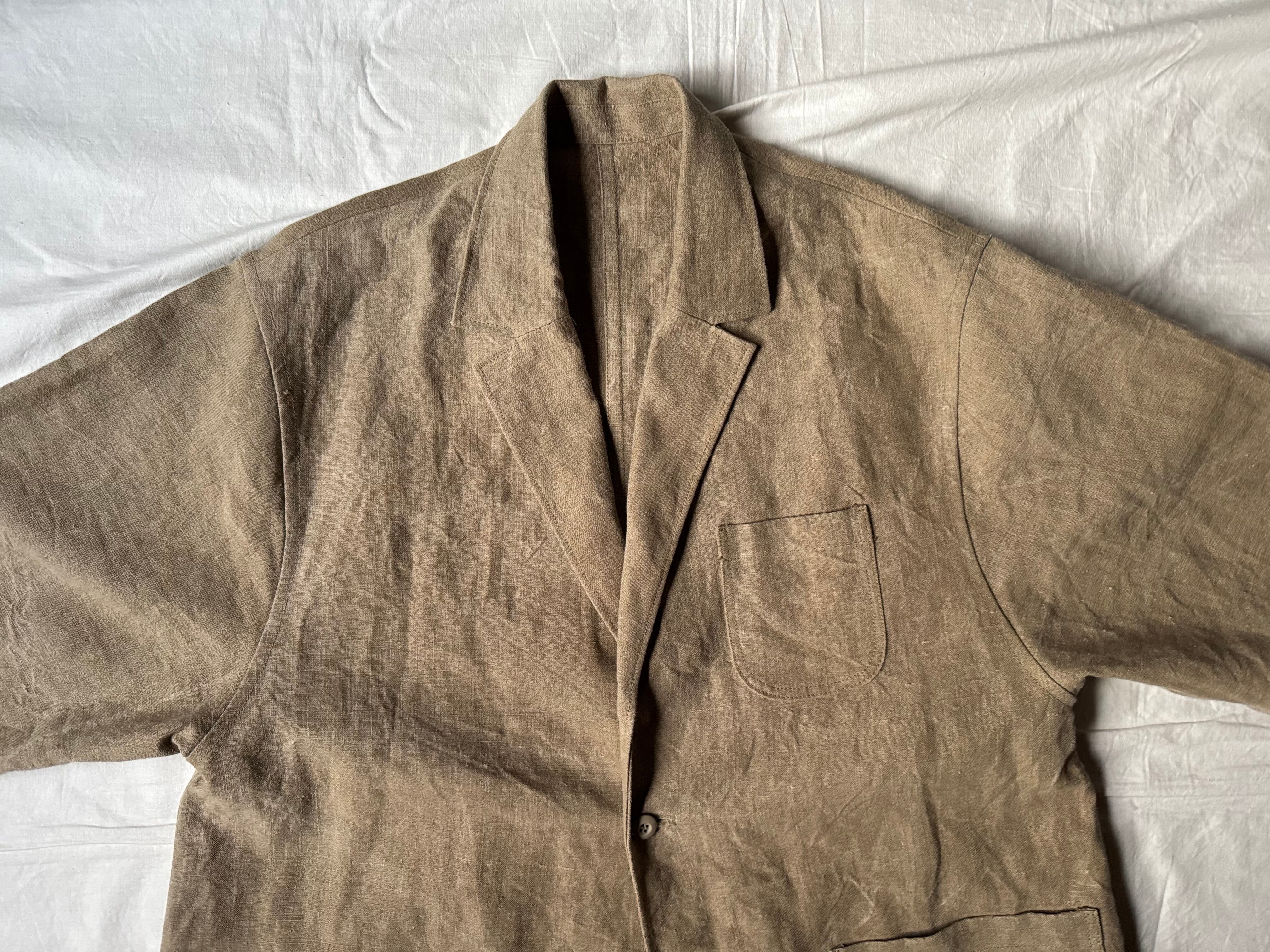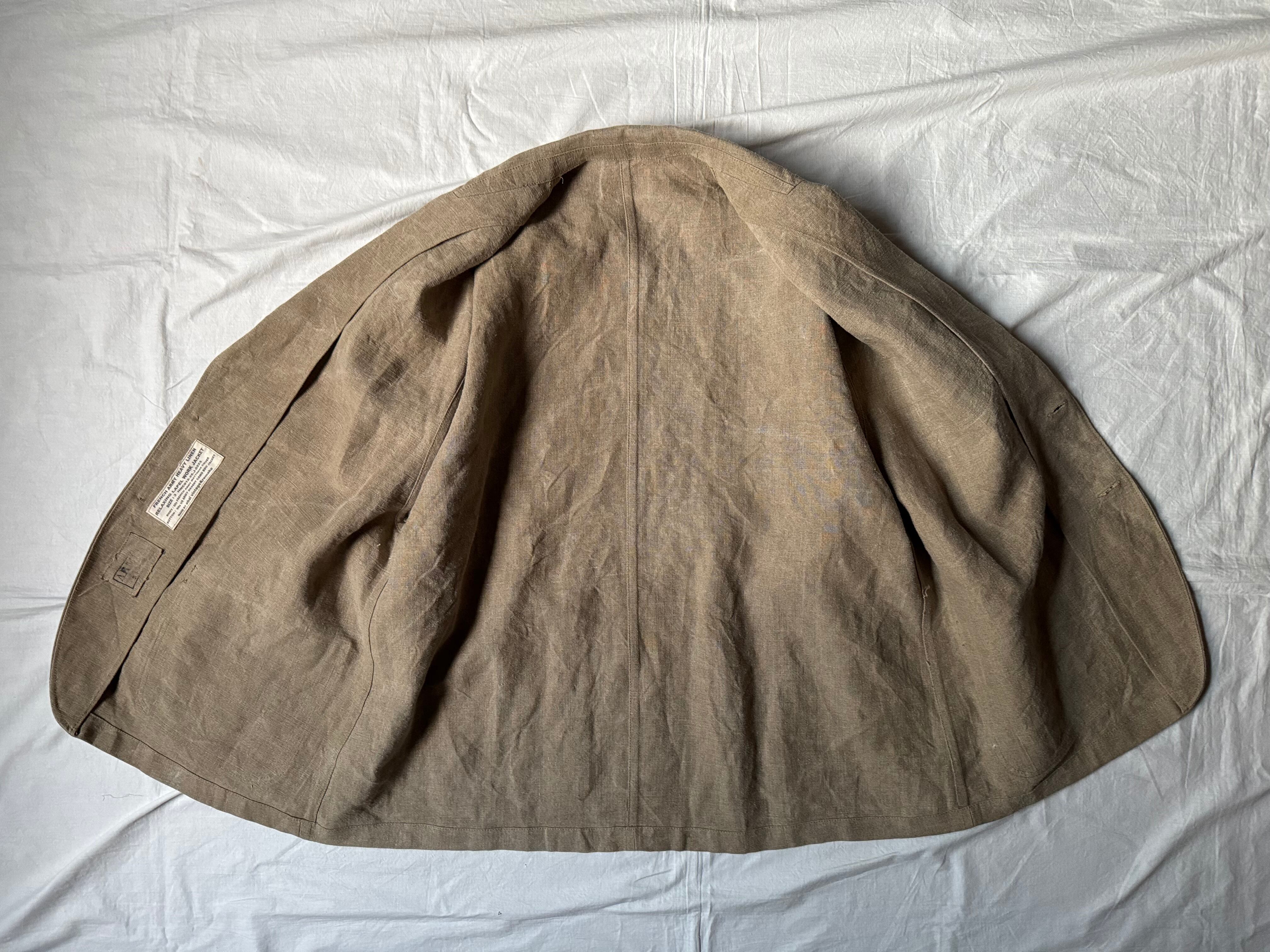 ohal / FRENCH ARMY HEAVY LINEN RELAXING LAPEL WORK JACKET