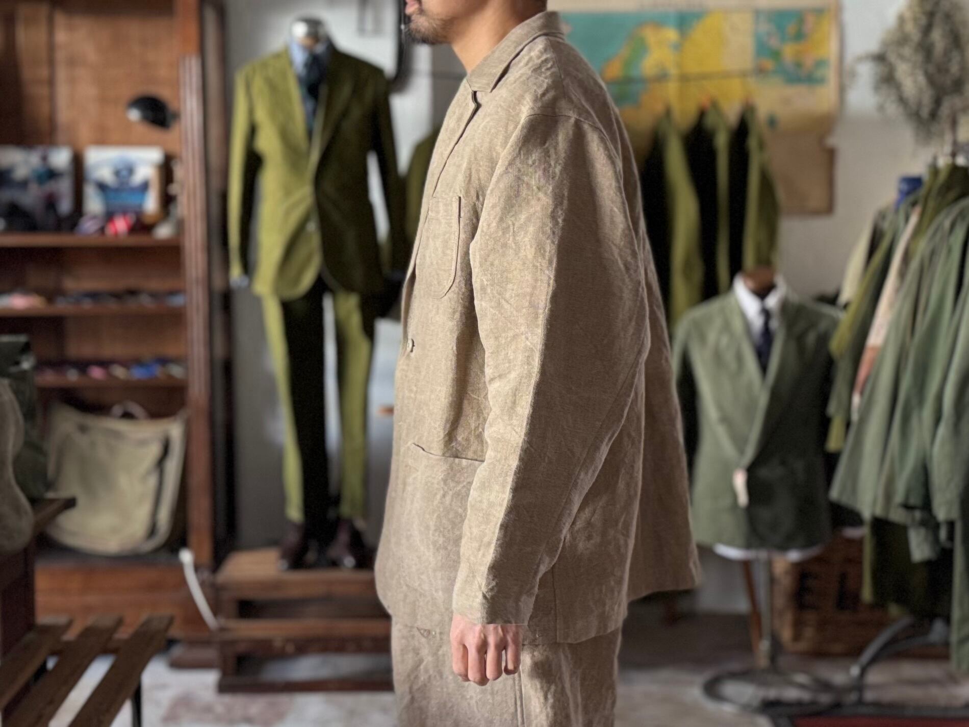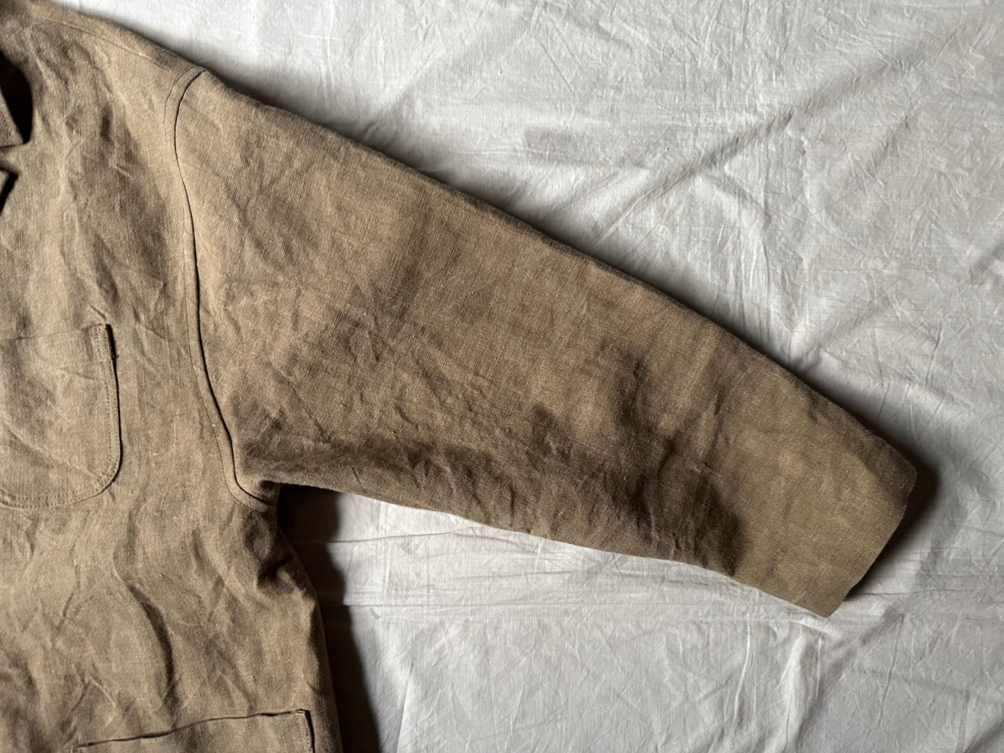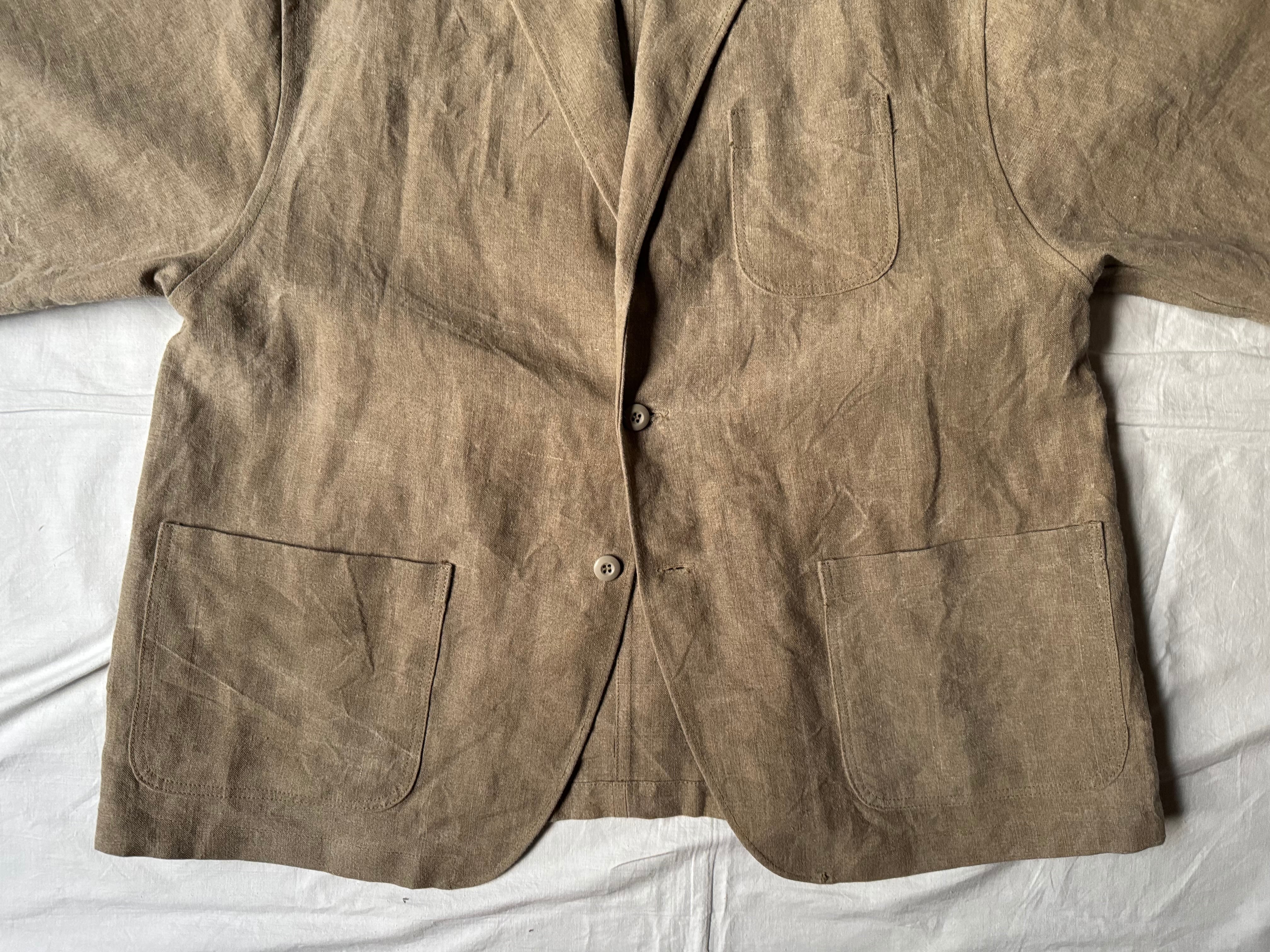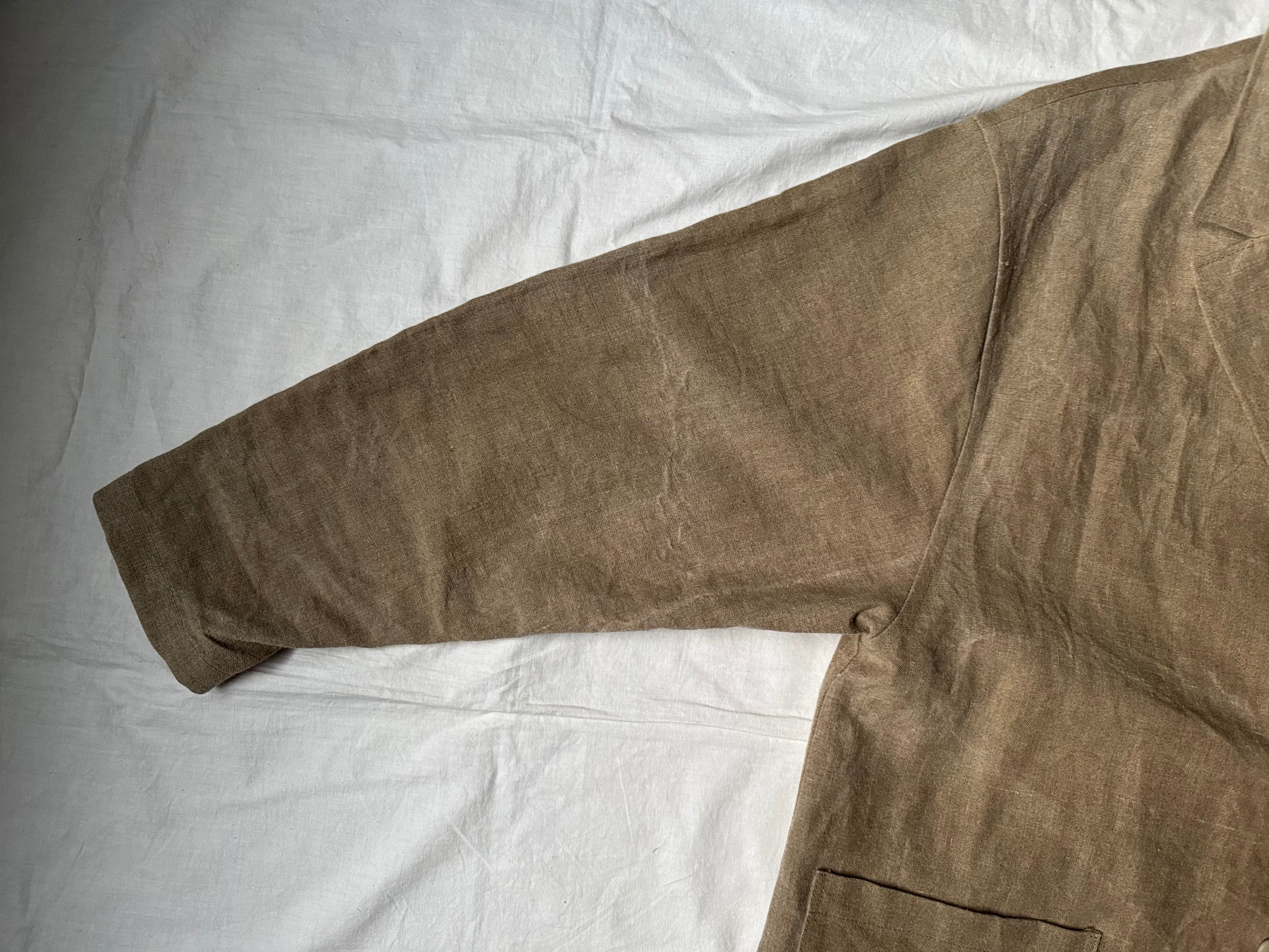 ohal / FRENCH ARMY HEAVY LINEN RELAXING LAPEL WORK JACKET