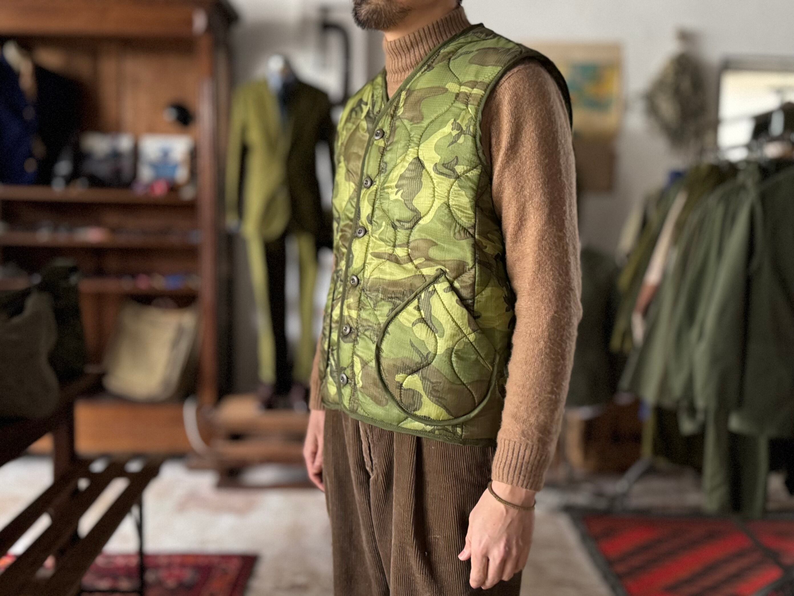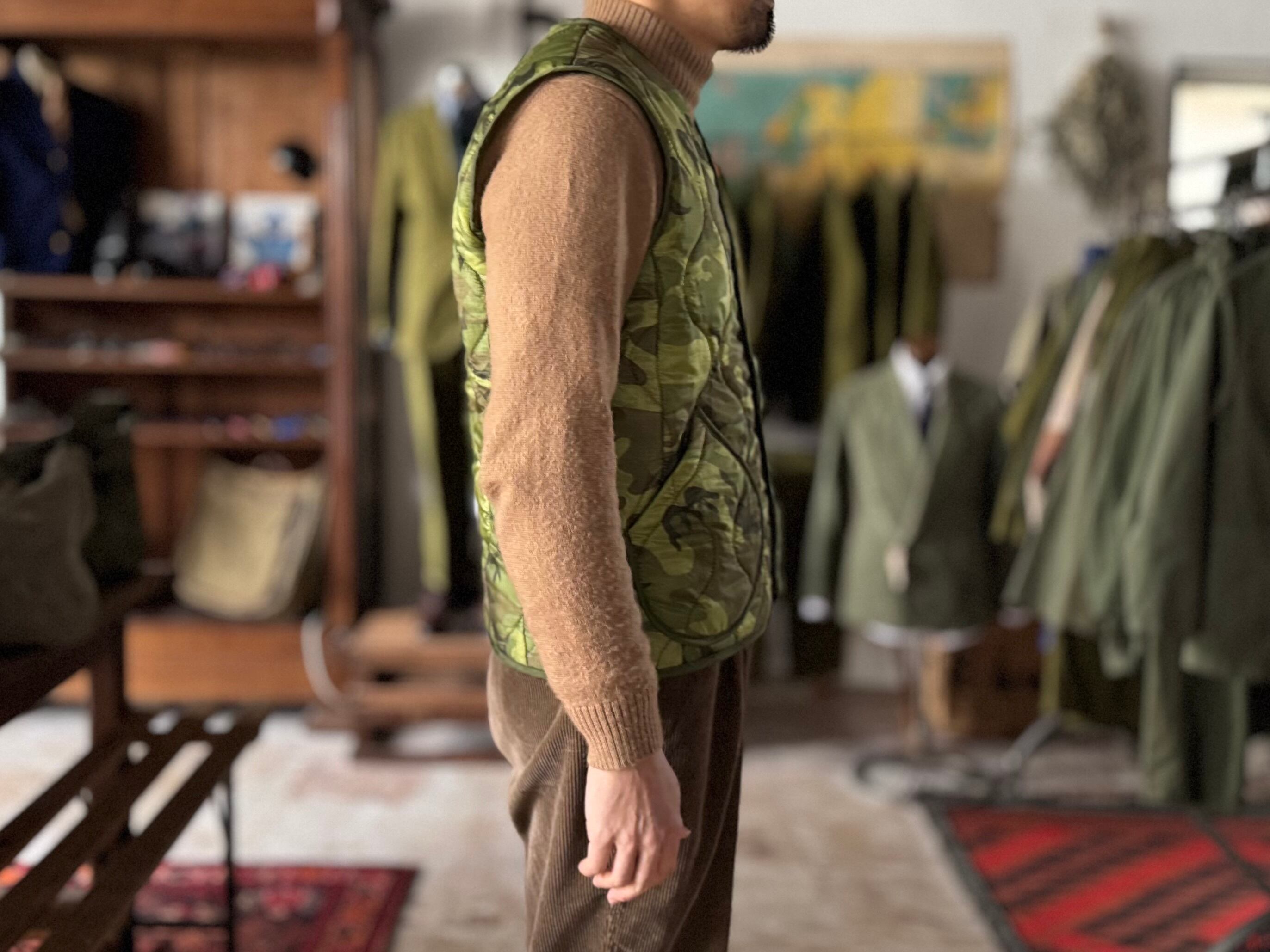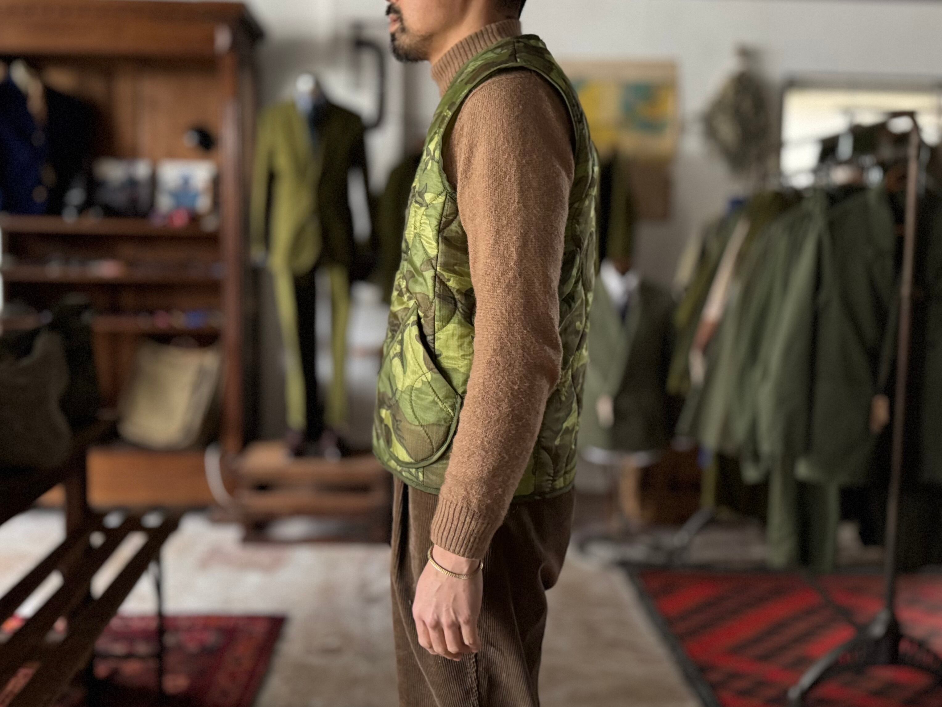 アメリカ軍で実際に使用されていたキルティング生地をベースに、インナーベストとして再構築しました。
