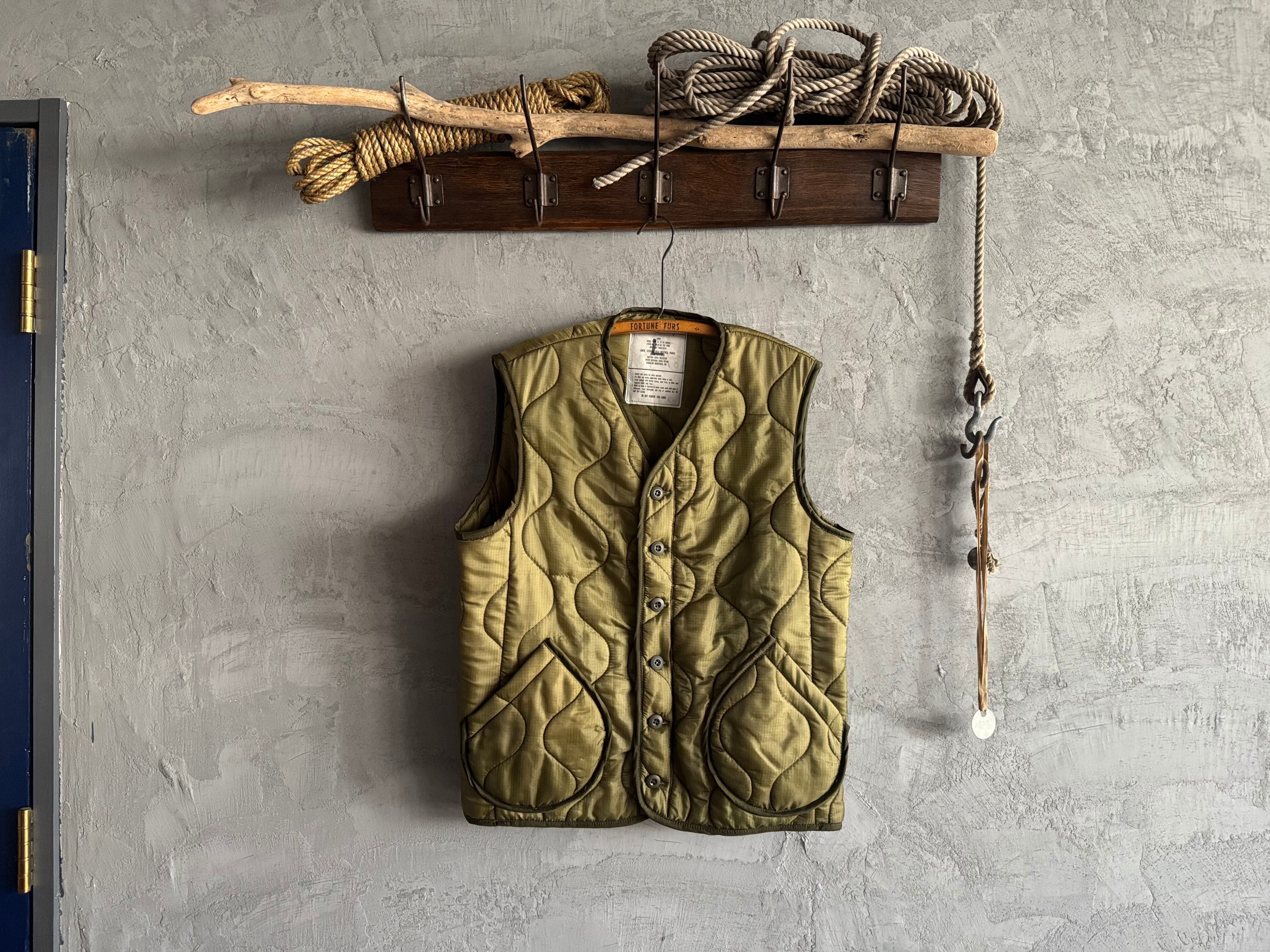 アメリカ軍で使用されていたキルティングライナー生地を元に、インナーベストとして再構築しました。