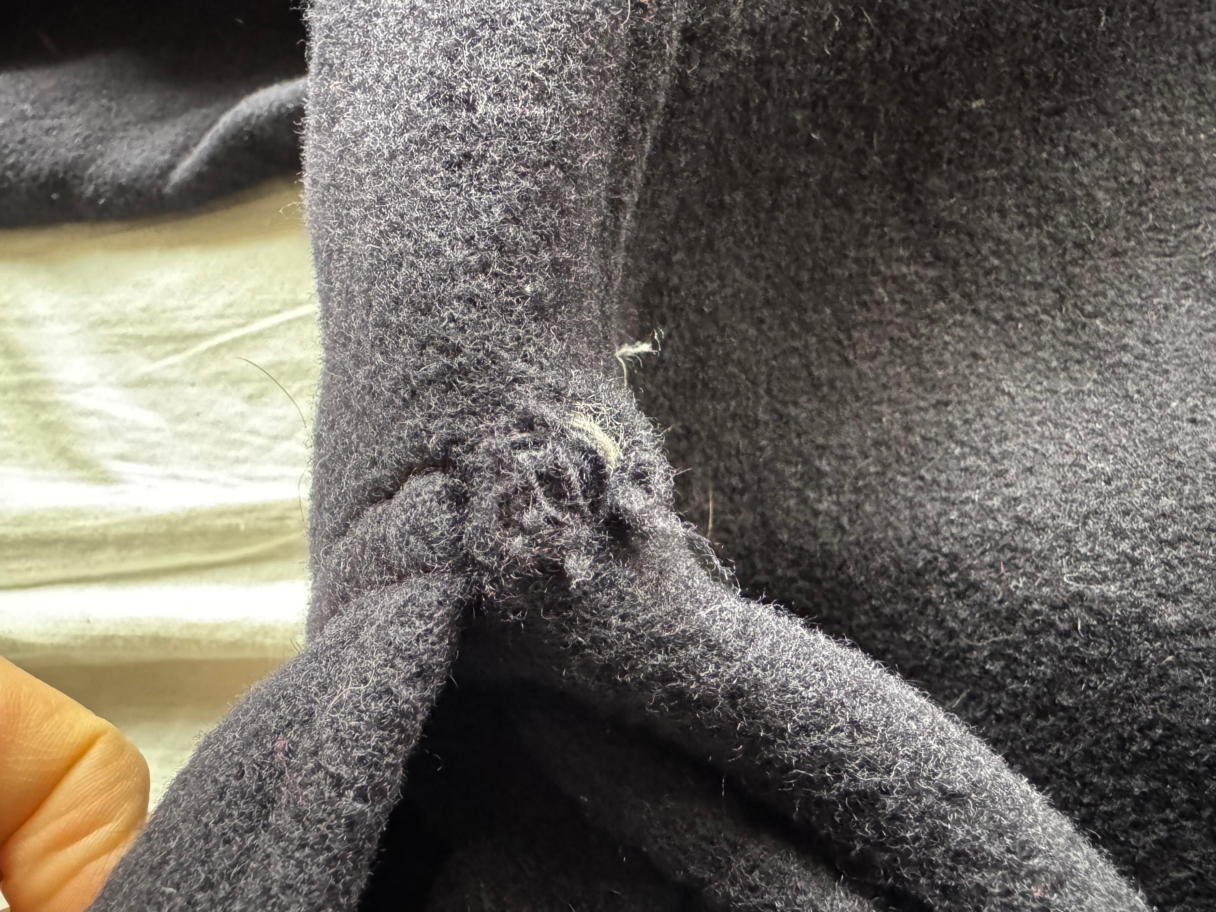 左ポケットフラップの付け根のところが穴があいています。画像18