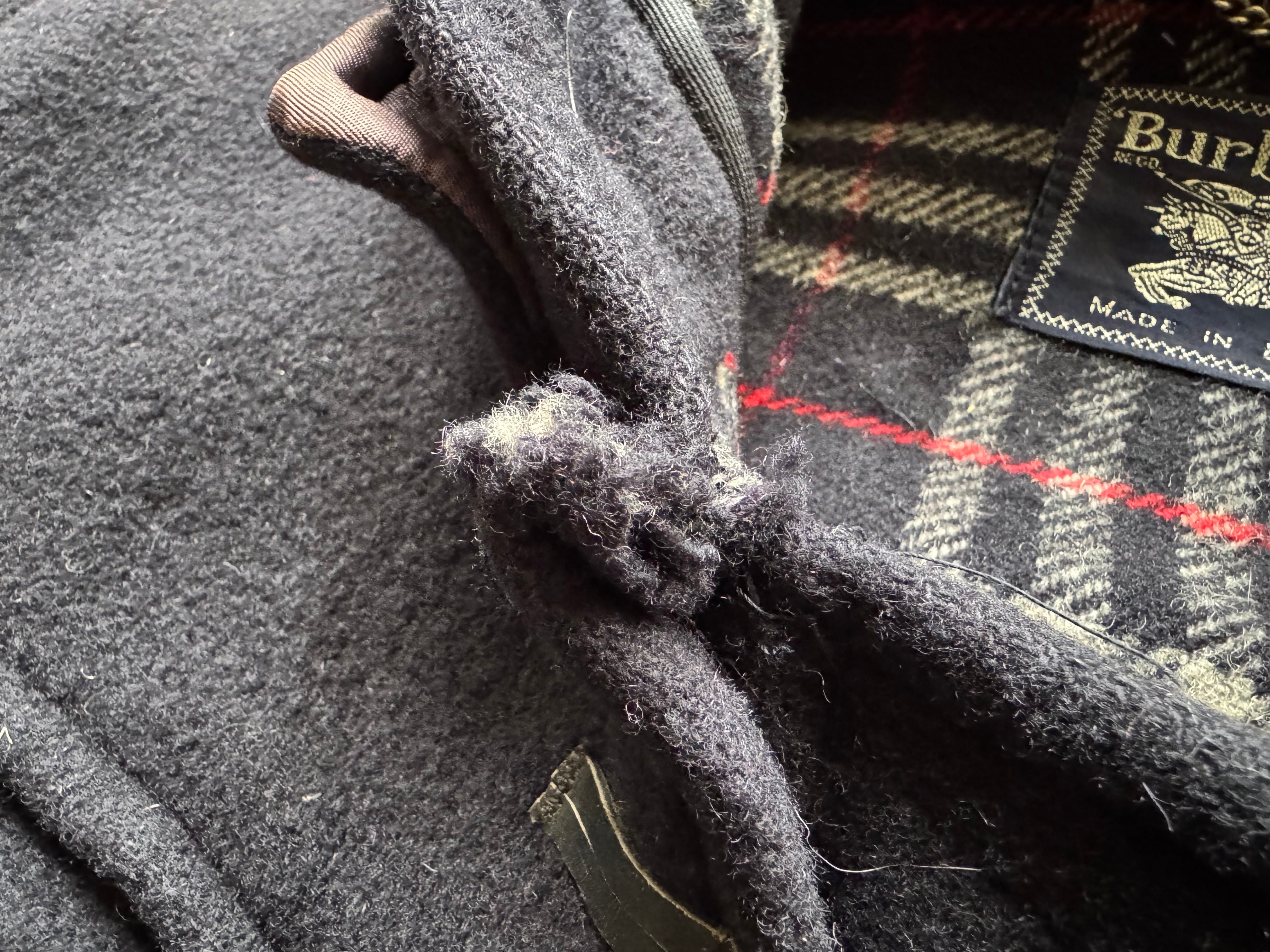 ポイント/ ダメージが多々ございますが、バーバリーの高級感溢れる、肌触りのよい柔らかいウール素材が素晴らしい逸品です。